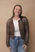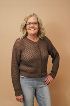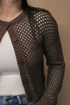 Bring cozy charm to your wardrobe with the Sasha Crochet Knit Button Down Cardigan. This playful crochet sweater features a comfortable 18" total body length and a relaxed 33.5" chest measurement, perfect for layering and keeping warm with a touch of handmade style. Its button-down design adds versatility, making it a fun and breezy addition to any outfit.