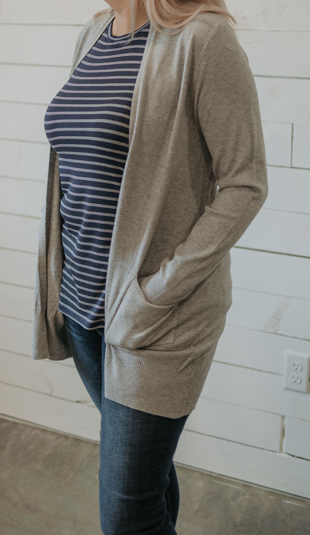 Open front cardigan with pocket detail