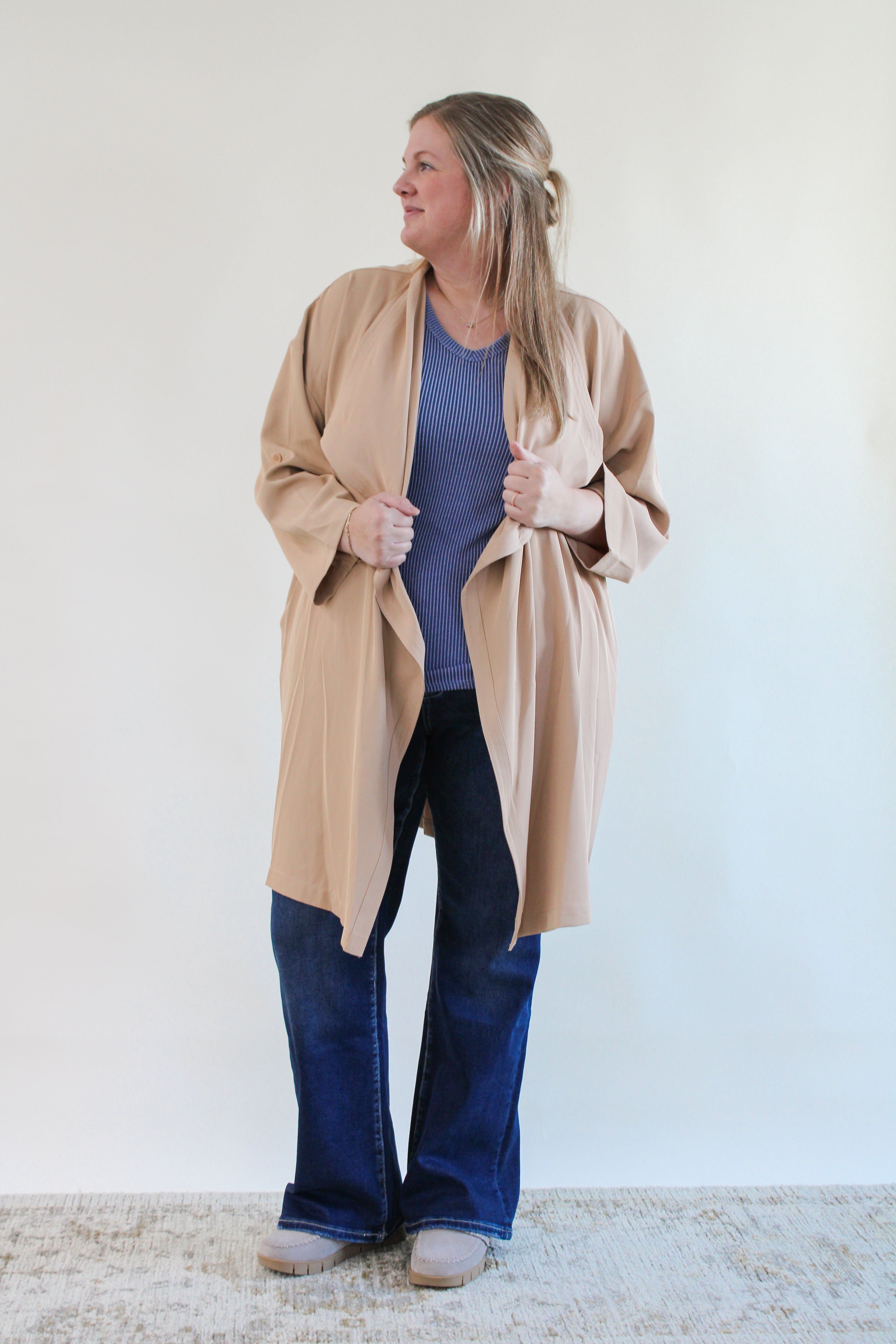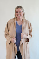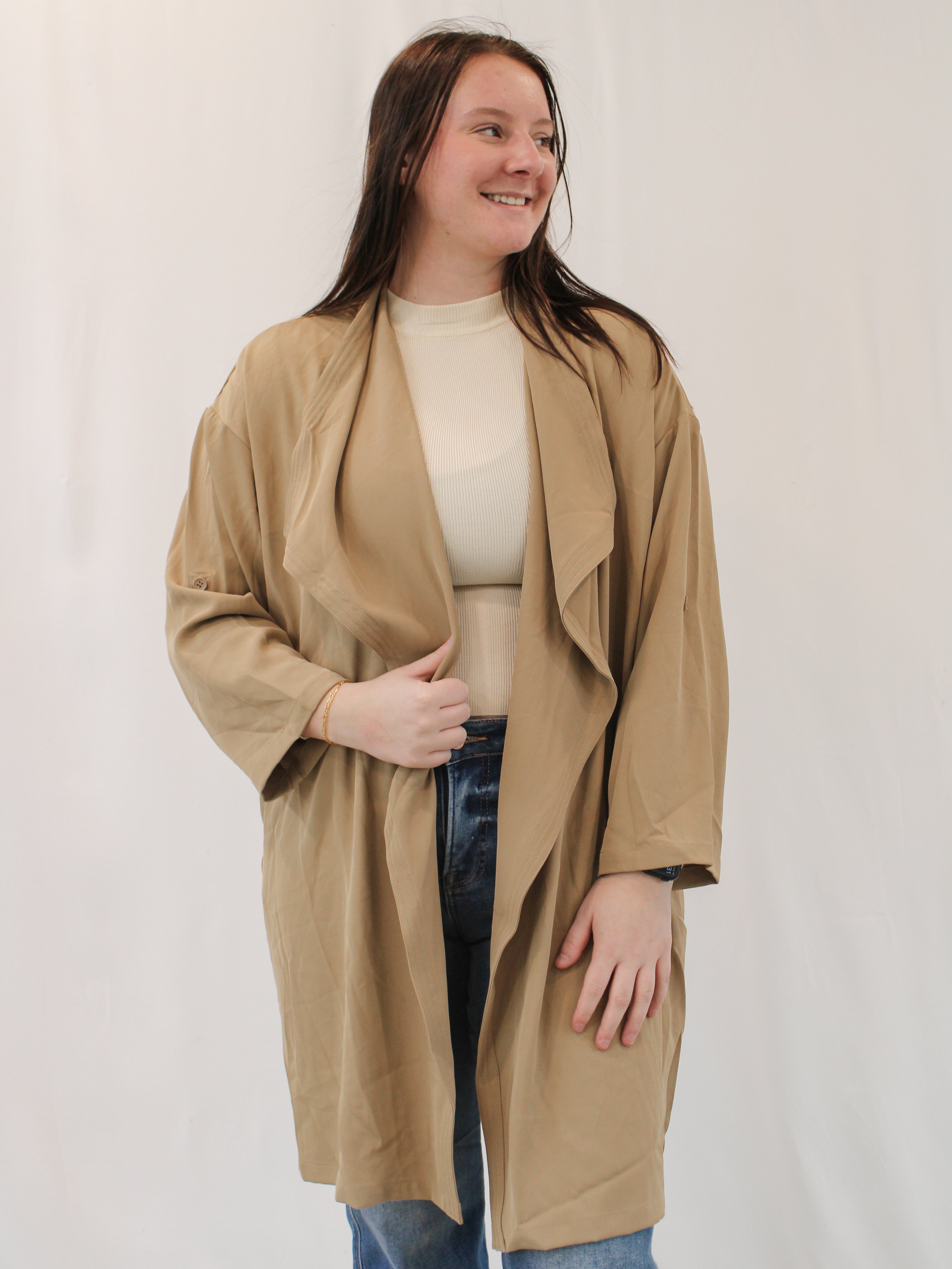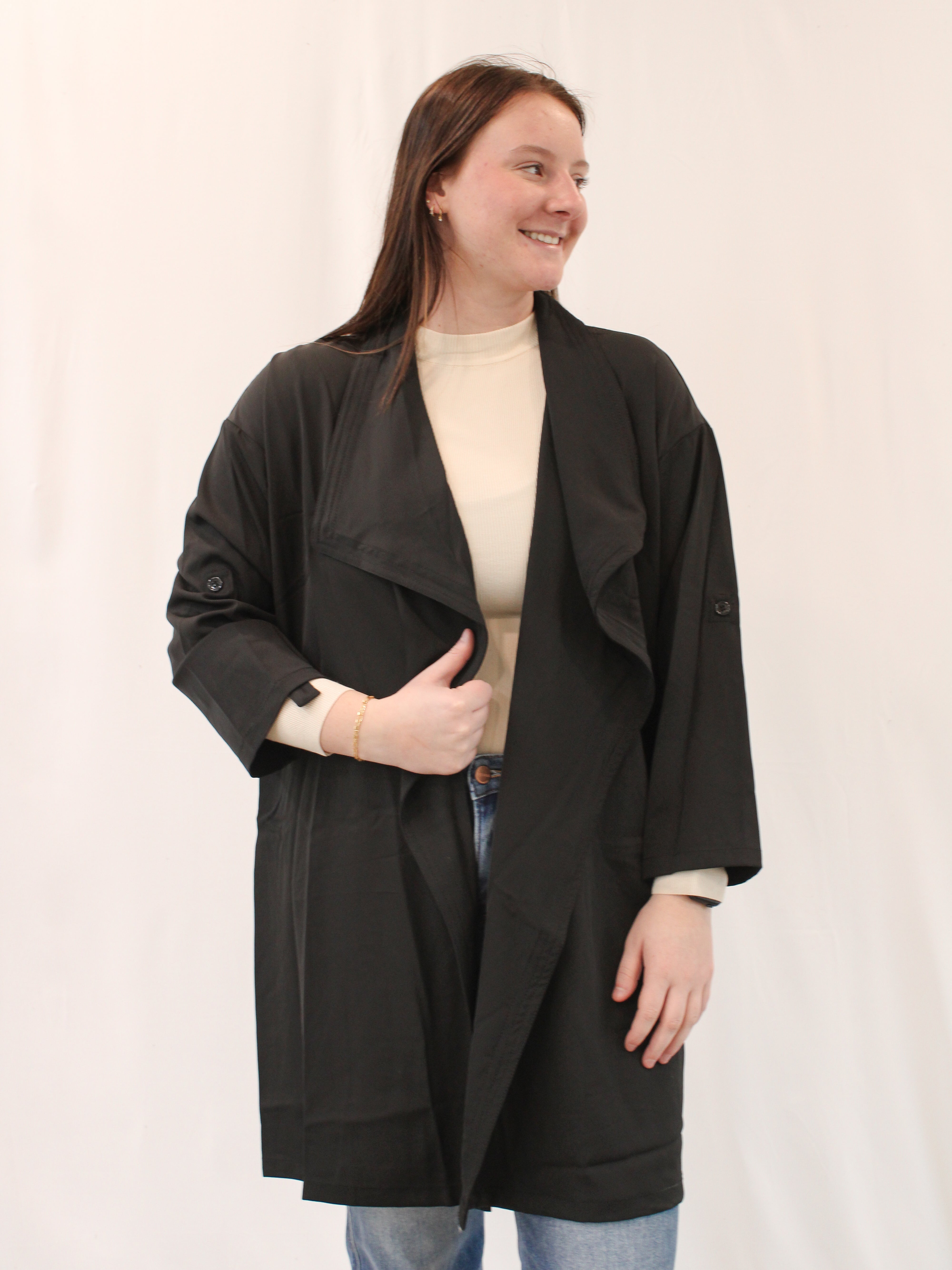 Introducing ALIANA - the perfect jacket for a playful and stylish look. This lightweight, solid woven jacket flaunts a loose fit, three-quarter sleeves, and an open front with button tab details. Whether you're dressing it up or down, ALIANA has got you covered.