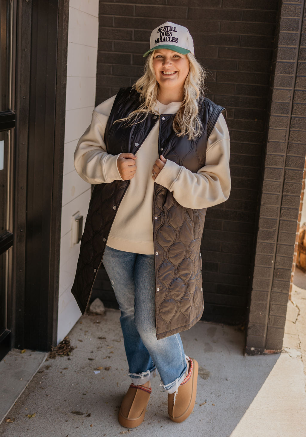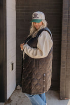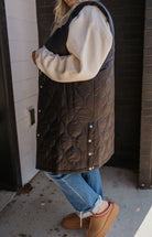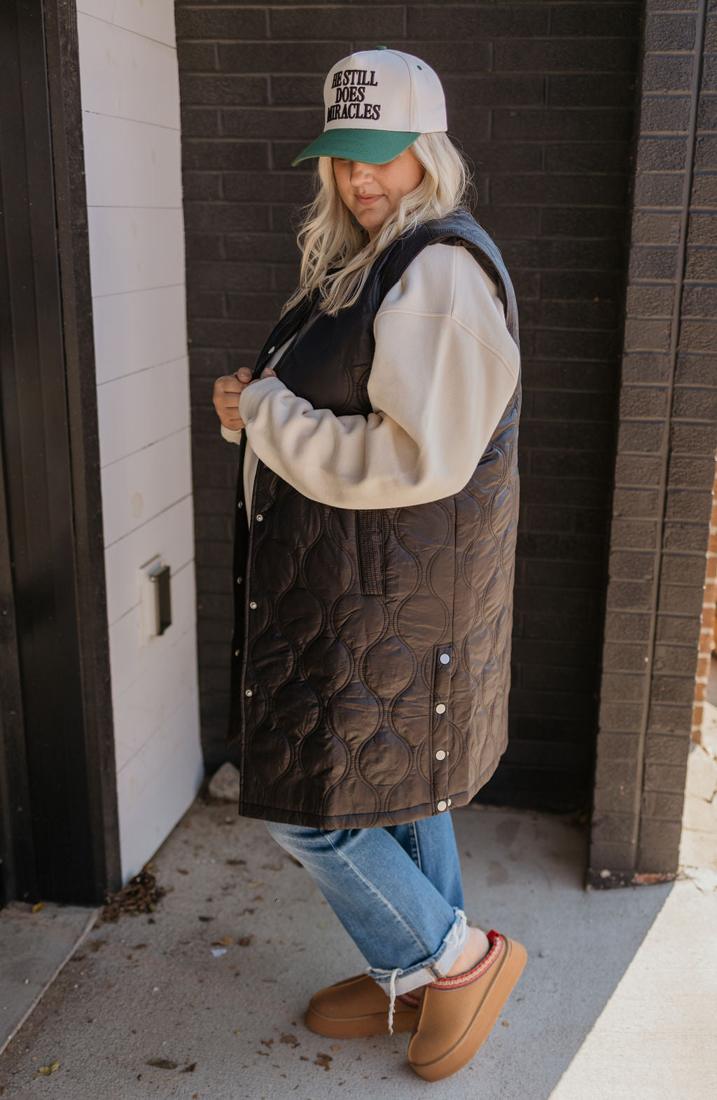 This playful vest jacket features a front snap button closure and convenient front pockets. Perfect for layering and adding a touch of fun to your outfit!