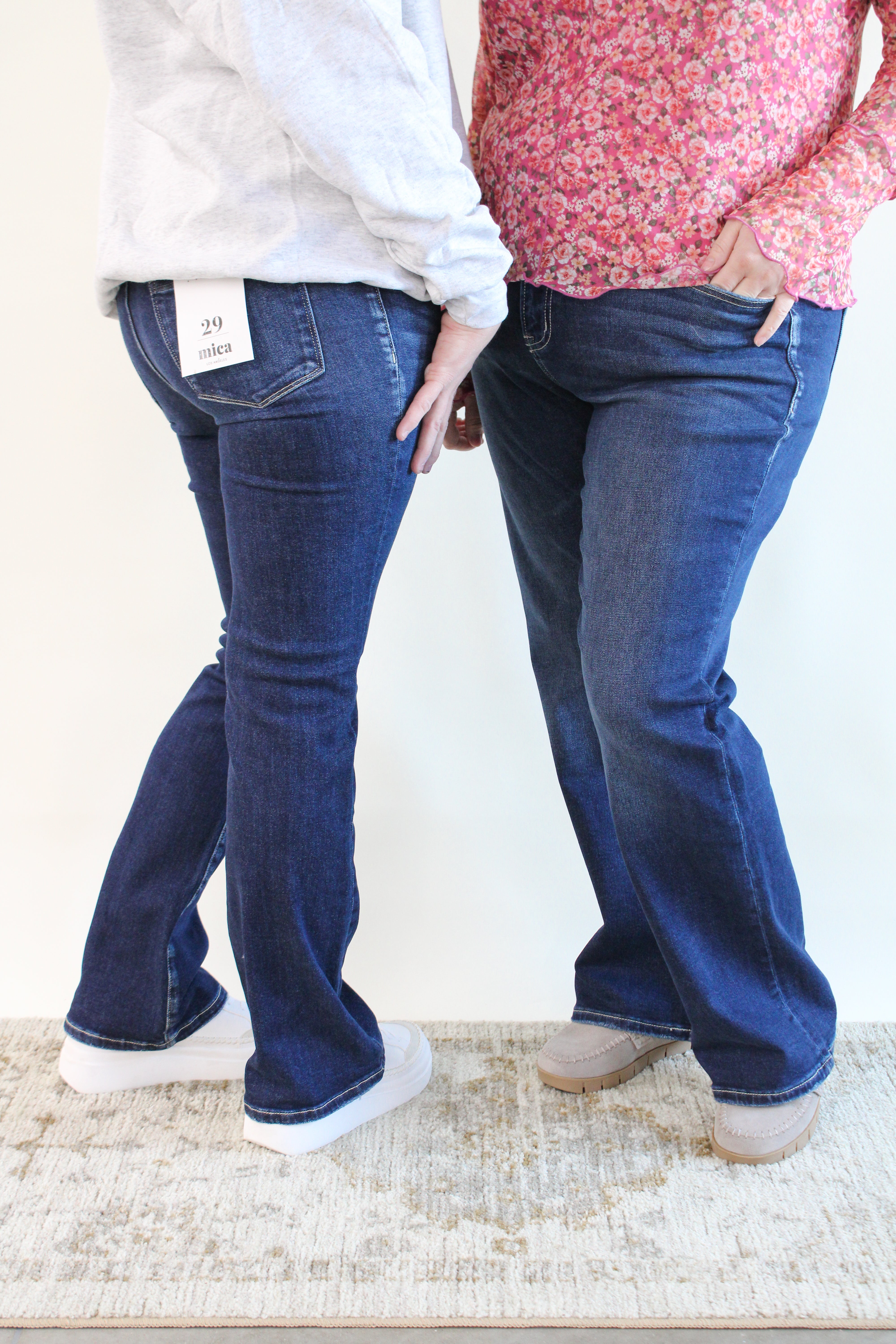 Introducing our playful and quirky mid-rise boot cut jeans with a unique back slit for added flair. Made with a comfortable blend of cotton, polyester, and spandex, these jeans will keep you stylish and comfortable all day. With a front rise of 9 inches, they're the perfect addition to your wardrobe.