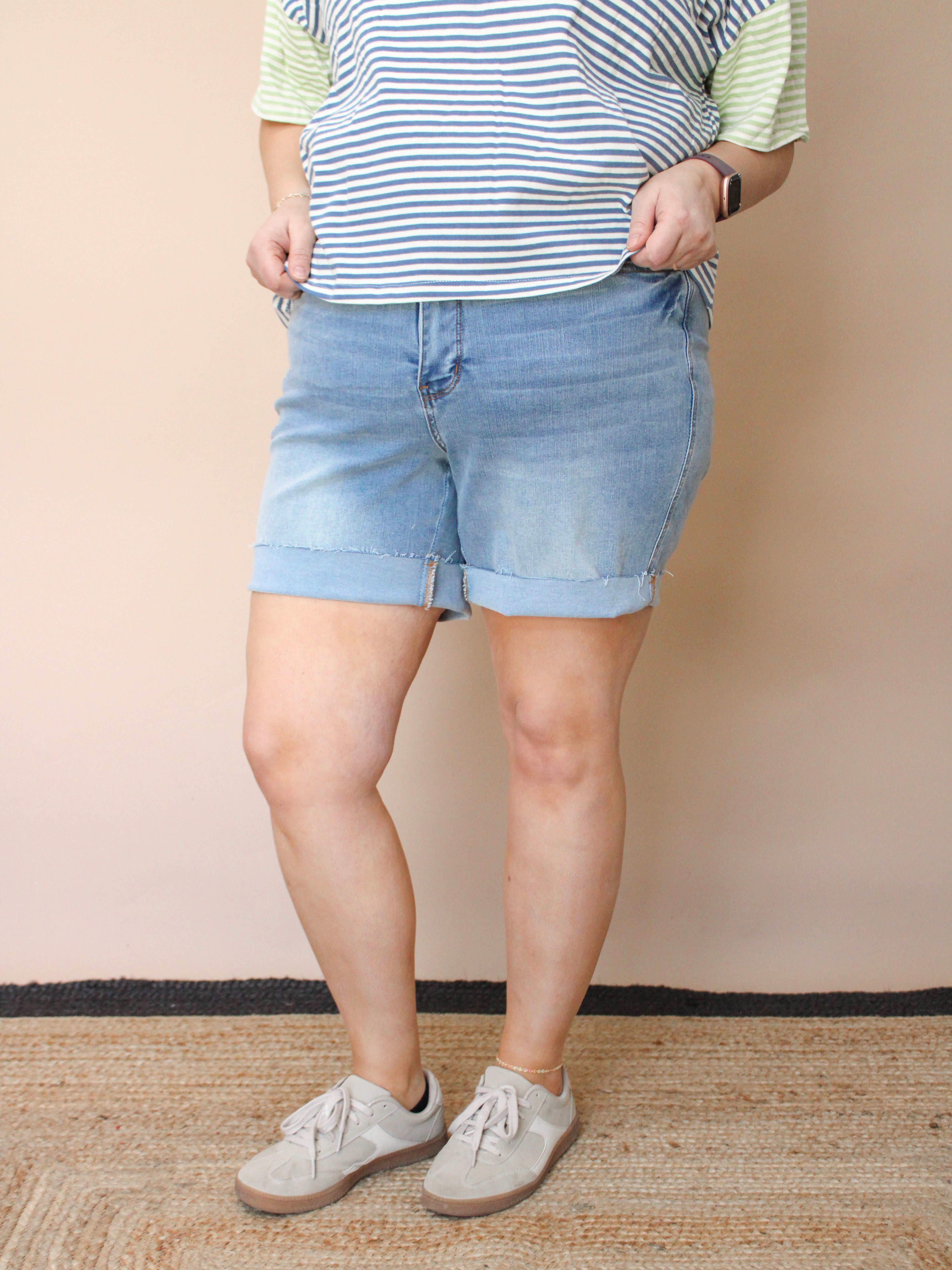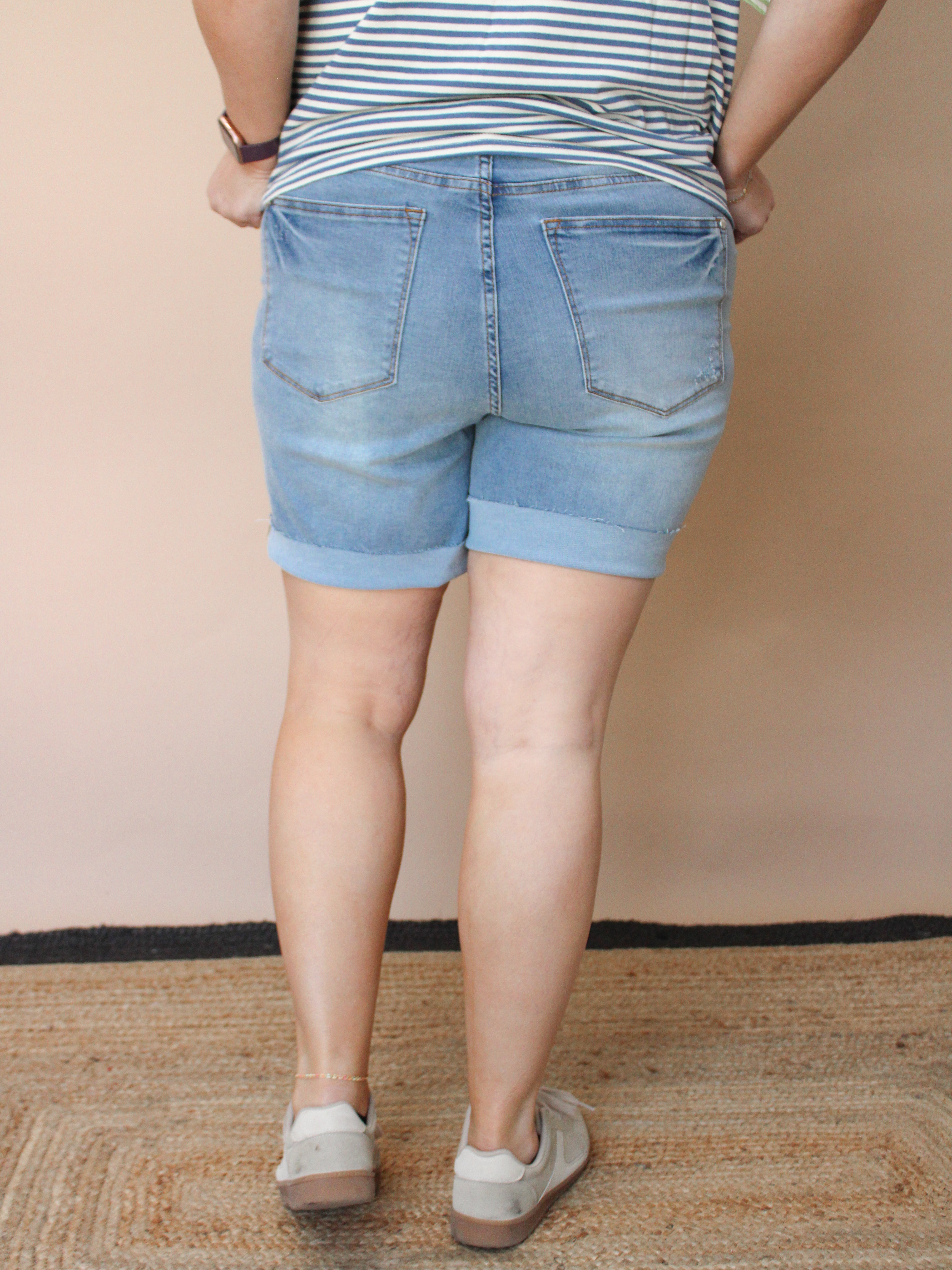 JILL CURVY LIGHT WASH TUMMY CONTROL JEAN SHORTS