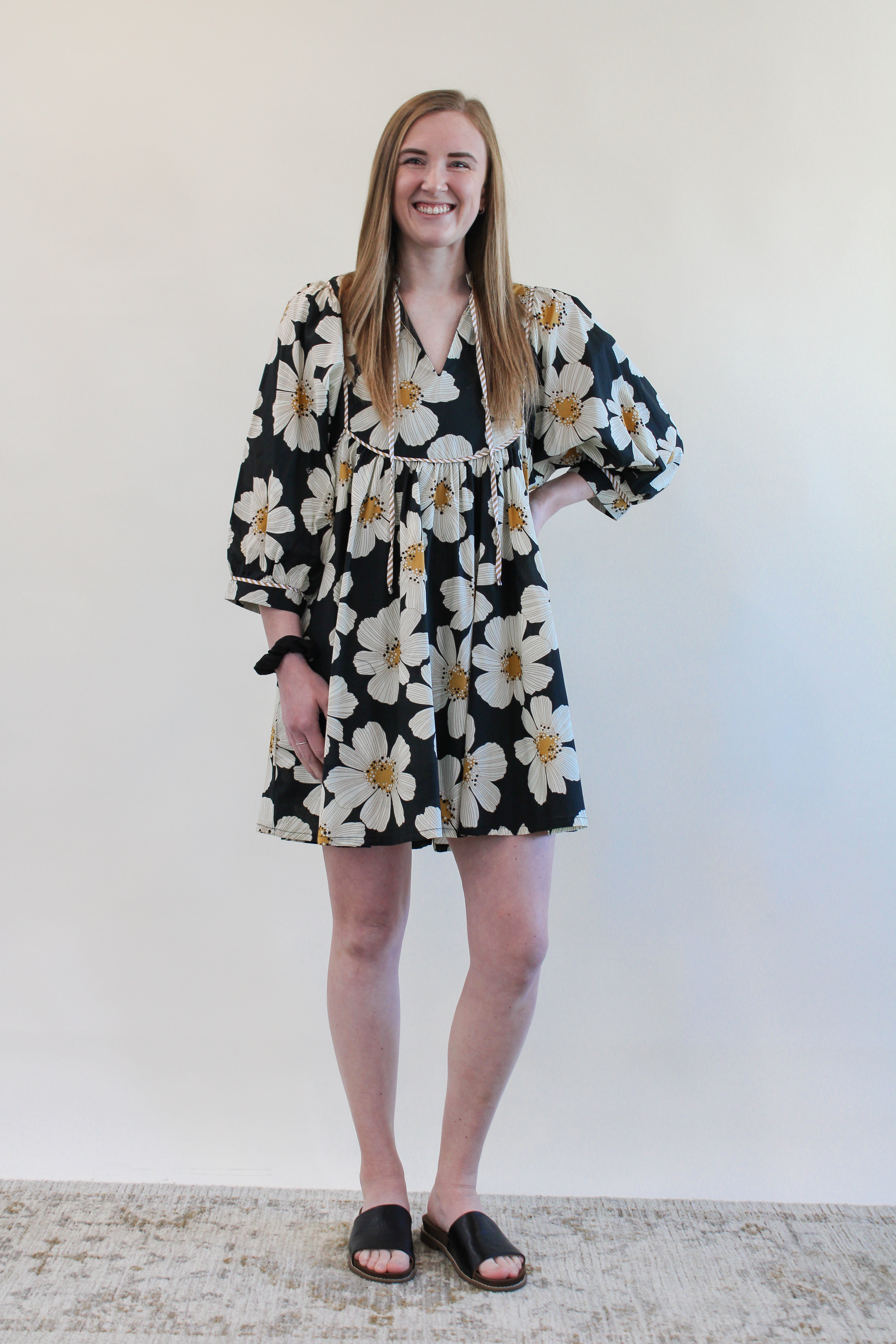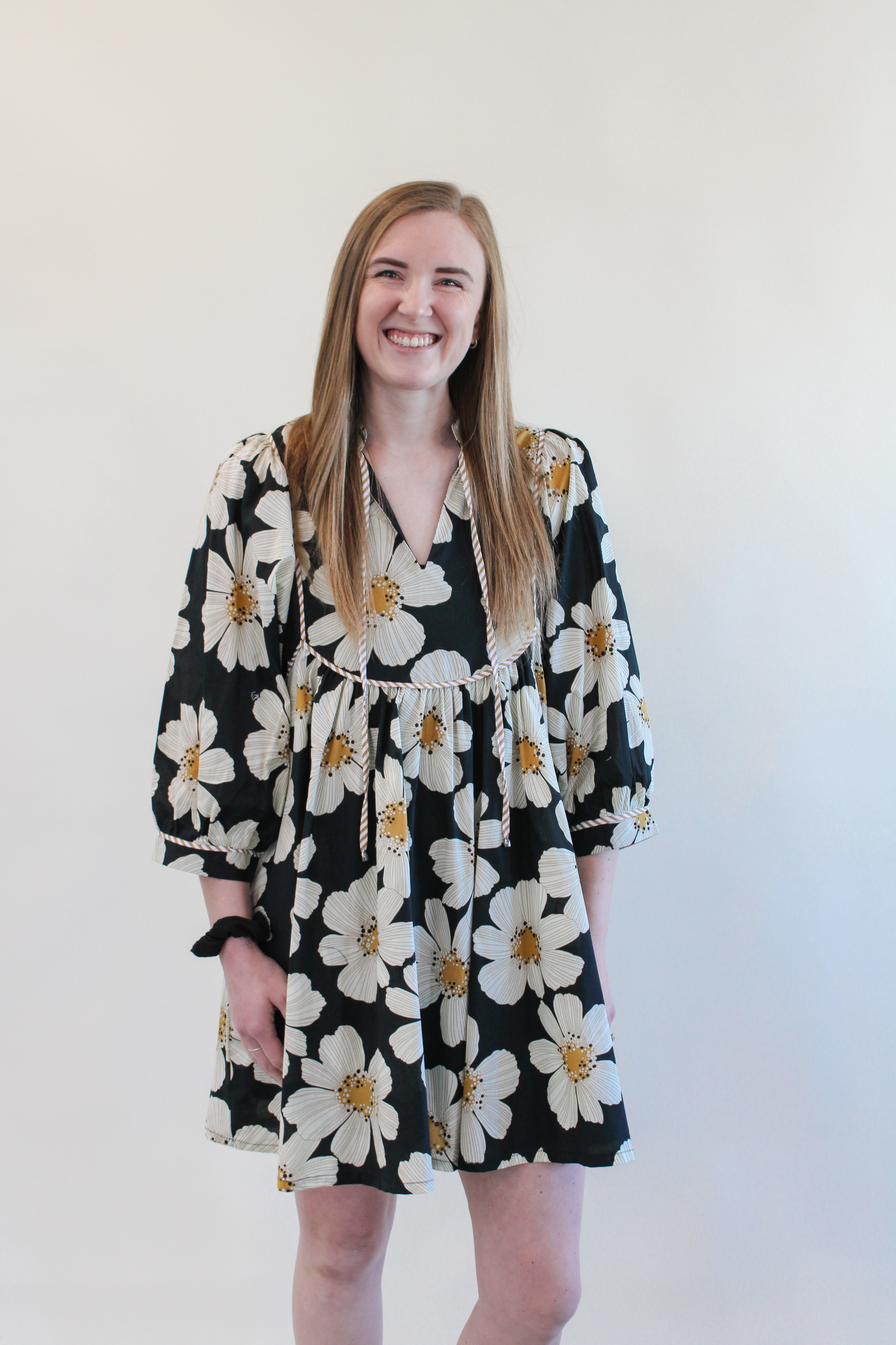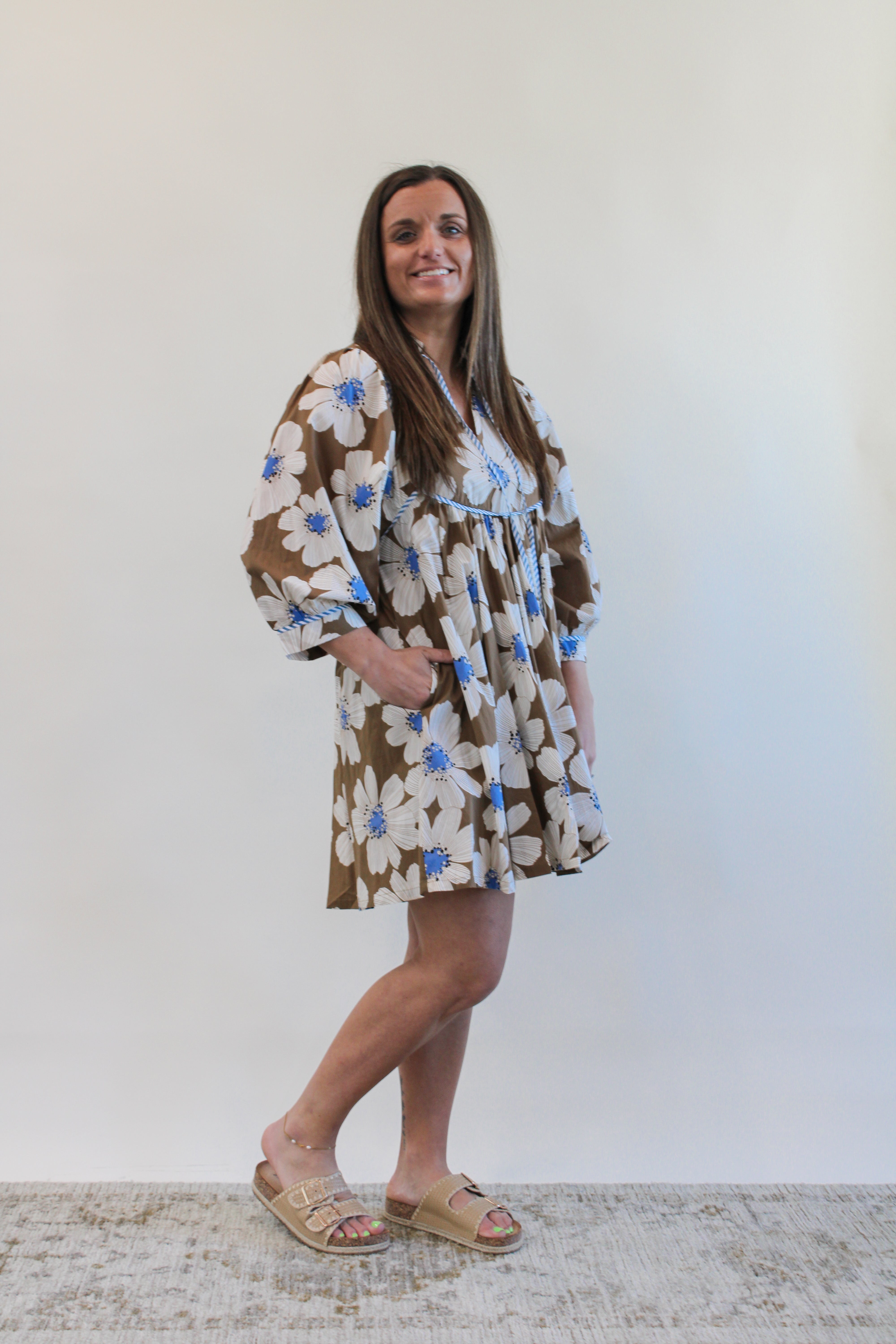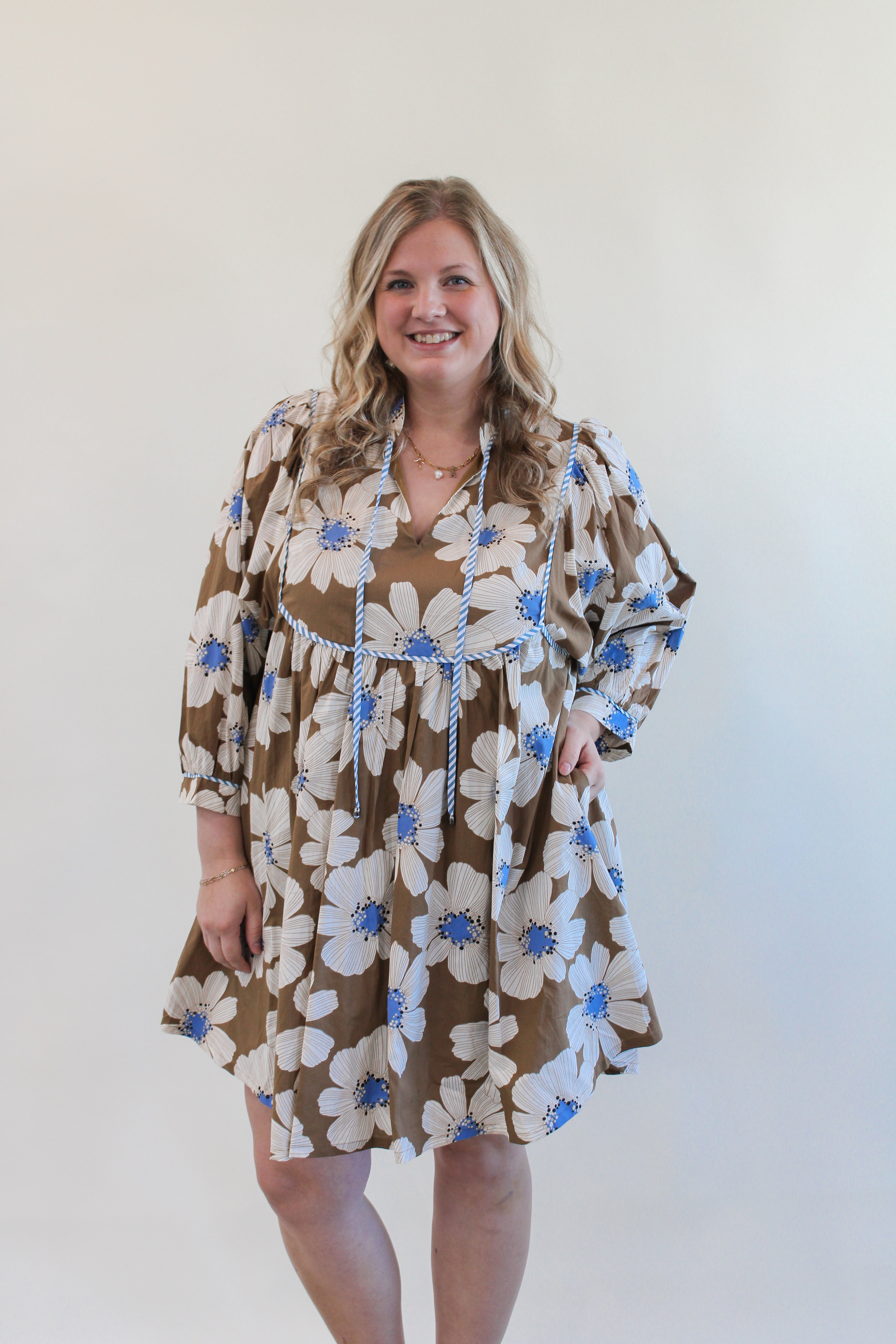 Sashay into spring with our ISLA REG/CURVY FLORAL MINI DRESS. This short dress features a string tie neck and oversized 3/4 length sleeves, perfect for any occasion. Embrace your curves and bloom in style with this beautiful floral print.