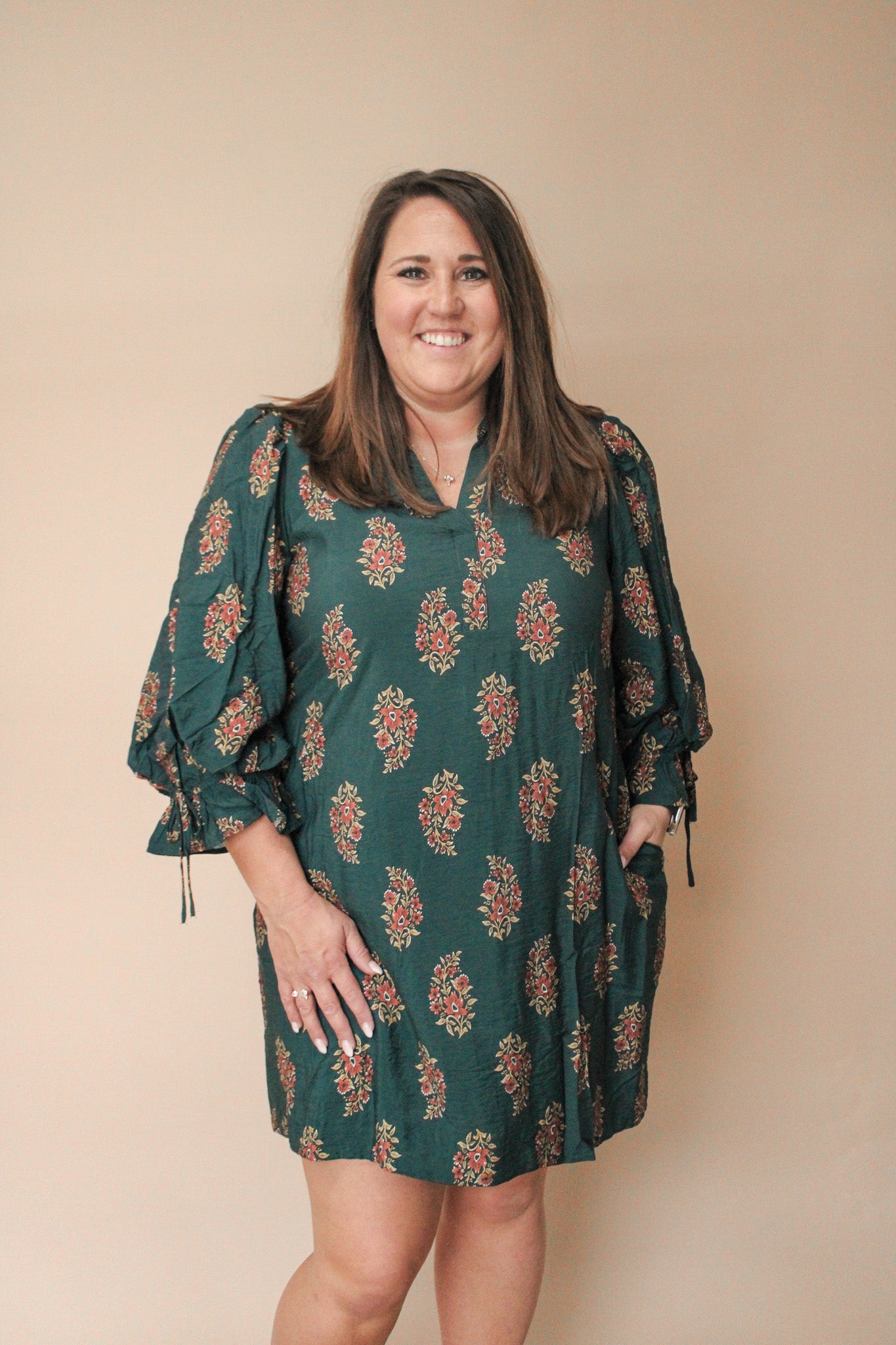 Twirl into spring with the TAMIE CURVY FLORAL PRINT MINI DRESS! This charming piece features a vibrant floral print that brings instant joy to your wardrobe. Puff sleeves add a playful touch, while adjustable drawstring ties at the cuffs and back waist let you customize the fit for your perfect silhouette. Practical side pockets keep your essentials close, and the lined interior ensures comfort and confidence all day long. Whether you're heading to brunch or a casual date night, this mini dress is your go-to for effortless style with personality.