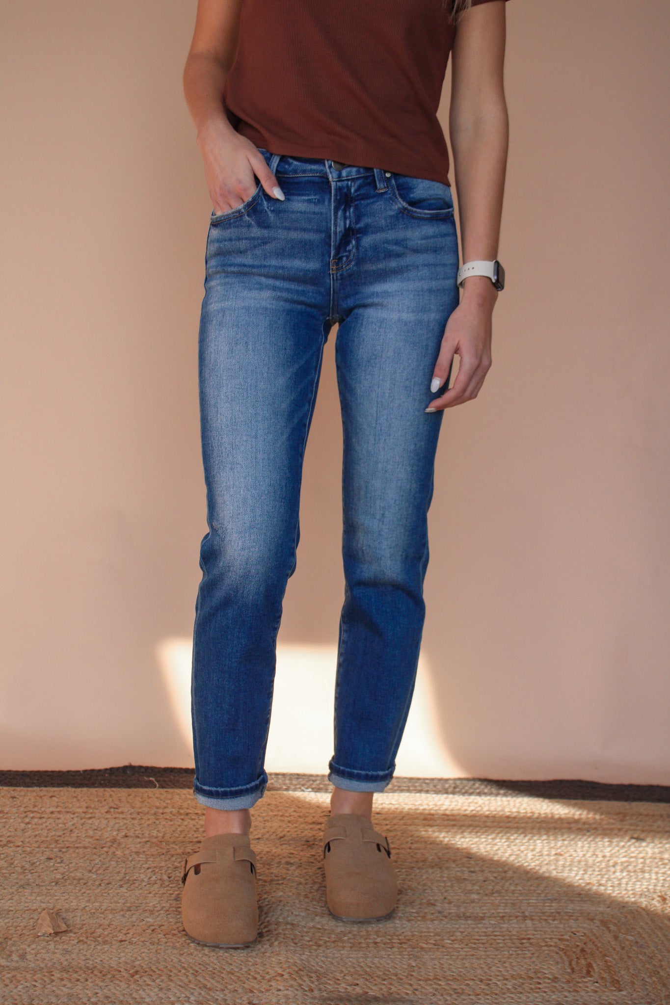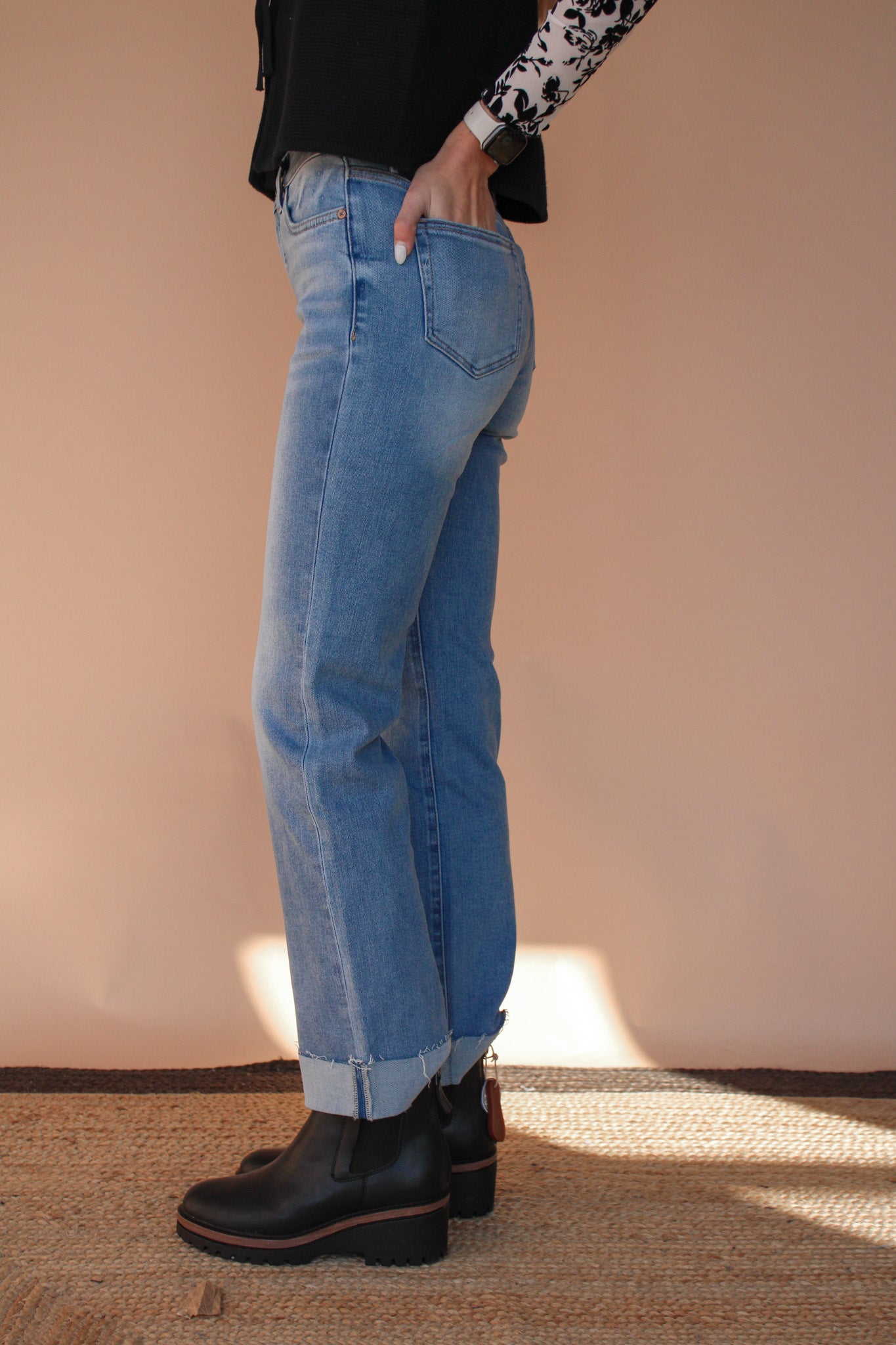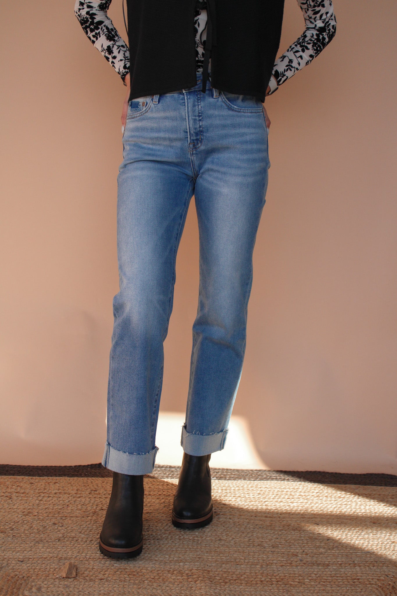 AYSHA MID RISE STRAIGHT LEG CUFFED JEAN