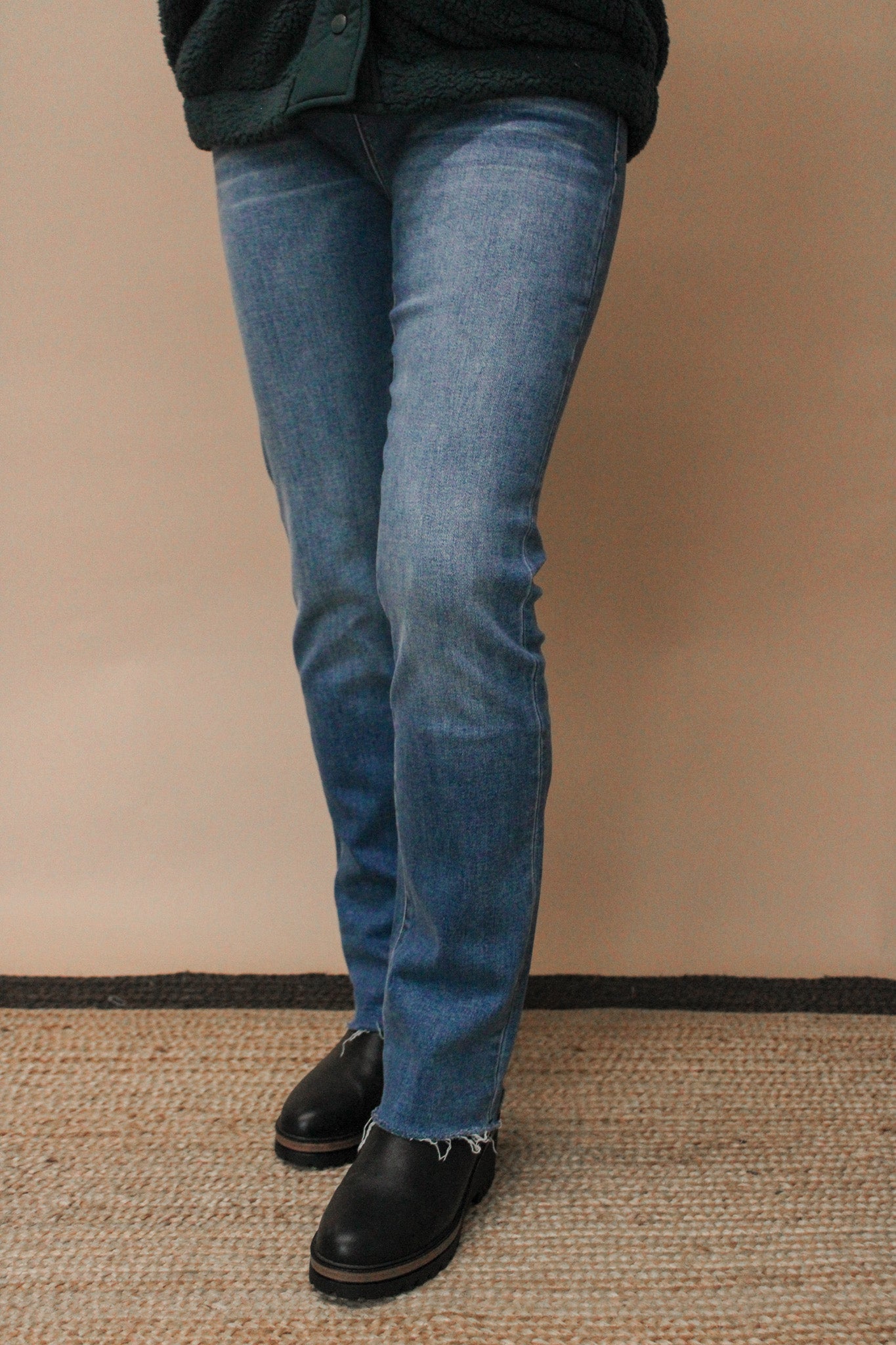 KEANDREA HIGH RISE RAW HEM STRAIGHT JEANS