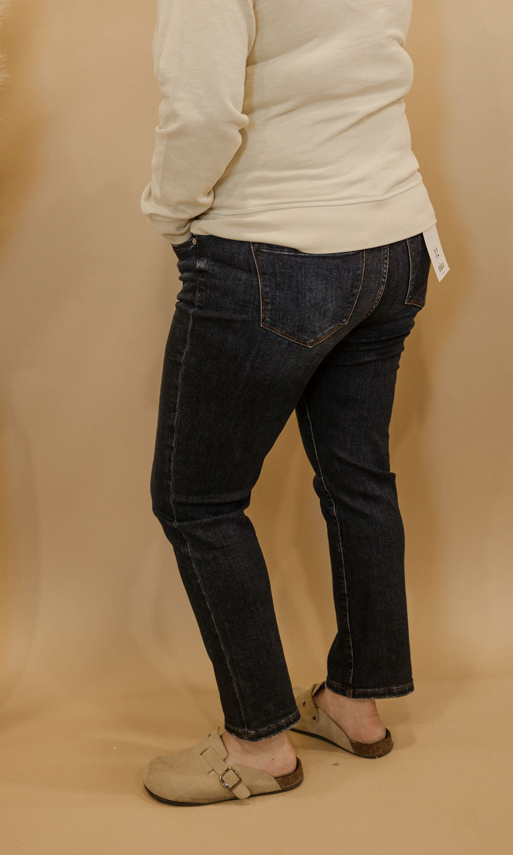 Mid rise dark wash skinny jeans