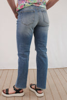 ELAINE MEDIUM MID RISE SLIM STRAIGHT DISTRESSED JEANS