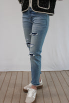 LEILYN MID RISE LIGHT WASH DISTRESSED JEANS