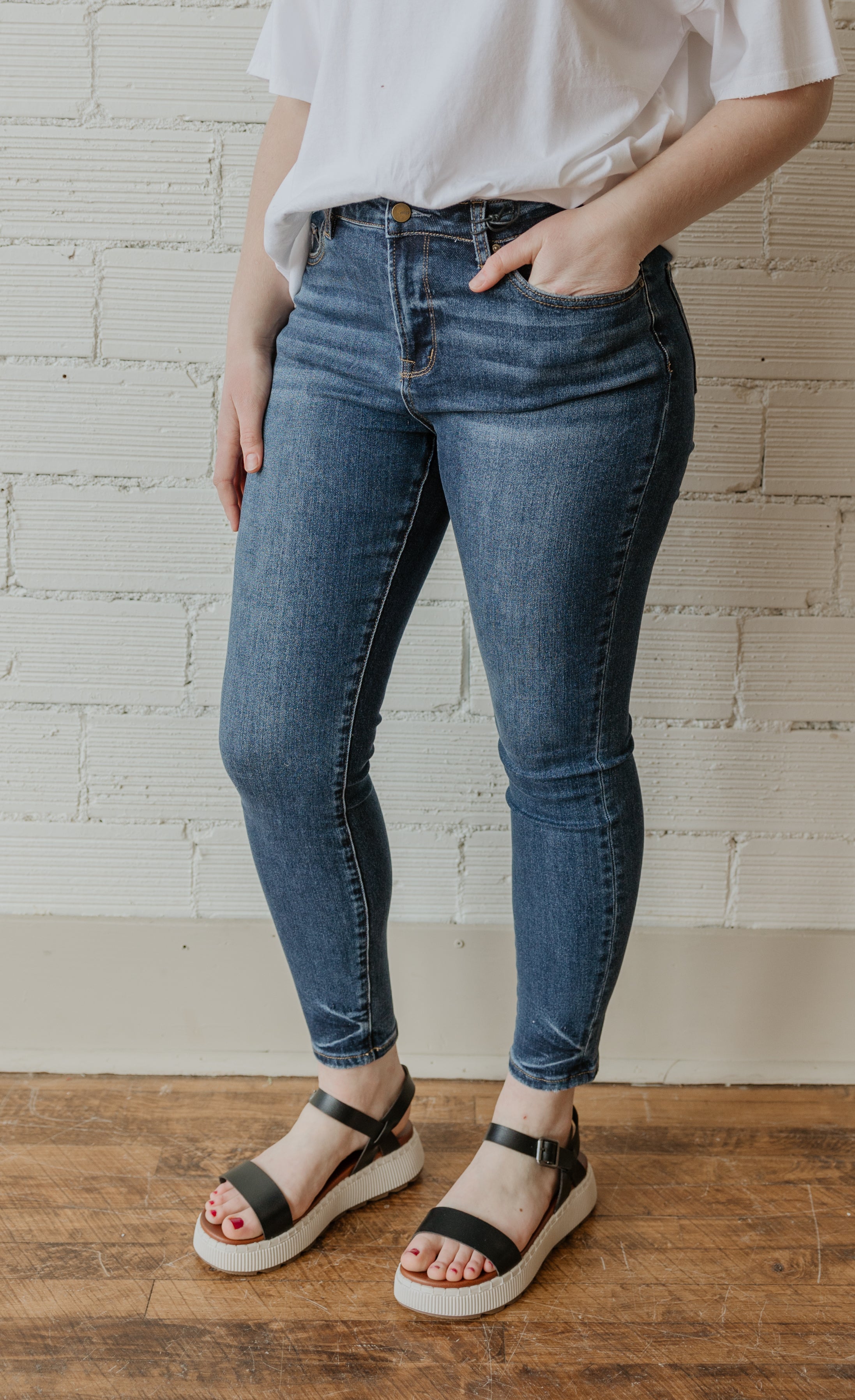 LIDIA DARK HIGH RISE ANKLE SKINNY JEAN