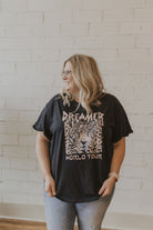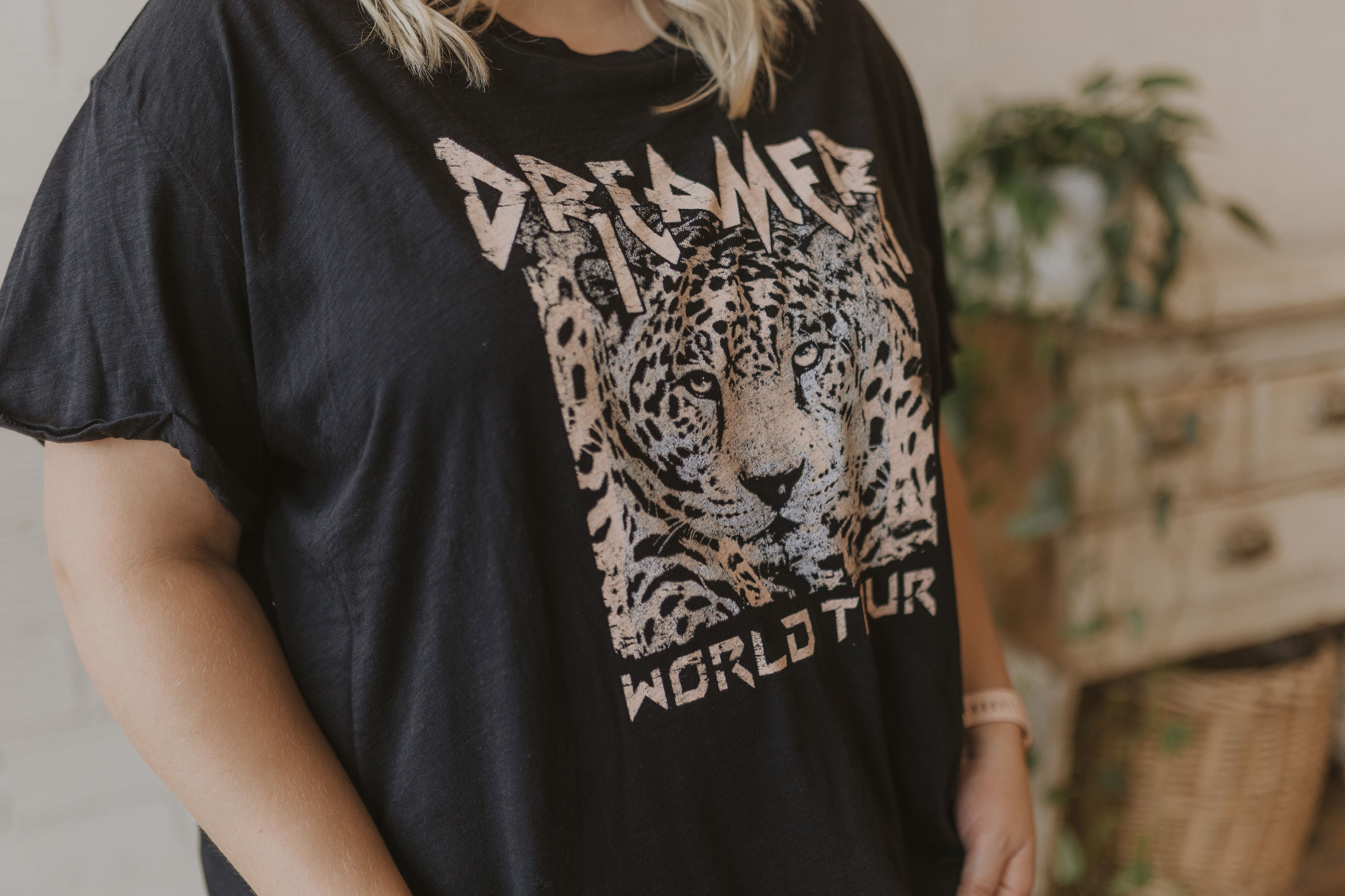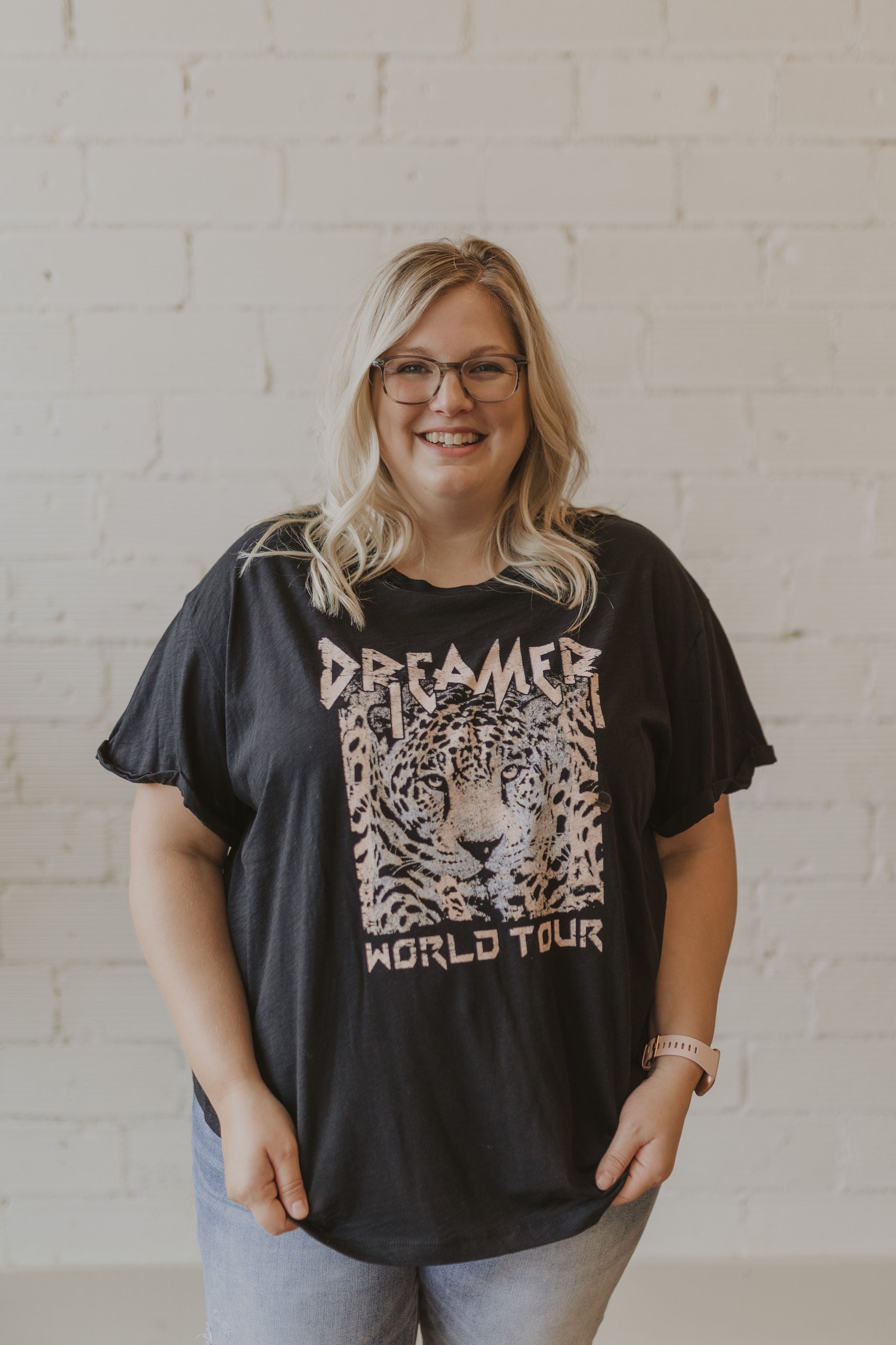 Fun casual graphic pairs perfect with a pair of biker shorts or jeans