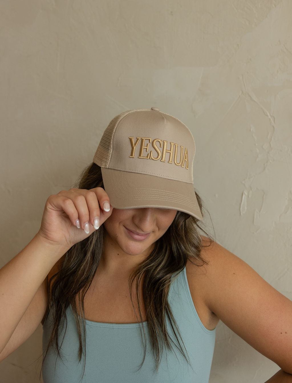 The "Yeshua" hat is a stylish and versatile cap that is more than just an accessory; it's a statement of faith and a reminder of the power in the names of God: Yeshua (to save, deliver).