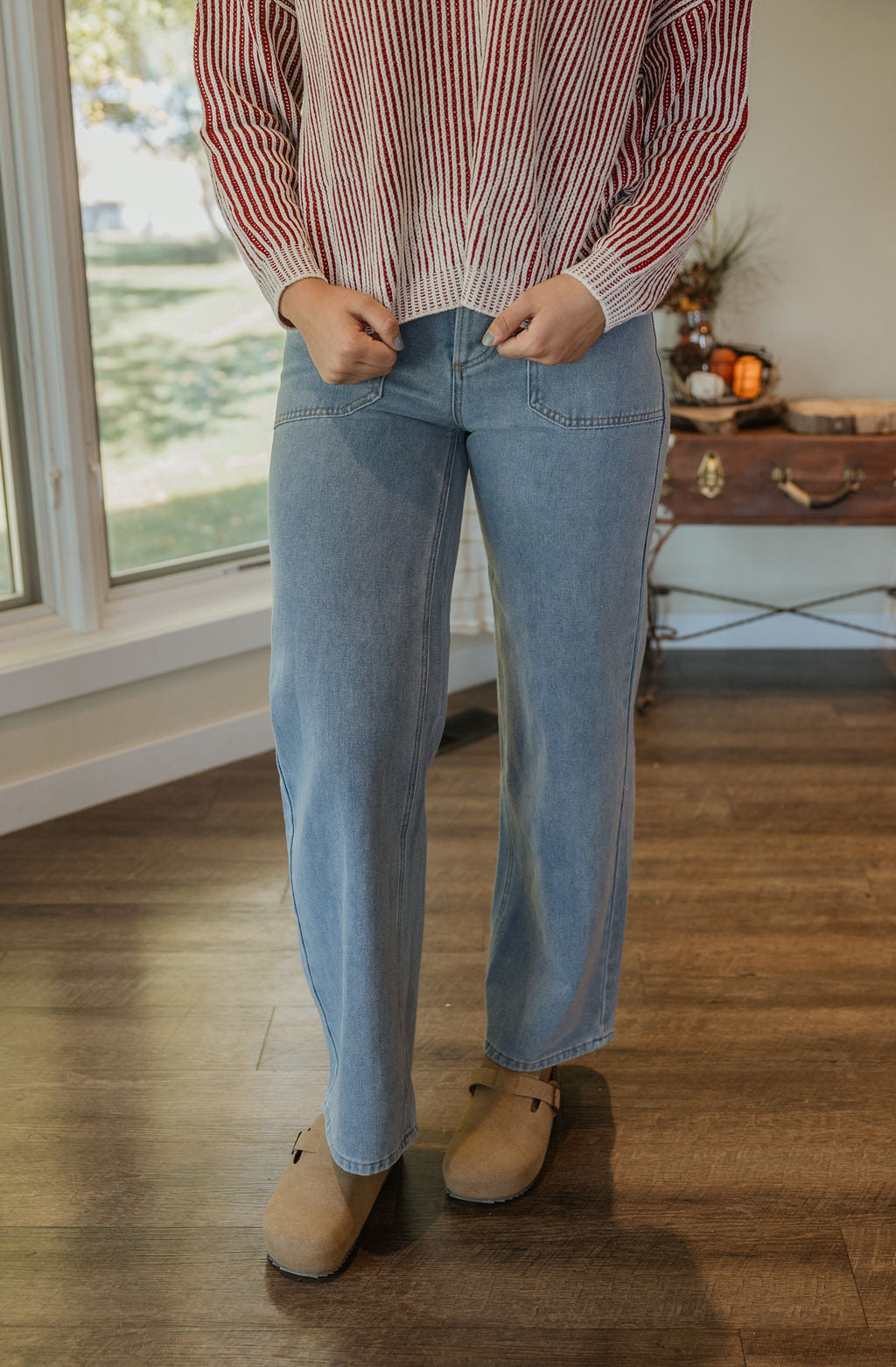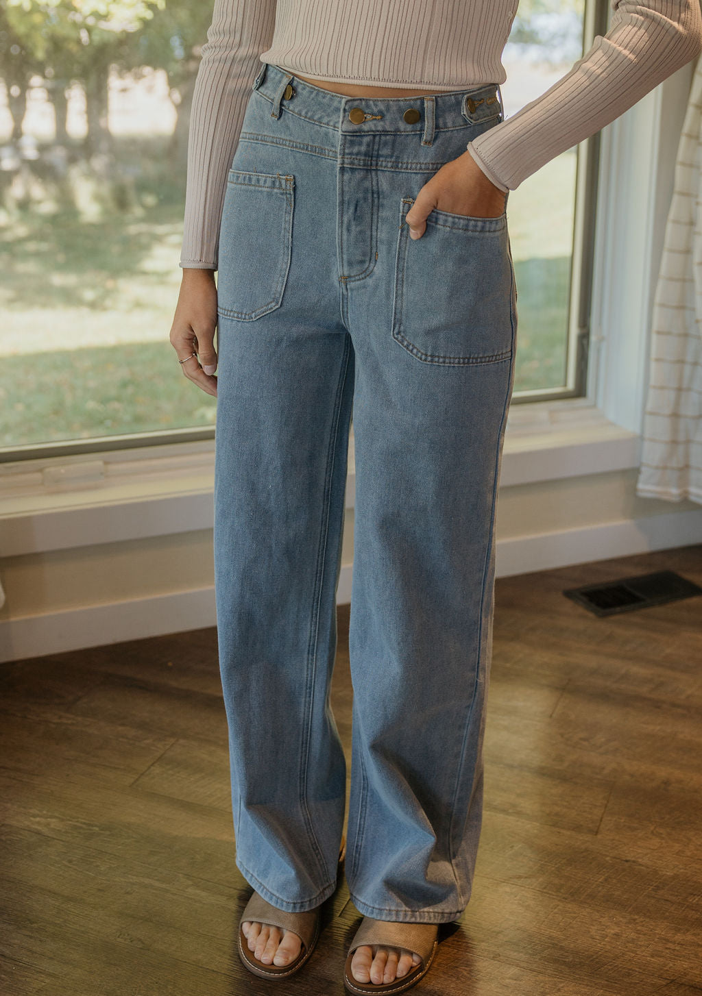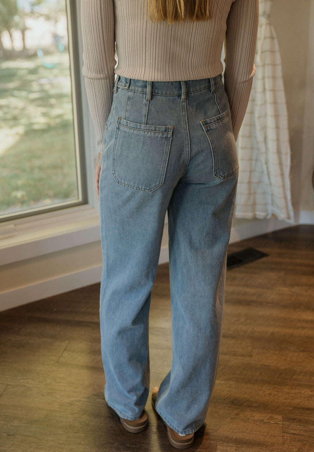 MACI LIGHT BLUE HIGH RISE WIDE STRAIGHT JEANS BY IVY & CO
