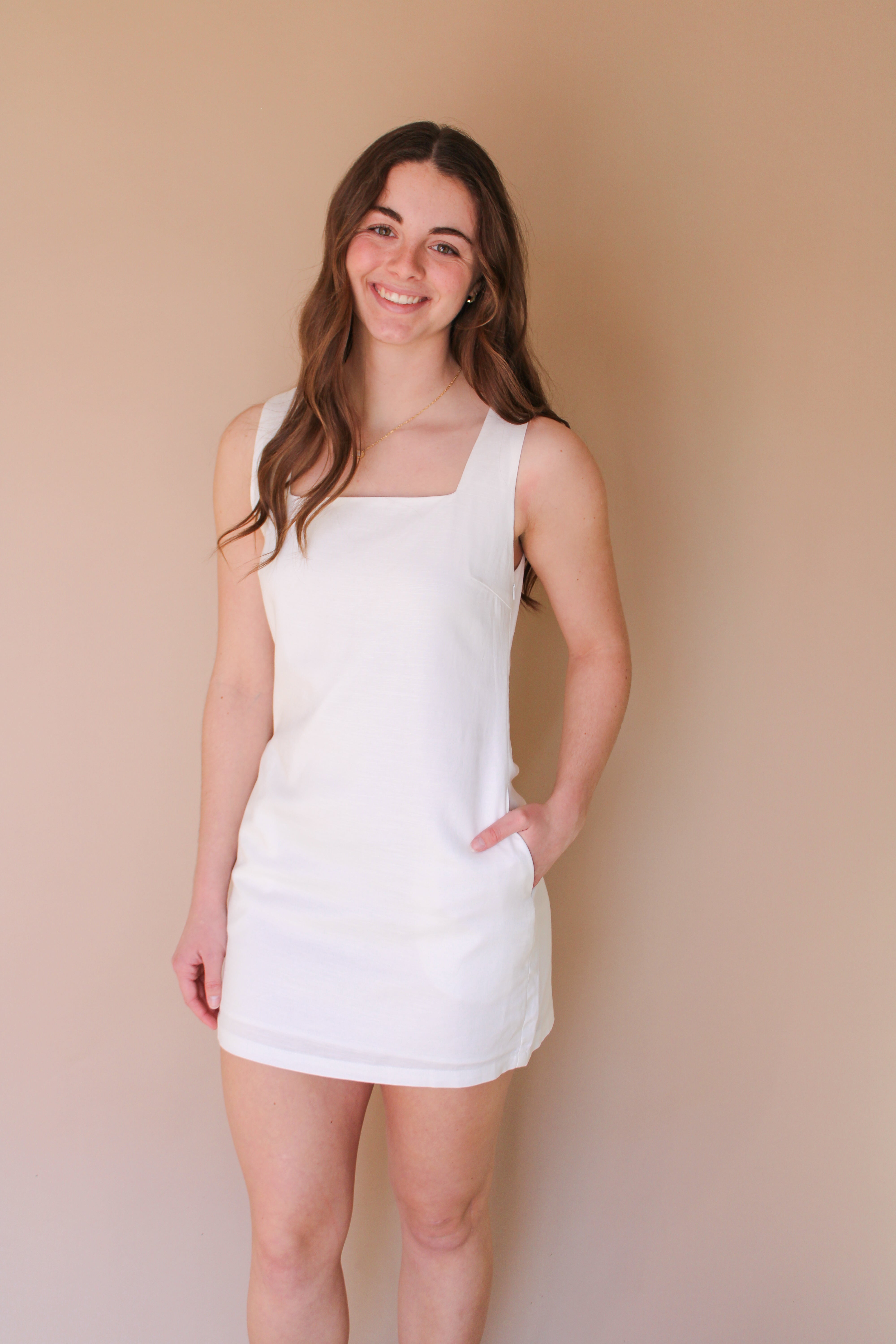 Effortlessly chic, the Macie mini dress by Ivy & Co is a must-have addition to your wardrobe. Made from a luxurious linen blend, this sleeveless dress features a flattering square neckline and convenient side pockets. The soft lining ensures maximum comfort, perfect for any occasion.