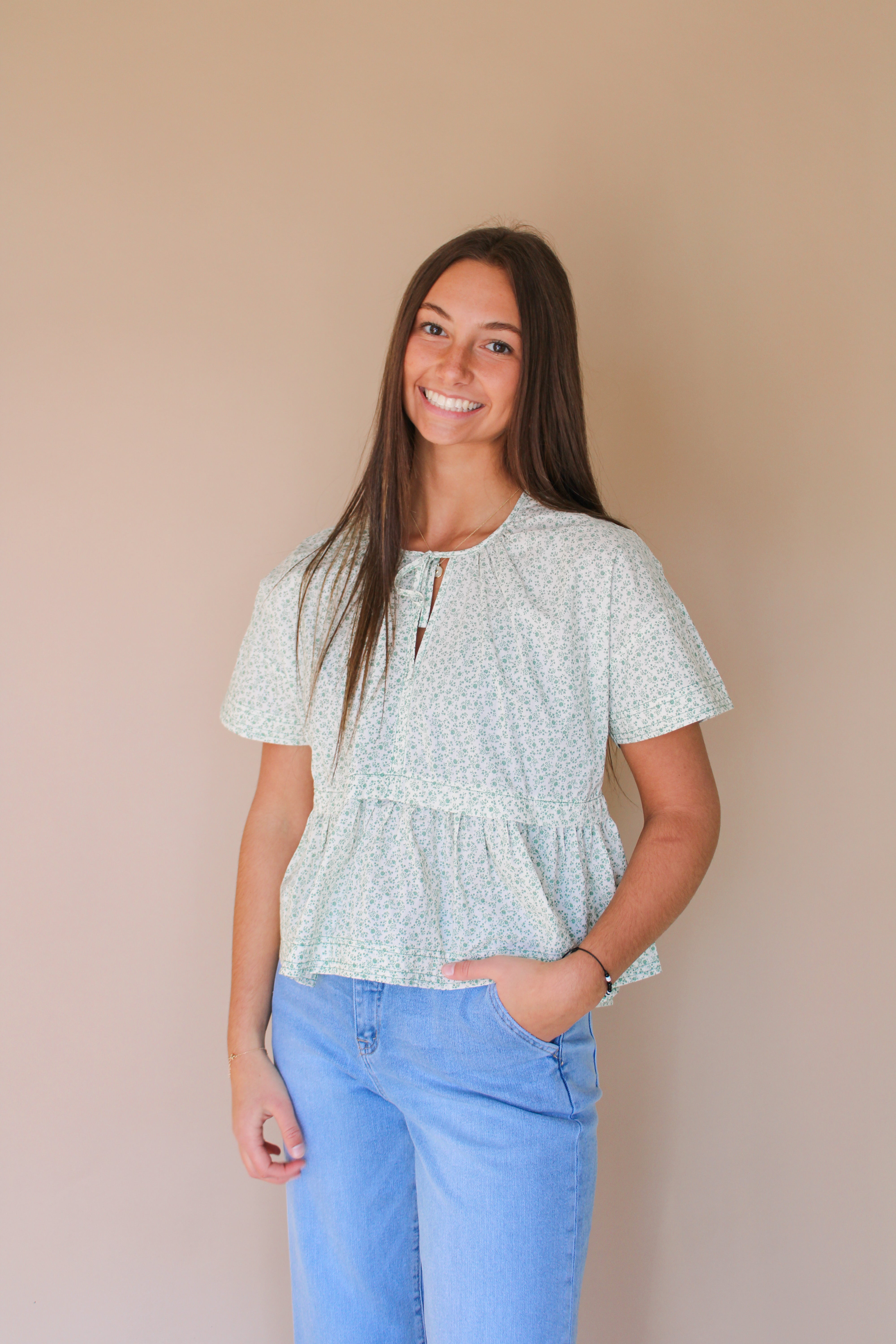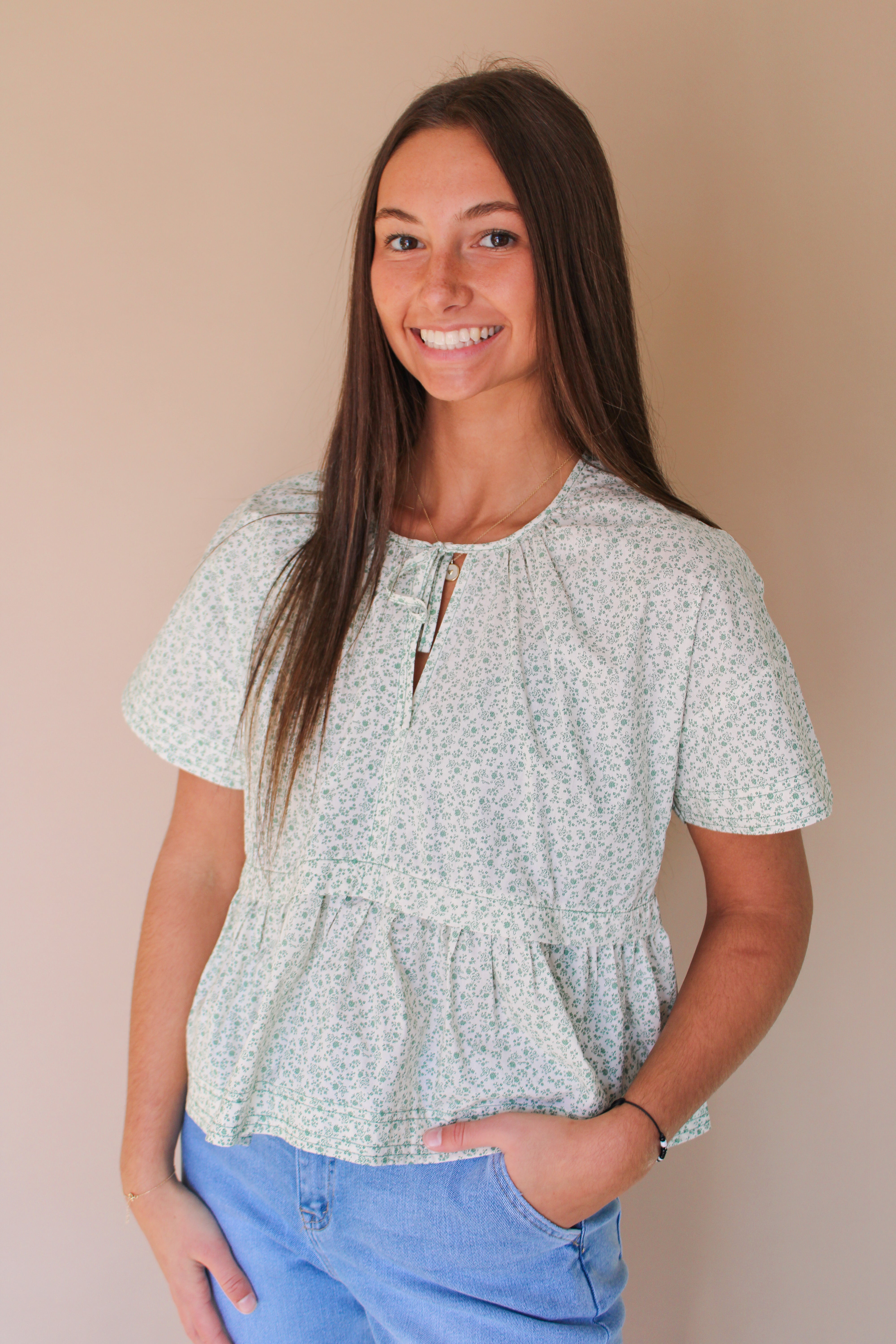 Introducing the KRINDA FLORAL PEPLUM TOP BY IVY & CO, a playful addition to any wardrobe. This FLORAL BABYDOLL BLOUSE is made from 100% COTTON for ultimate comfort. Perfect for everyday wear, this top adds a touch of fun and whimsy to any outfit.