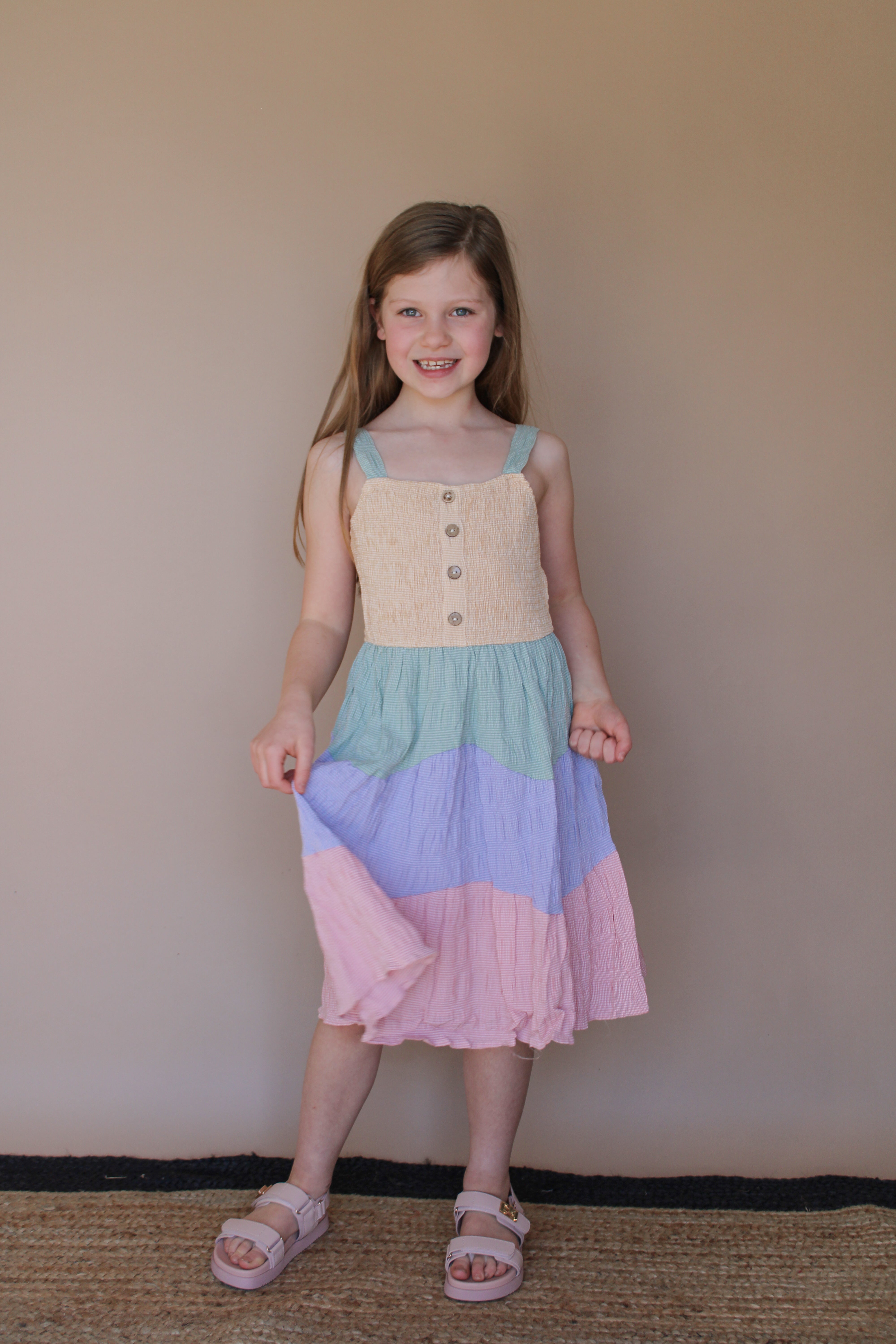 CARSYN GIRLS RAINBOW TIERED DRESS