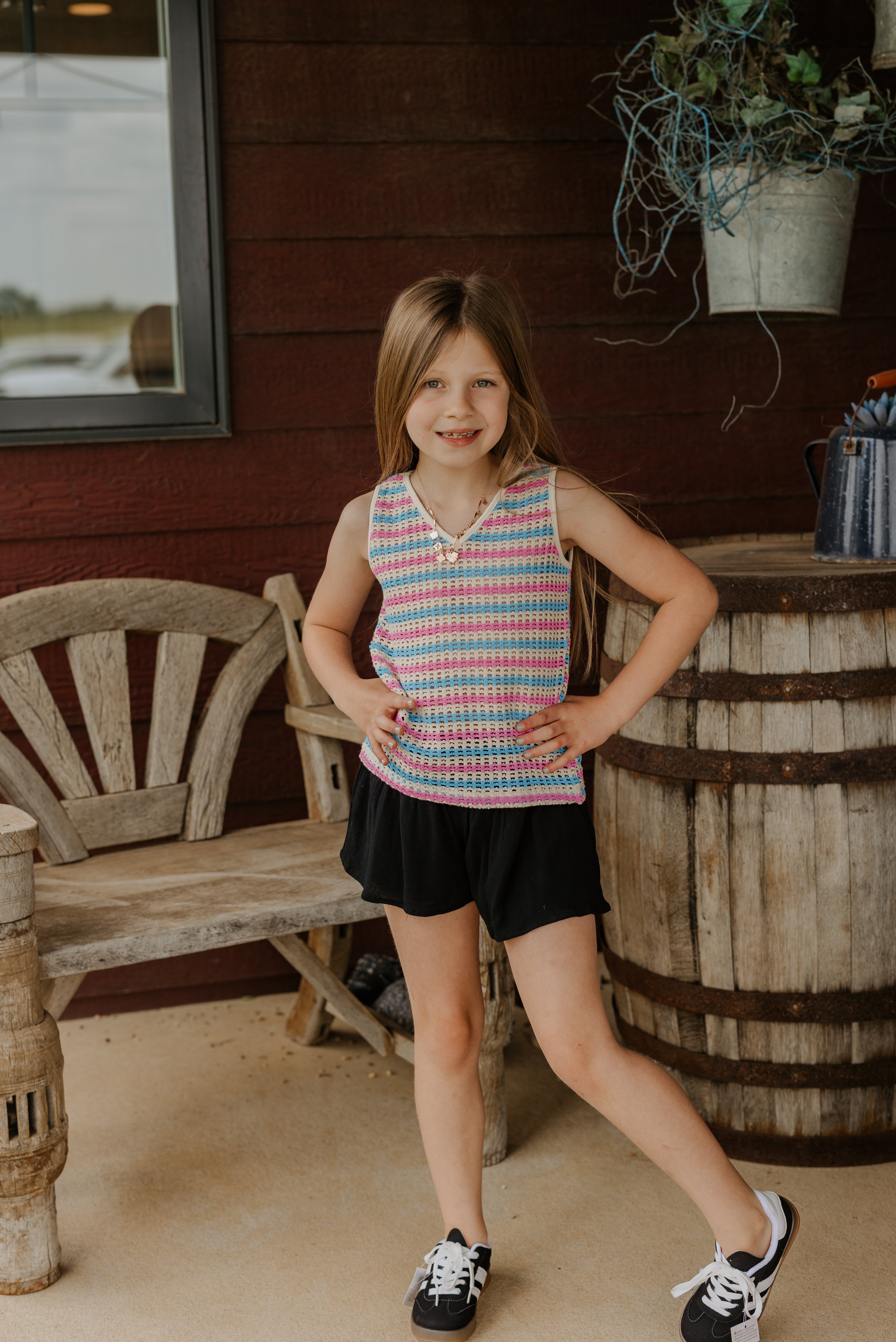 LILLIE GIRLS OPEN KNIT BOXY TANK