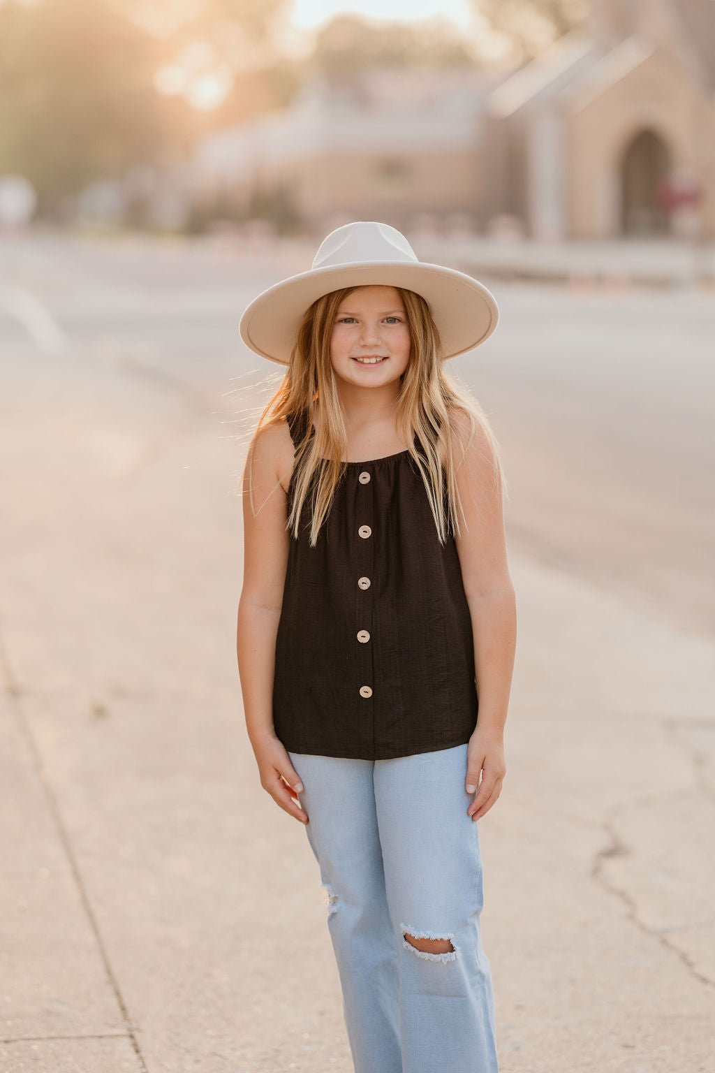 BAILEE GIRLS RUFFLE BUTTON FRONT TANK TOP