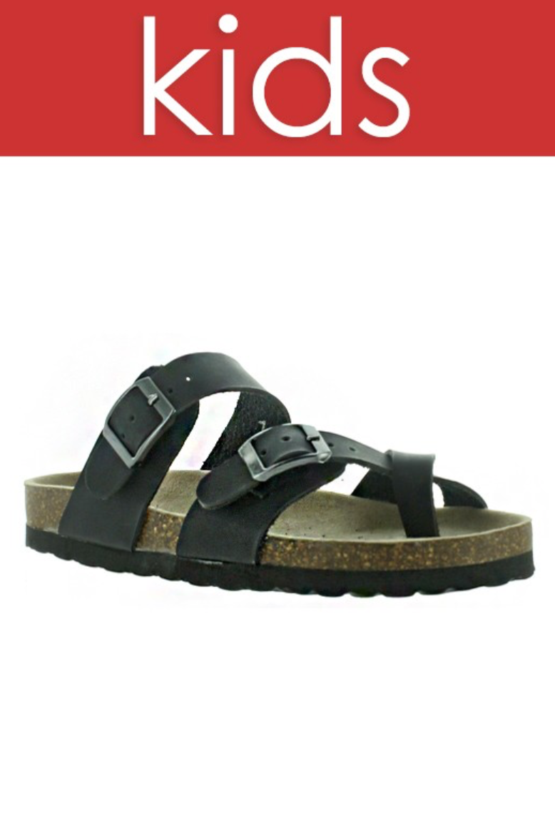 Girls black birk type criss cross sandal