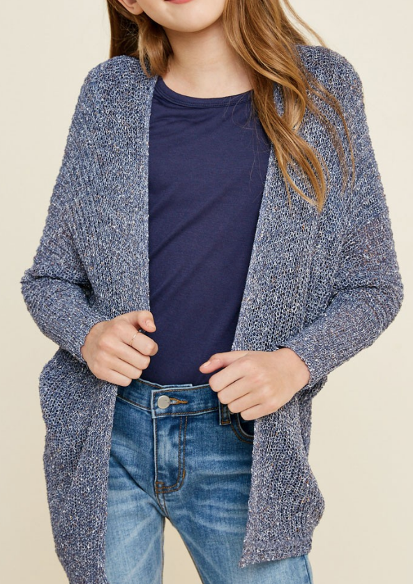 Girls semi sheer dolman sleeve cardigan sweater