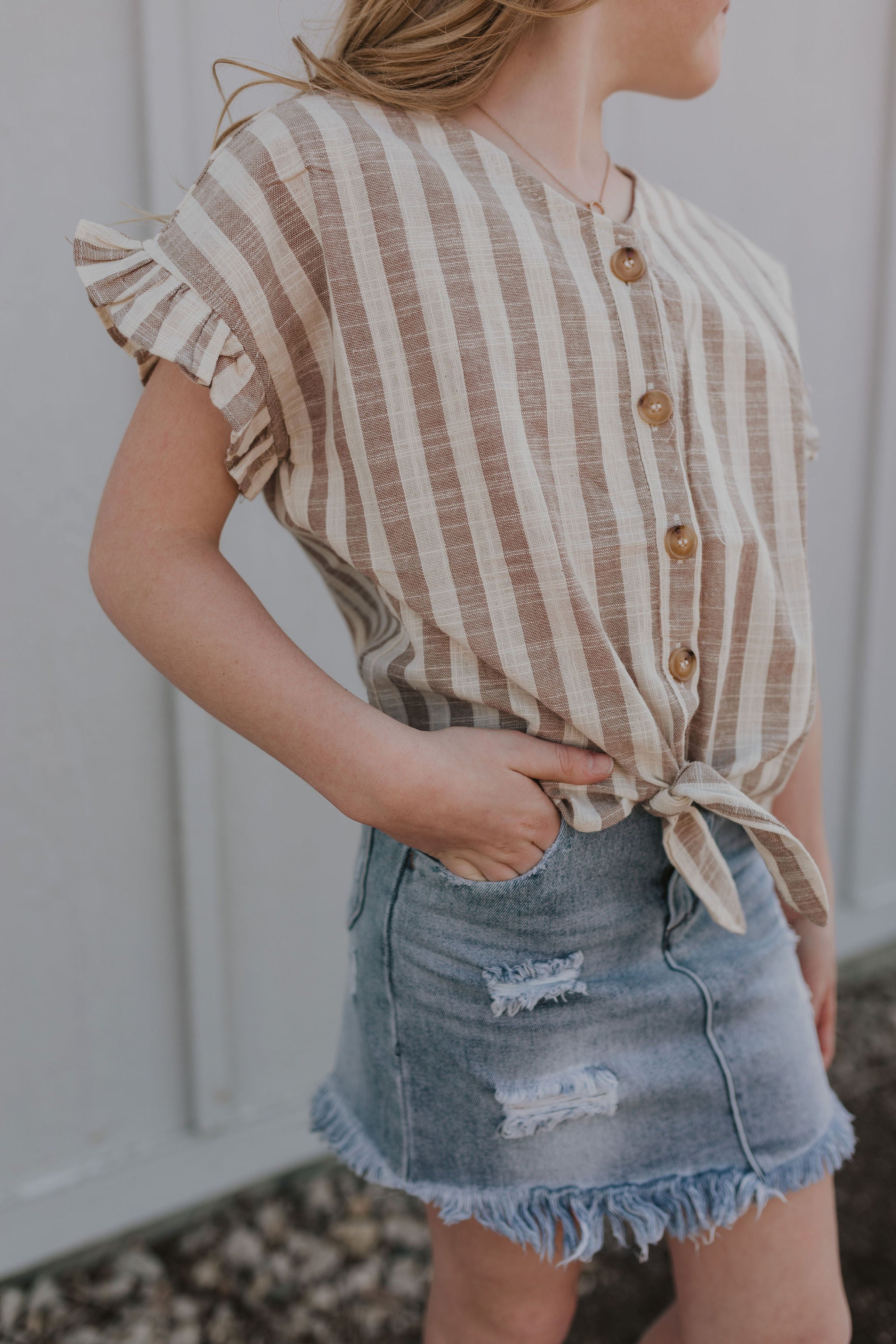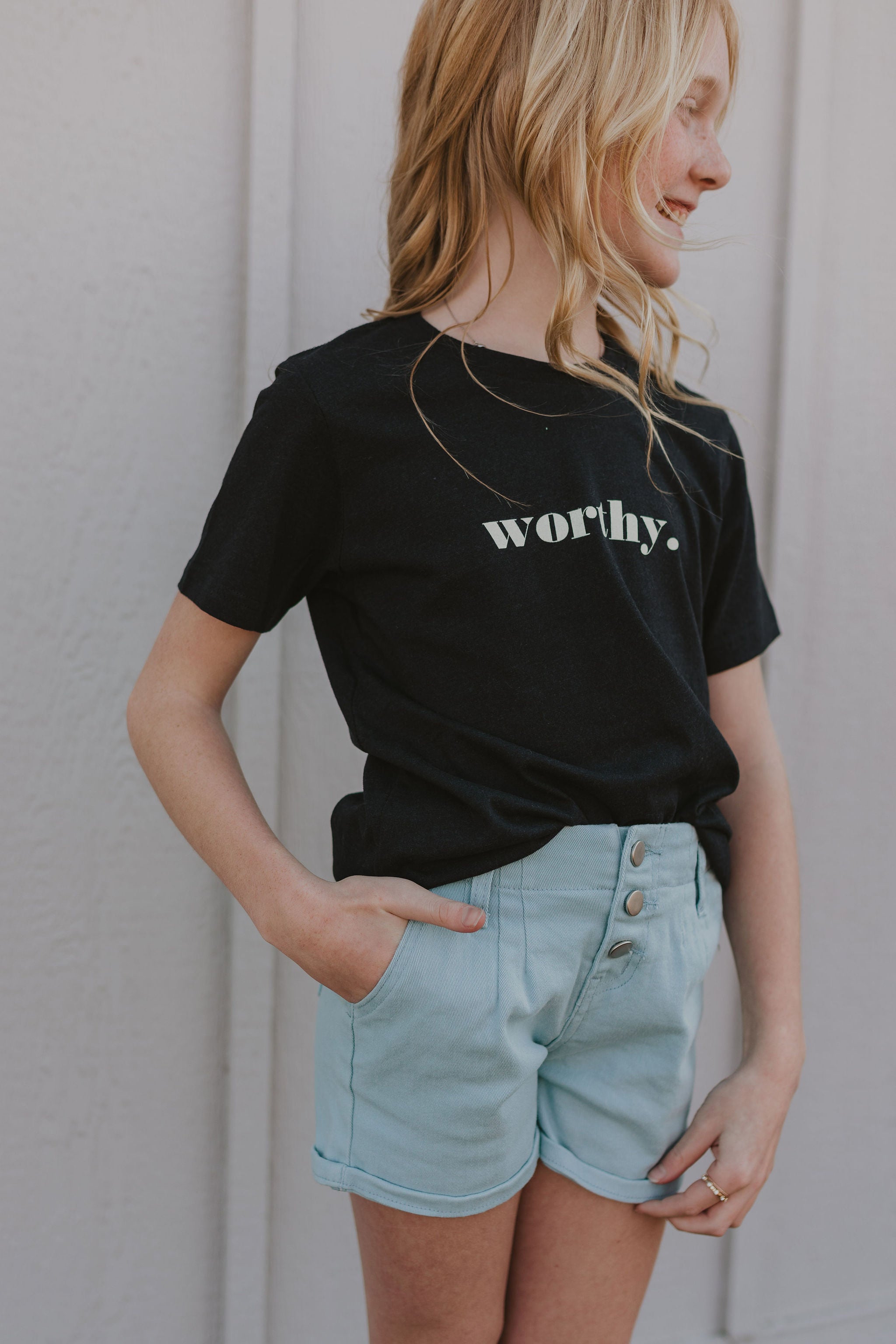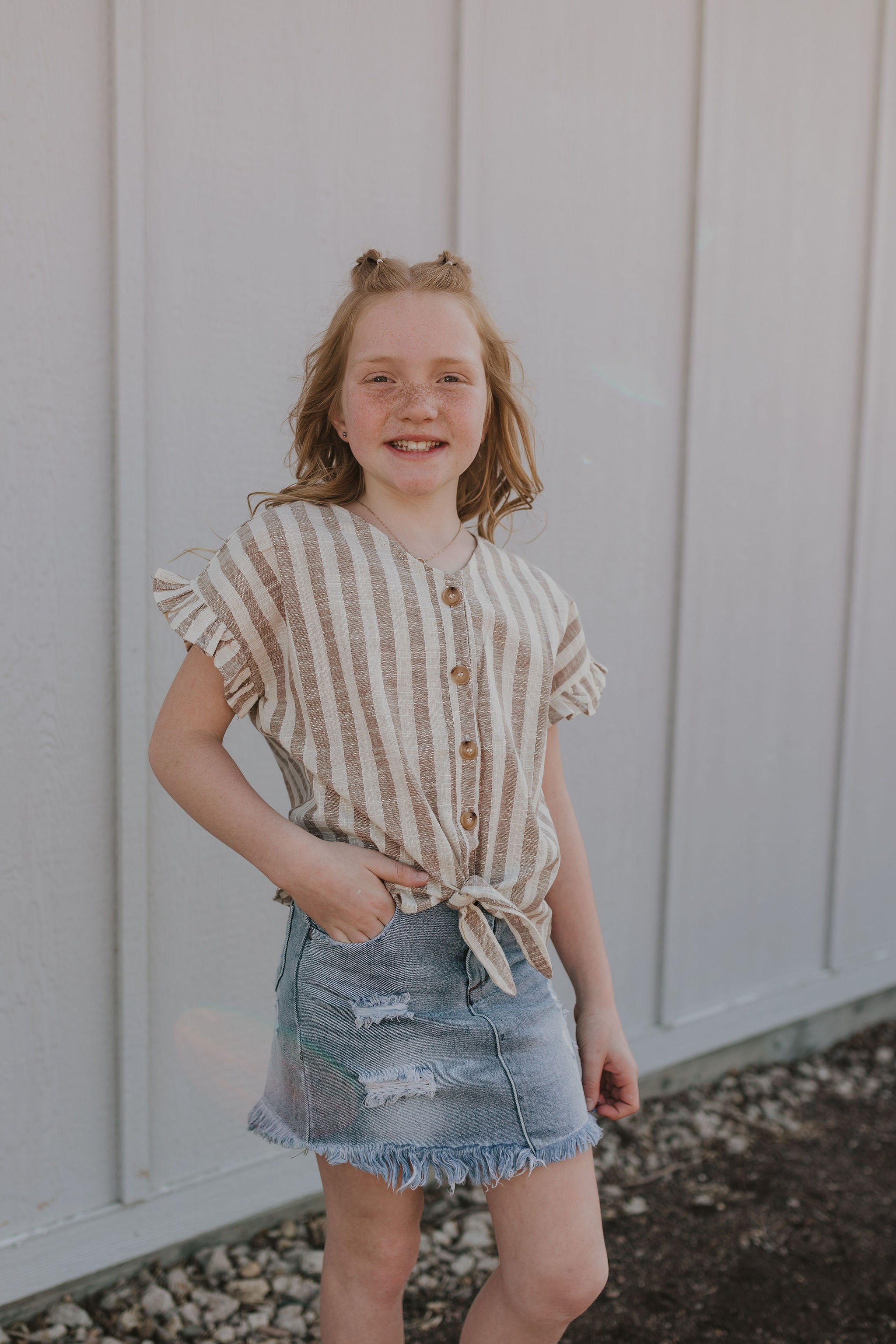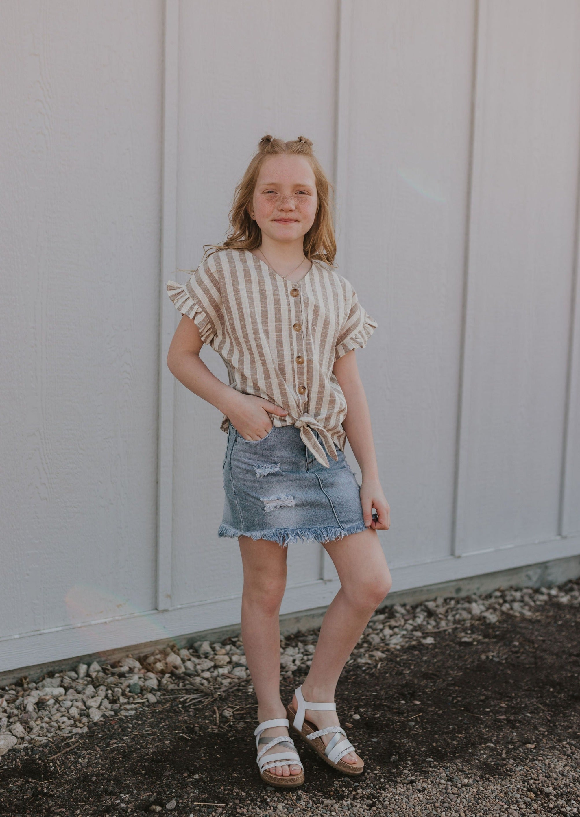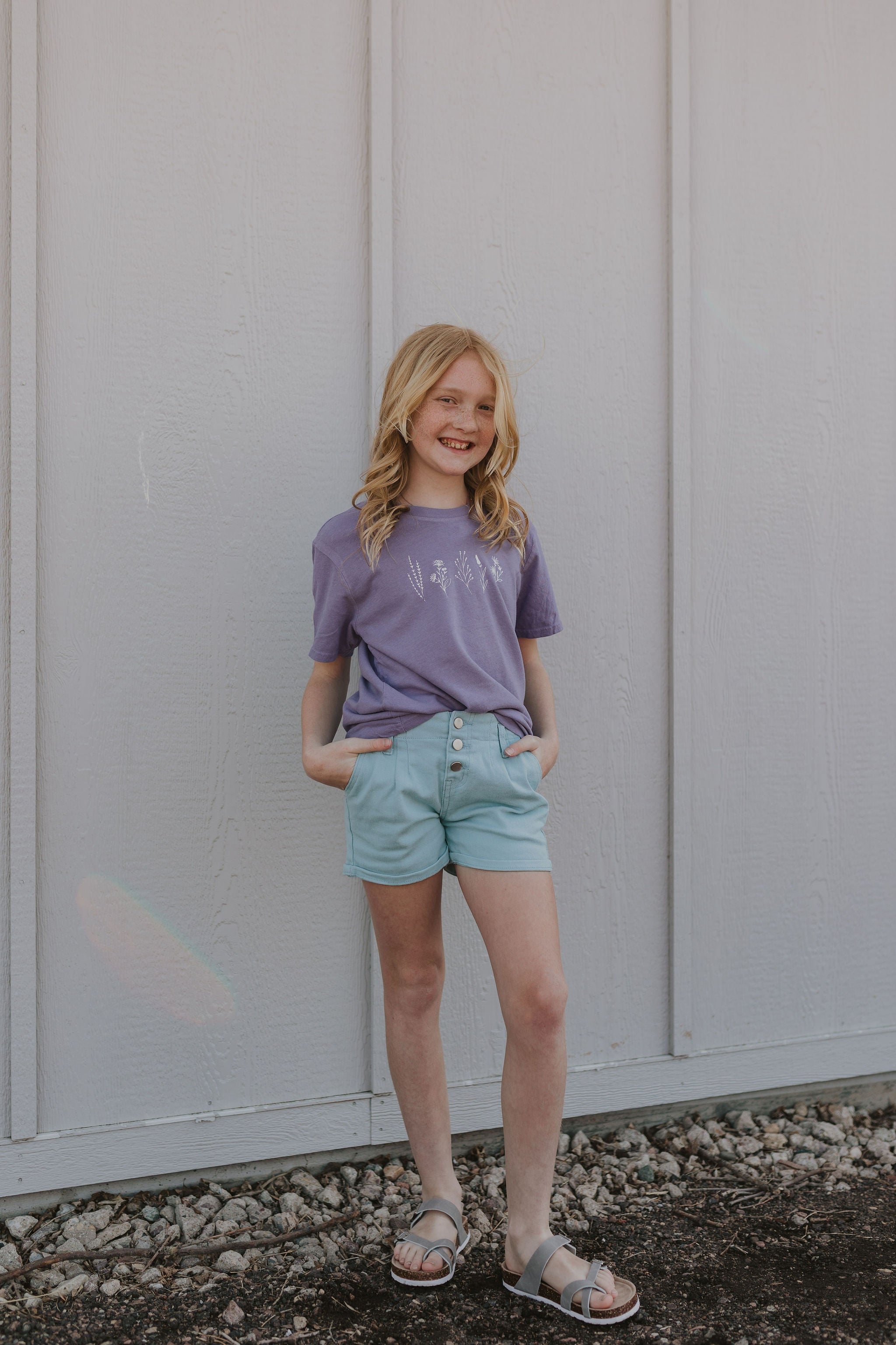 GIRLS HIGH WAISTED PAPER BAG COTTON SHORTS