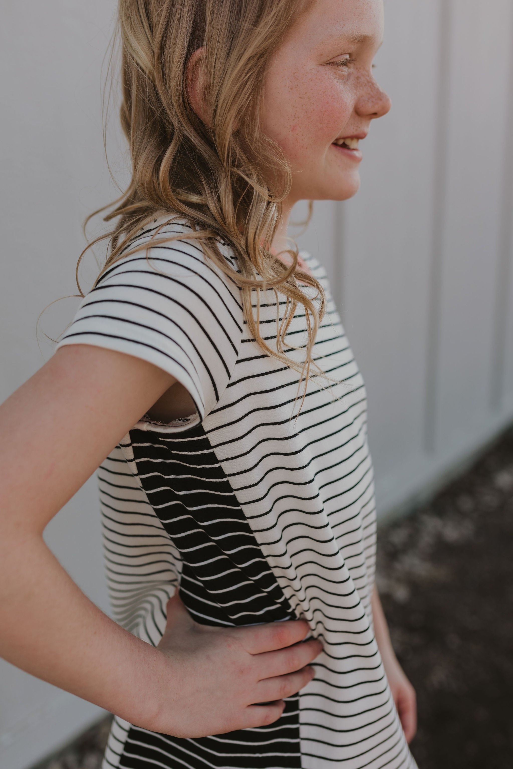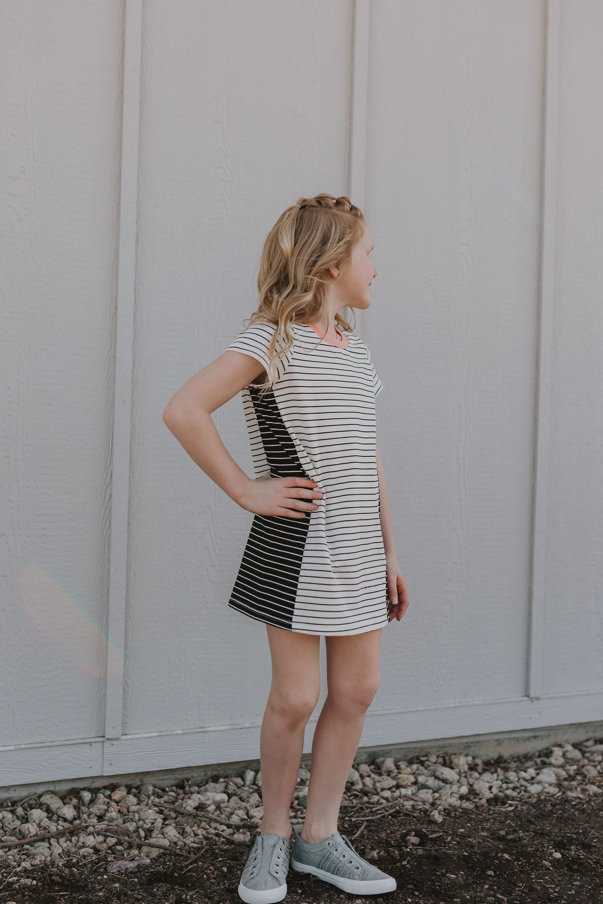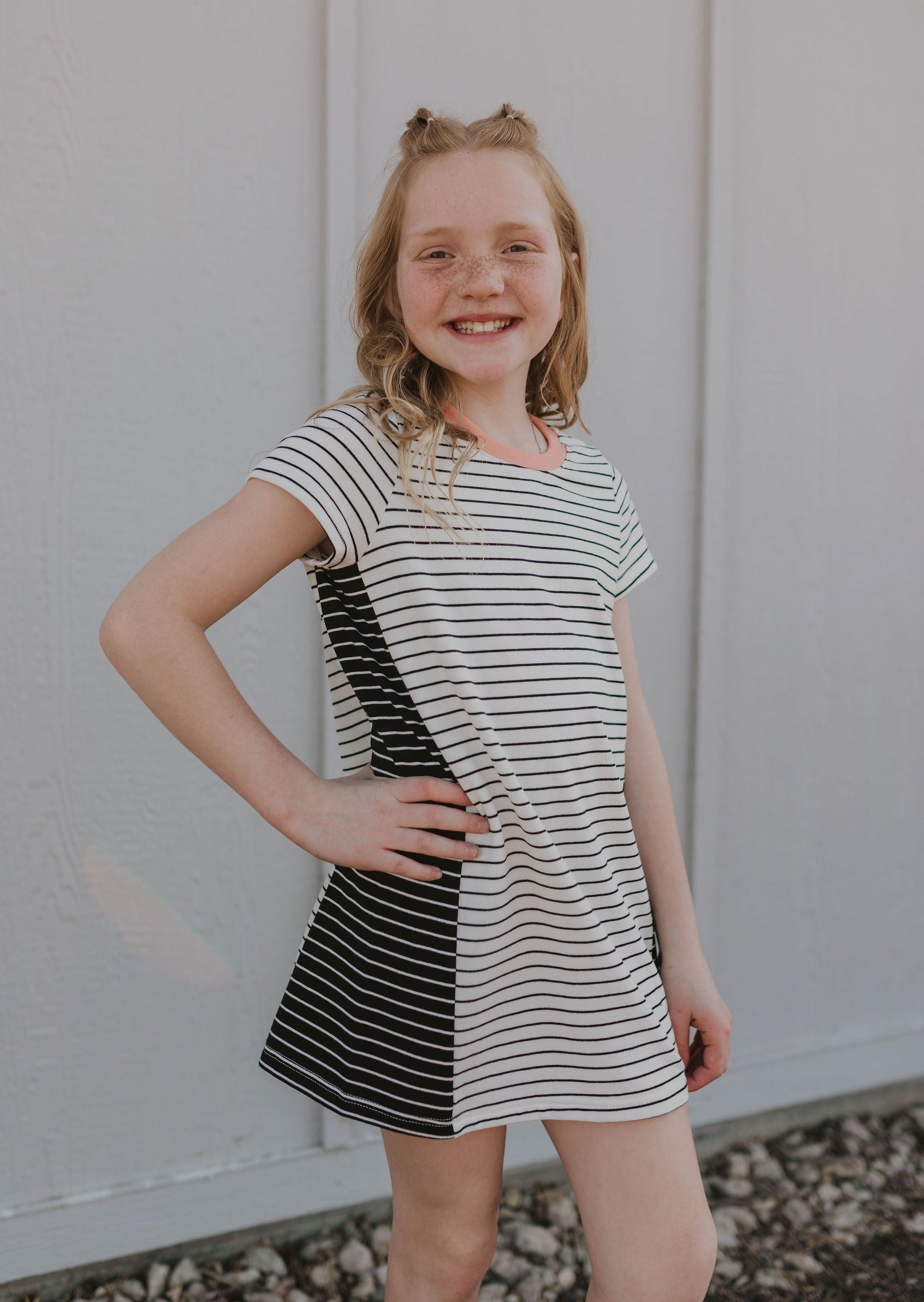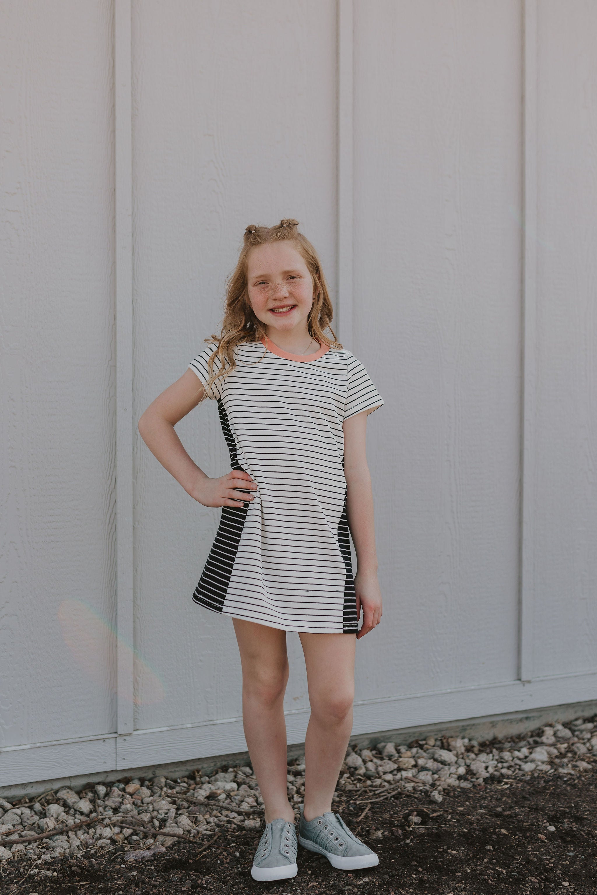 GIRLS SHORT SLEEVE STRIPED DRESS
