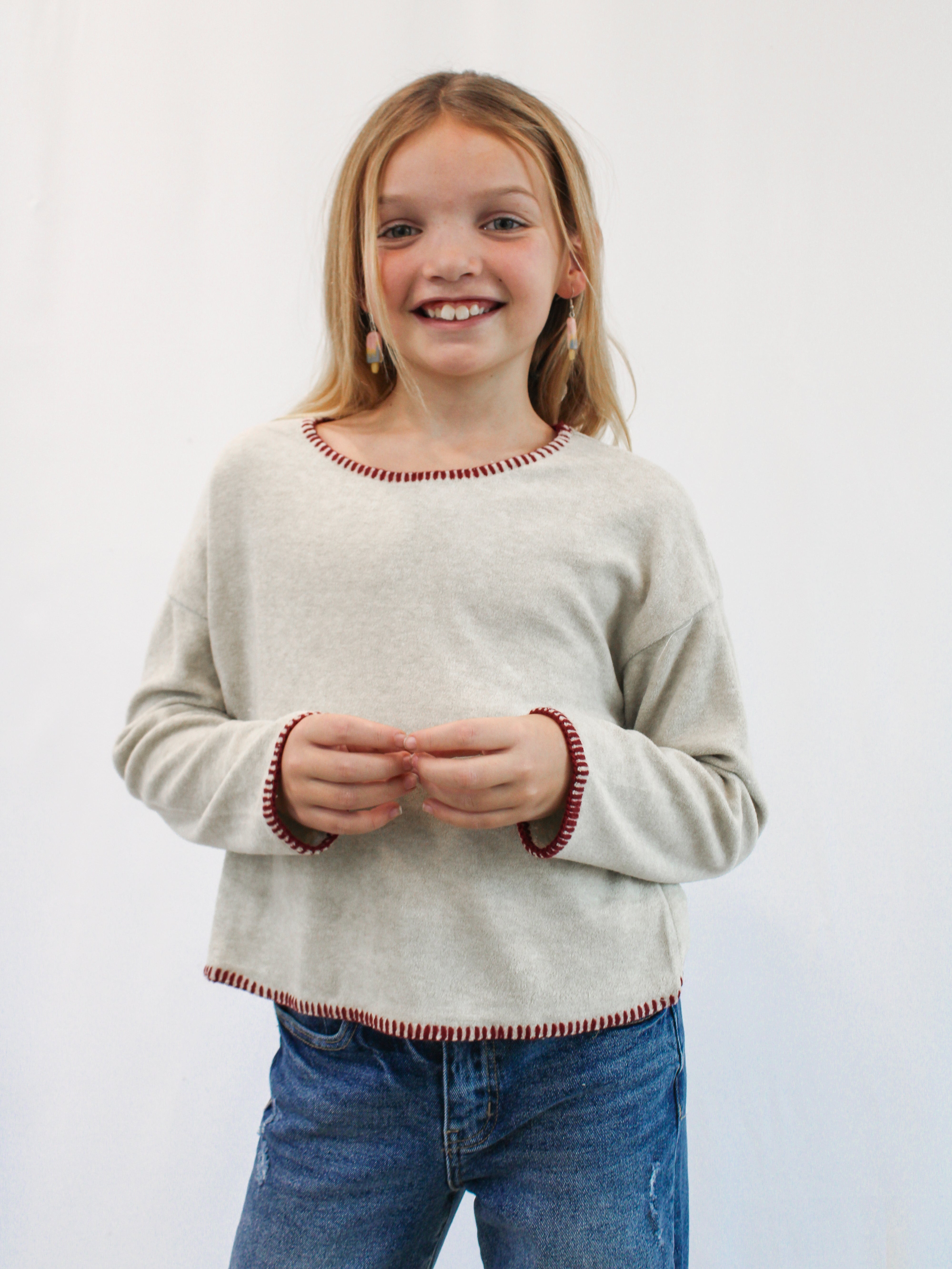 Keep your little one cozy and stylish with our Logan Top! Made with soft brushed knit fabric, this long sleeve t-shirt features a round cut neckline and trendy contrast stitch detail. Perfect for any occasion, this top will keep your girl looking cute and feeling comfortable.