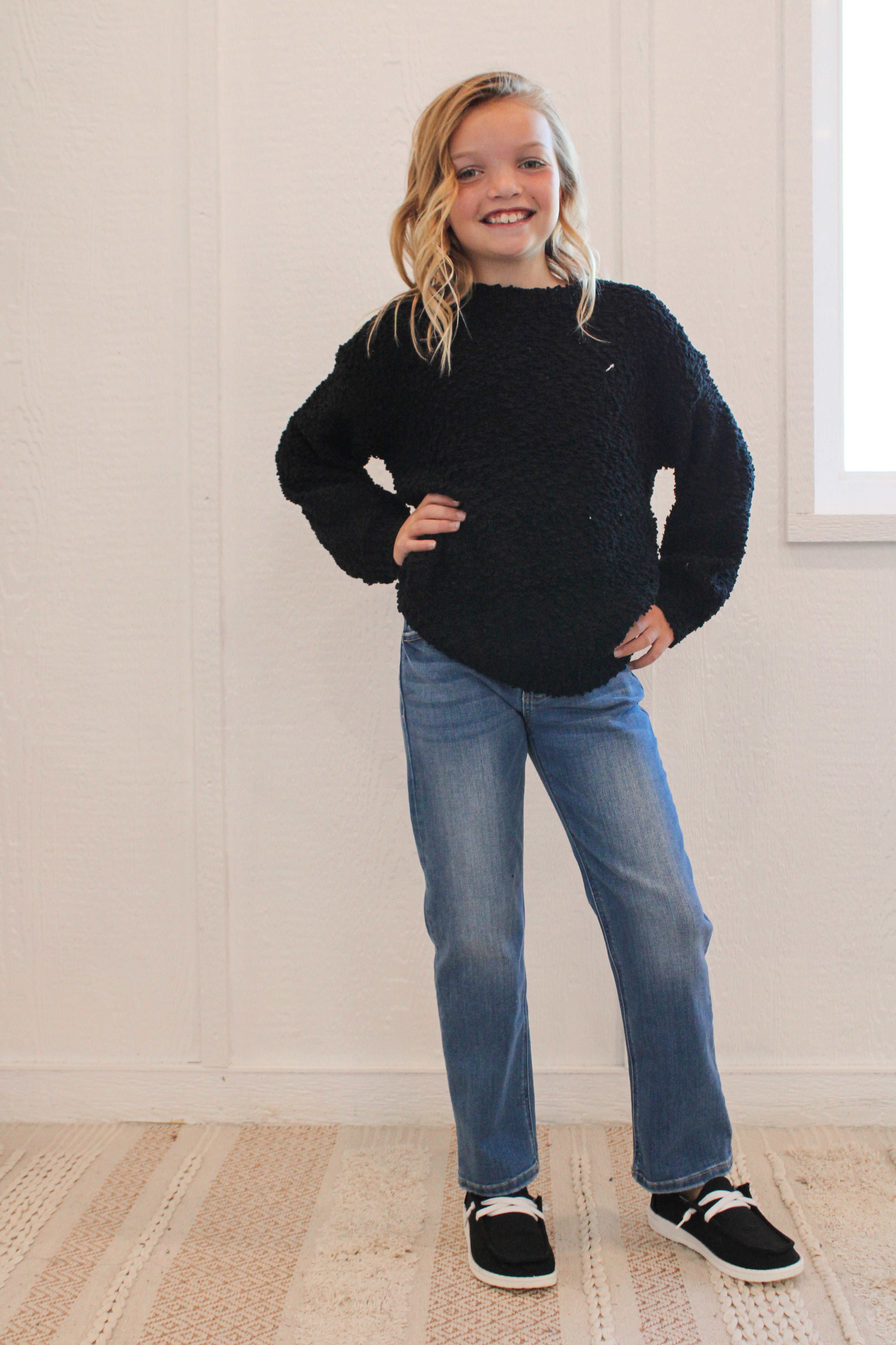 LUNA GIRLS POPCORN KNIT SWEATER