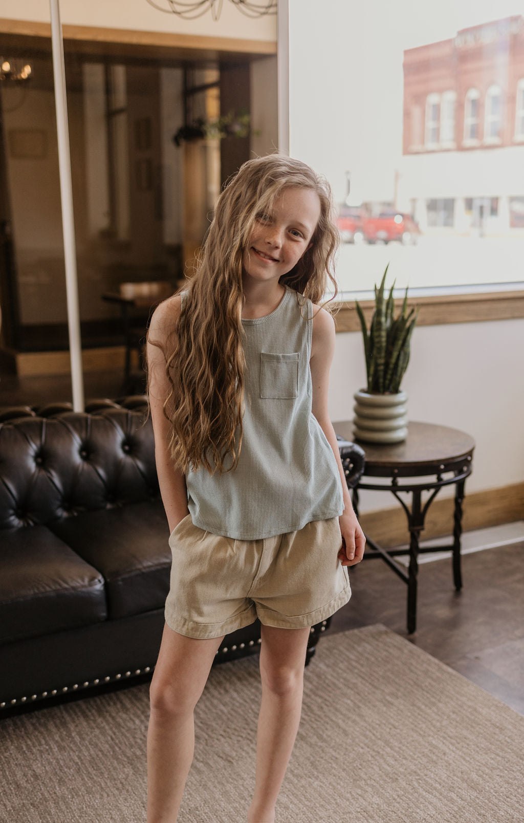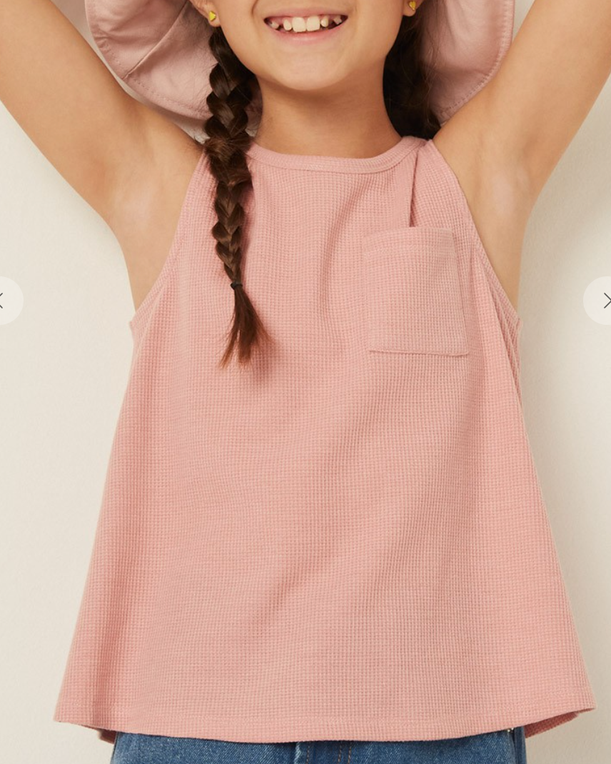 Girls waffle knit pocket tank top