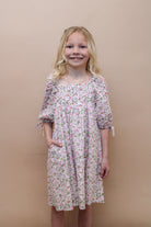 Girls floral dress with tie sleeve detail