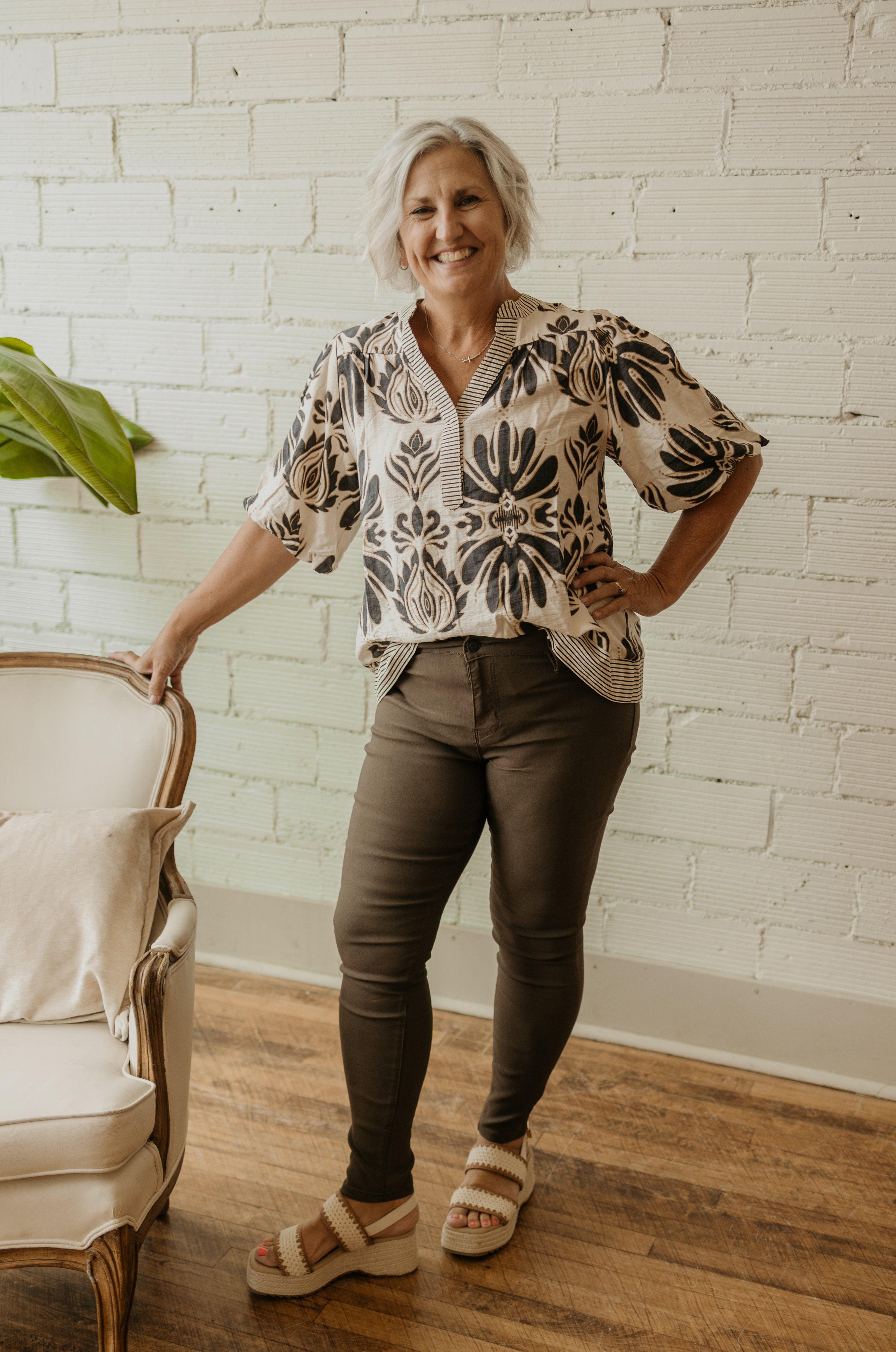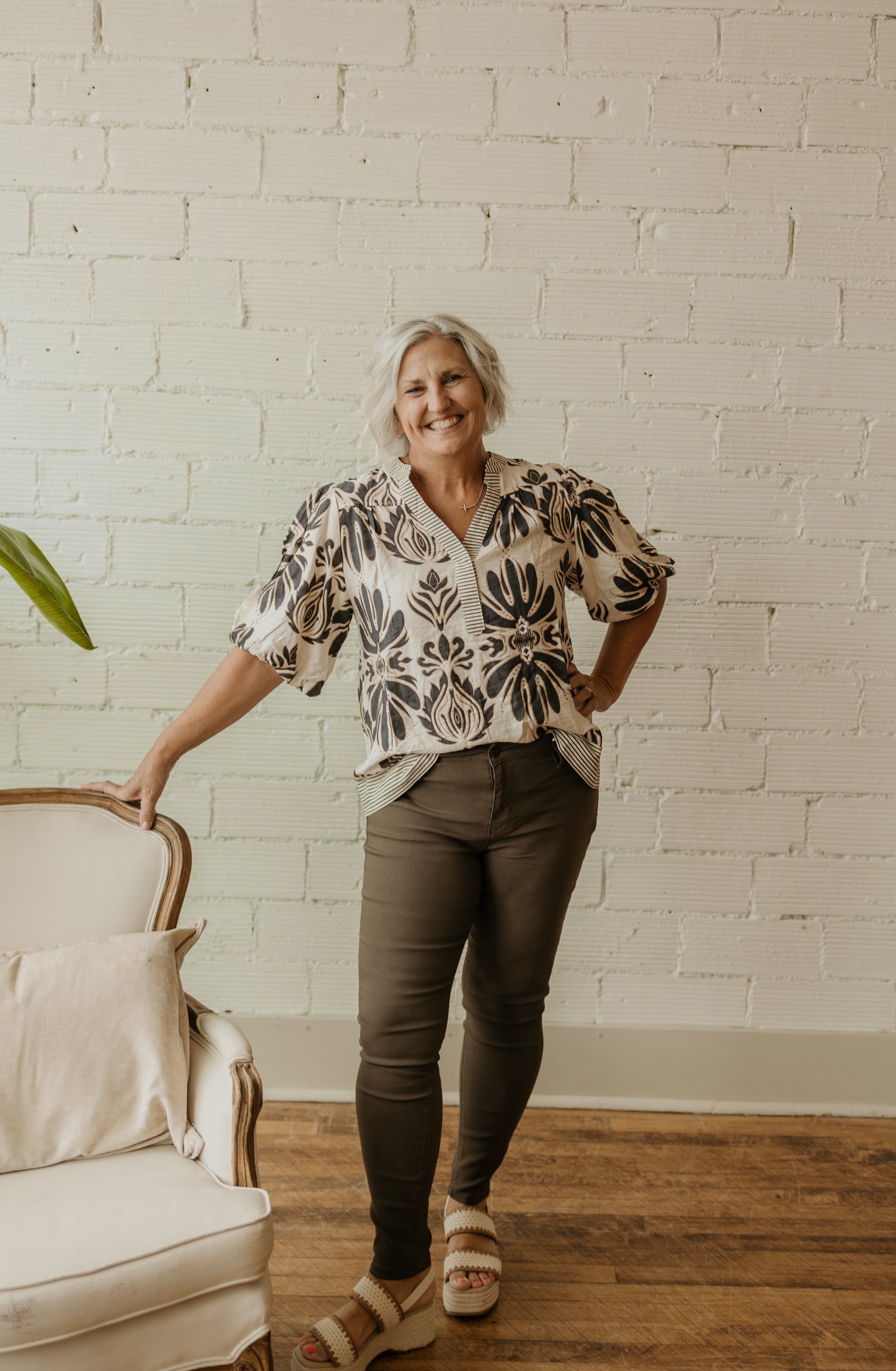 COURTNEY BUBBLE SLEEVE PRINTED TOP