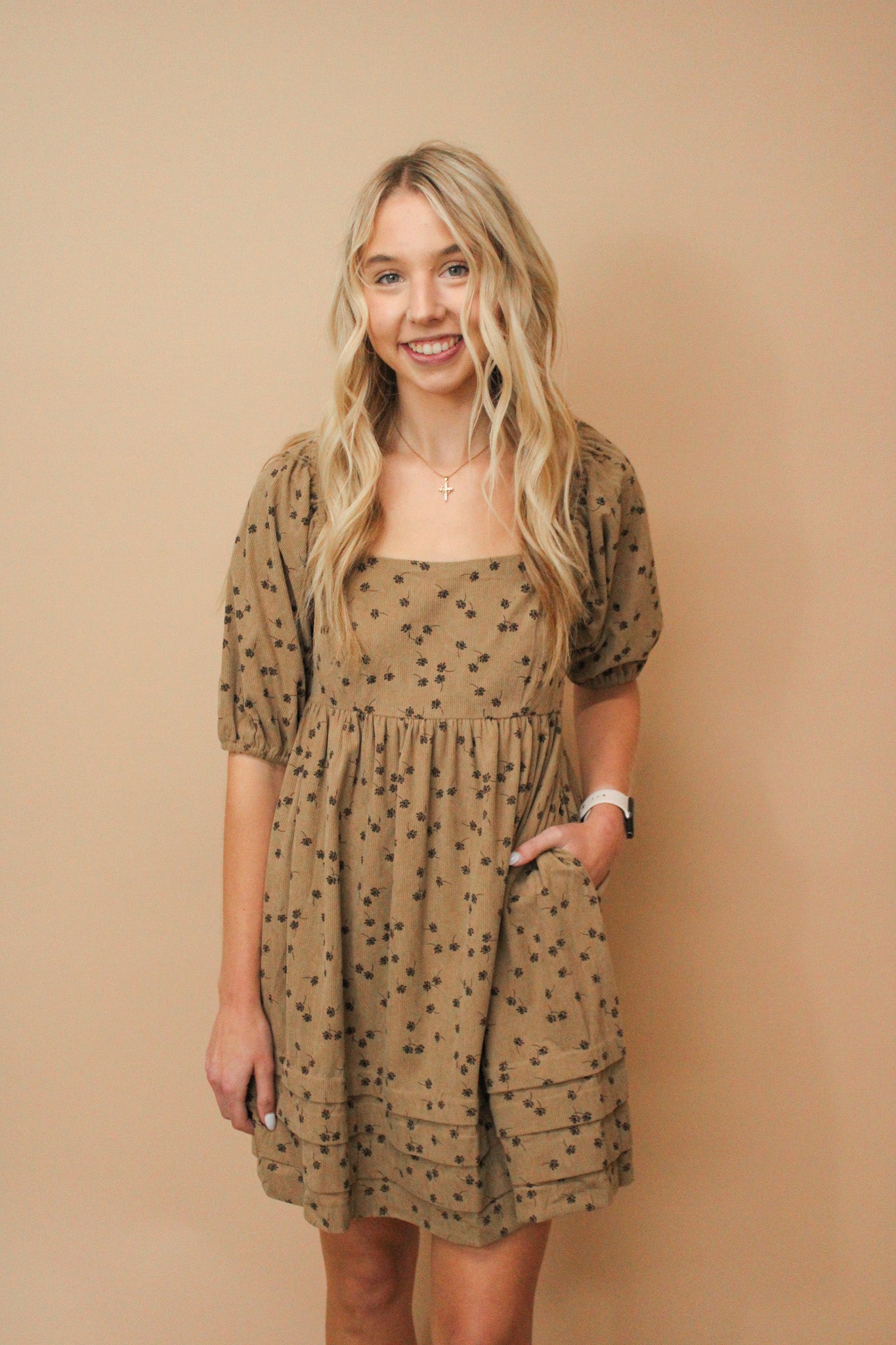 PEYTON FLORAL CORDUROY BABYDOLL MINI DRESS