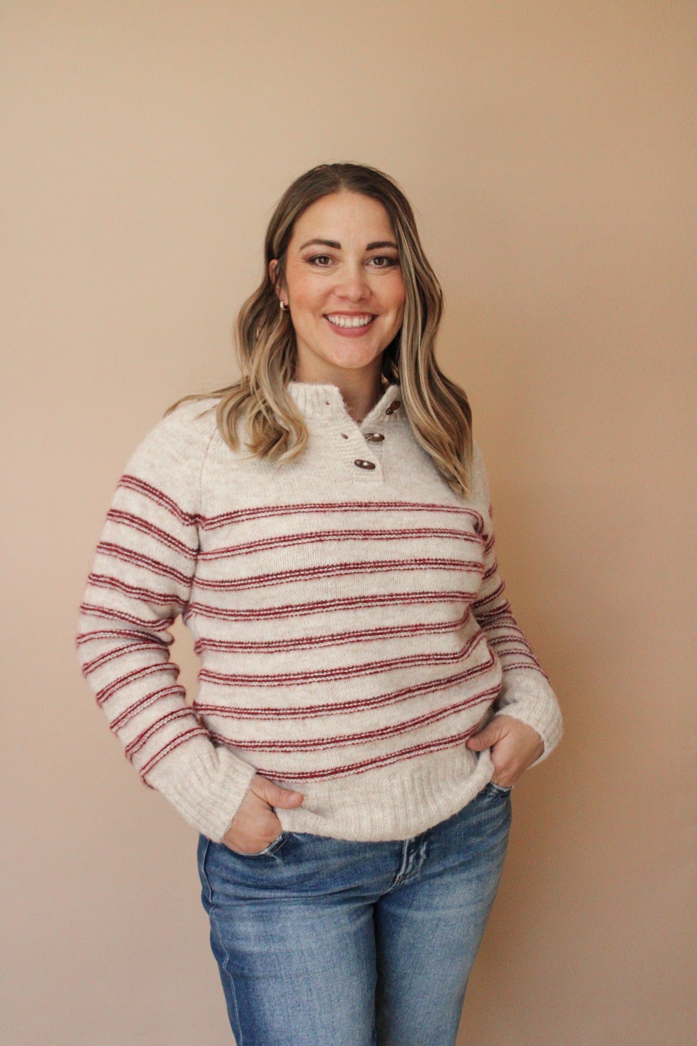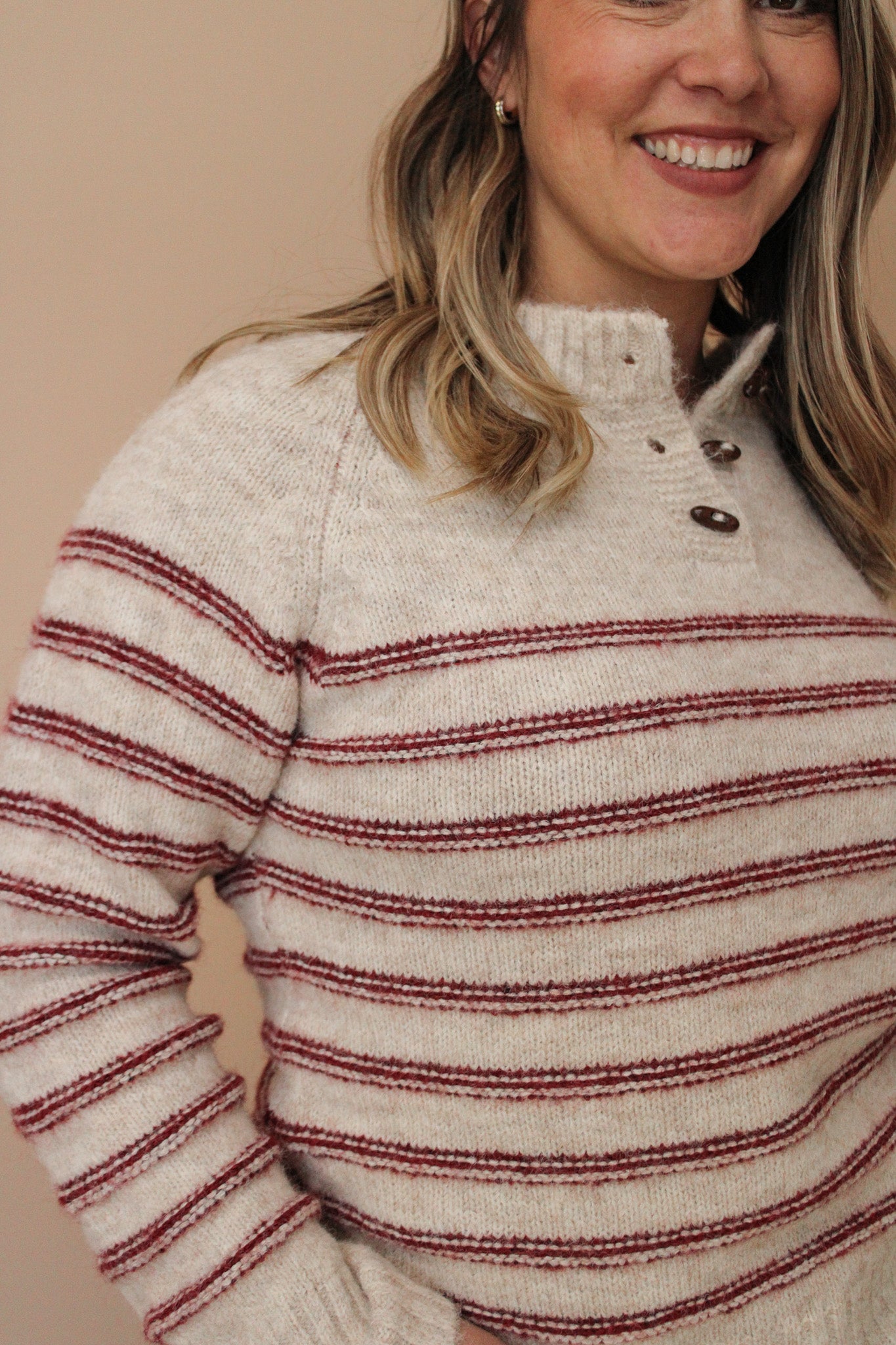 DACIA STRIPED HALF BUTTON UP SWEATER