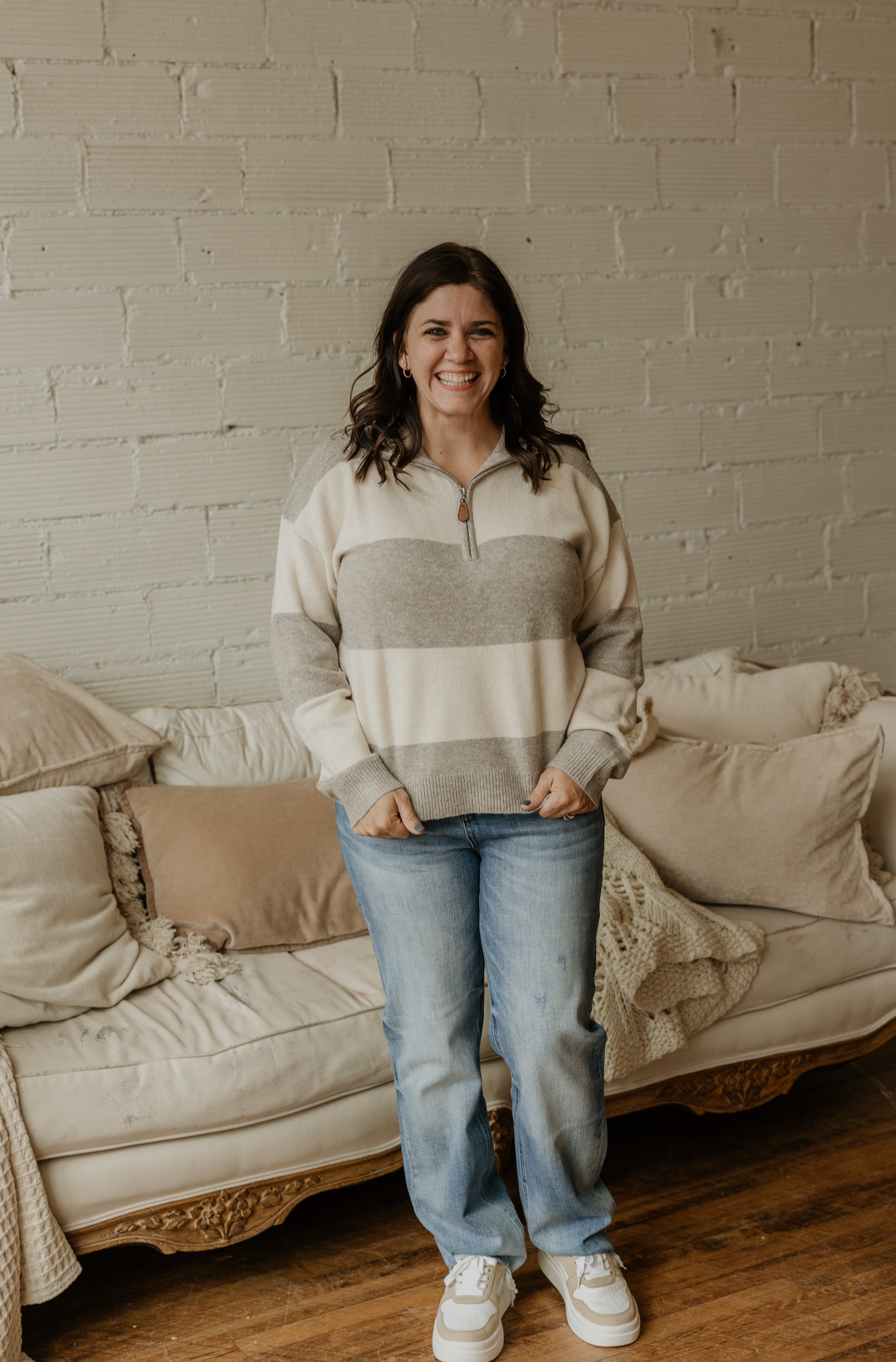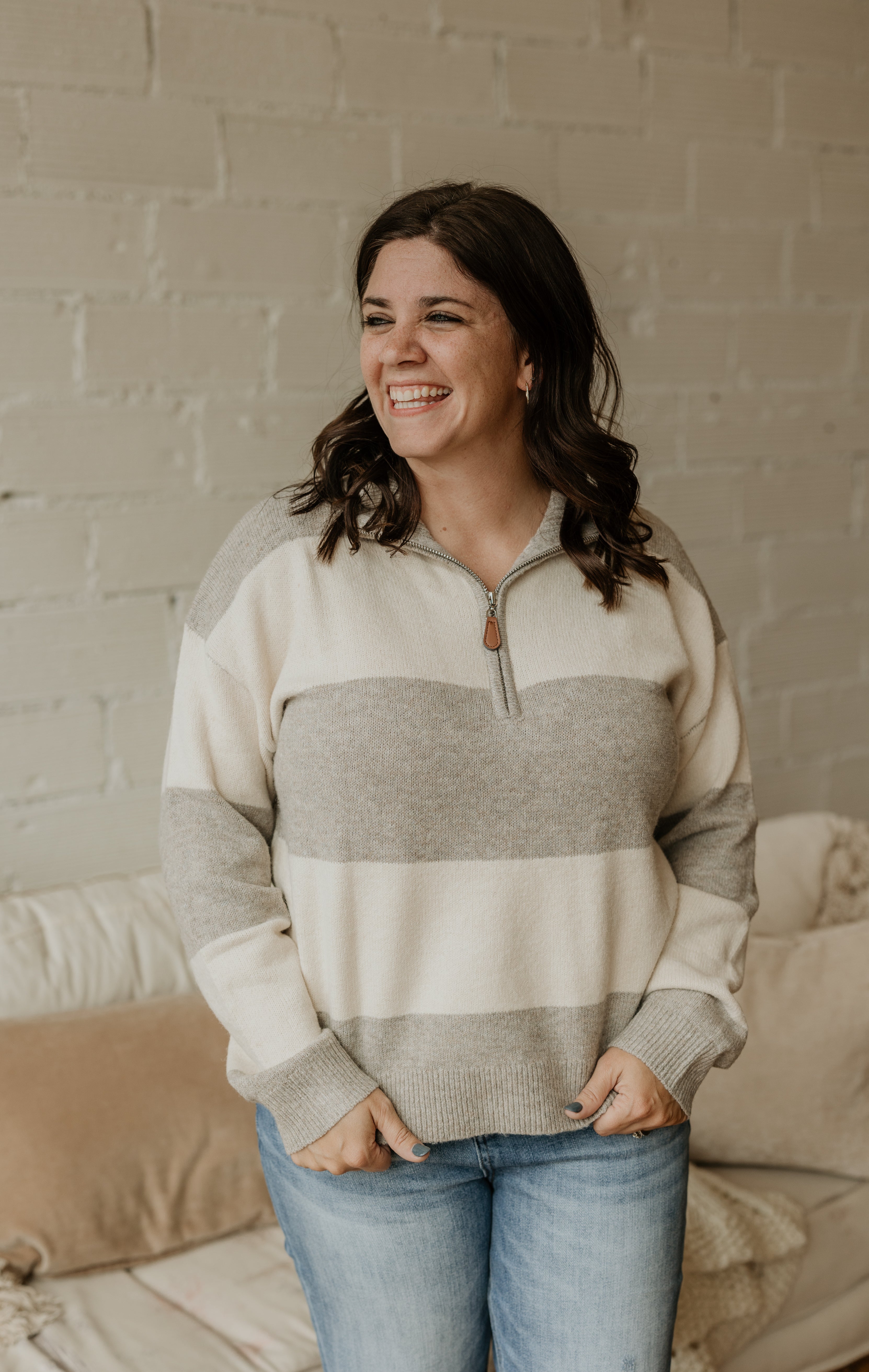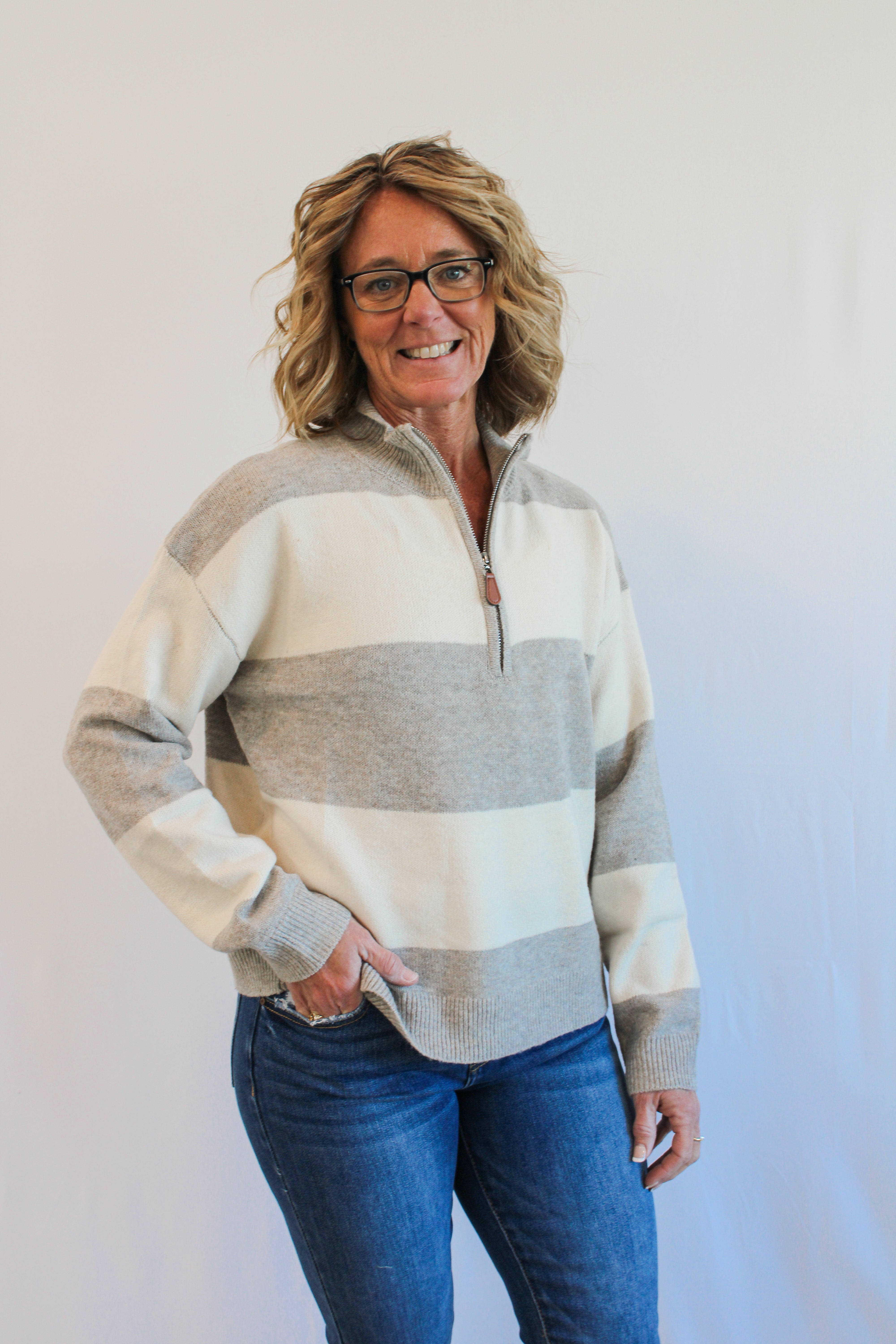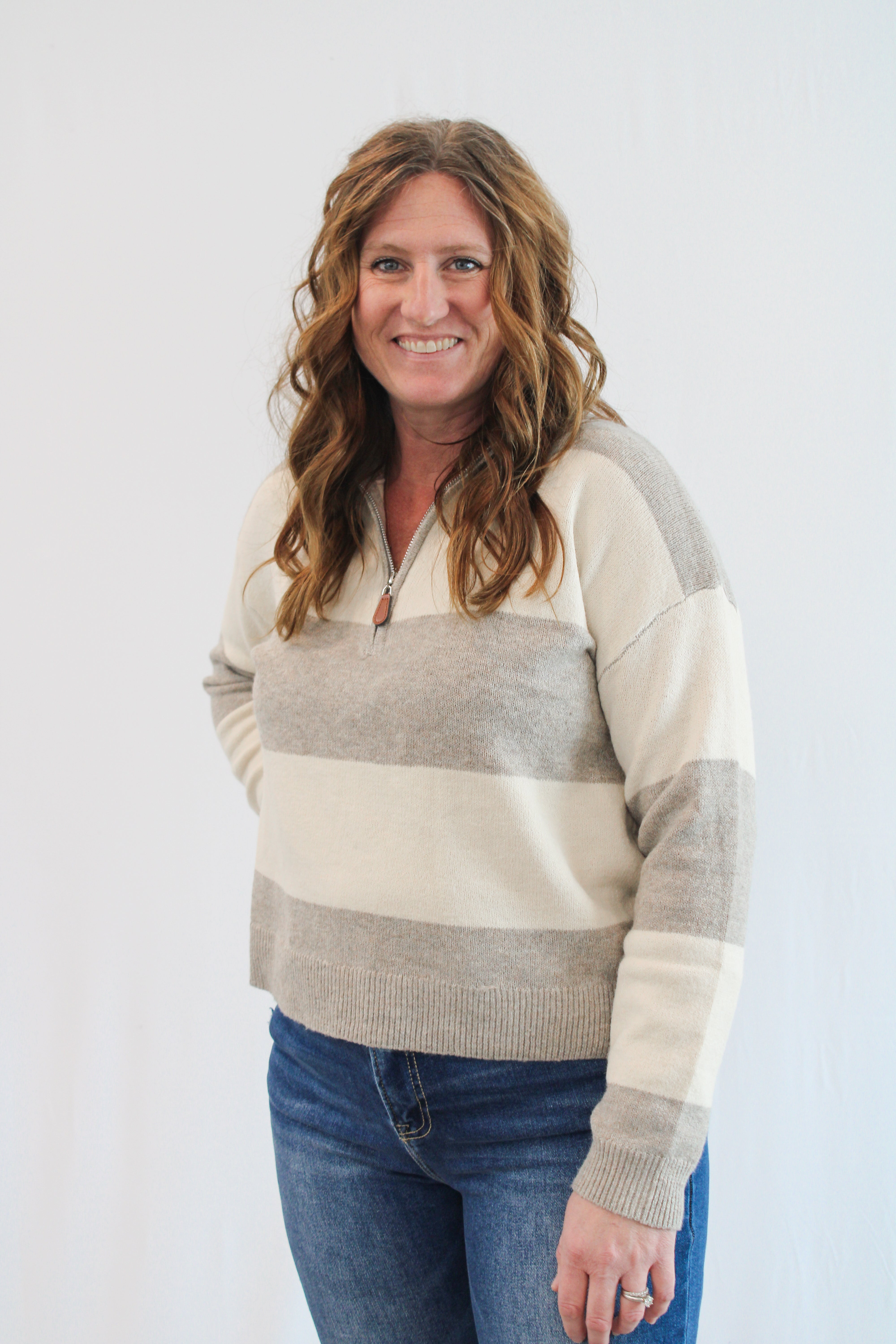 HENNA STRIPED HALF-ZIP SWEATER