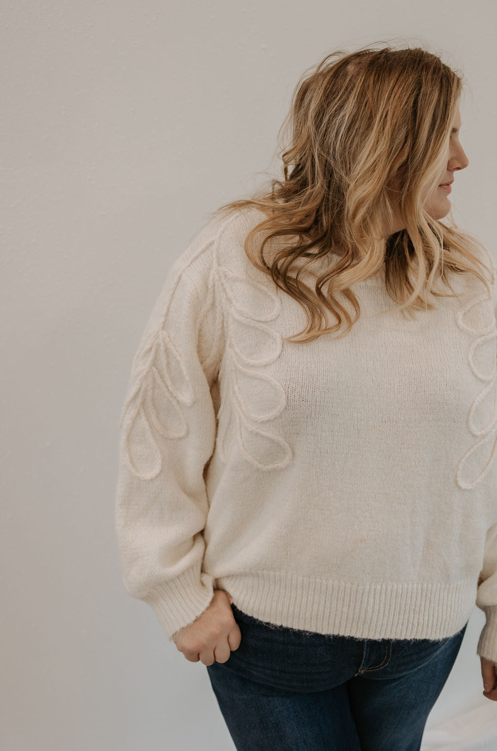 ALIANNA REG/CURVY FLORAL STITCHED SWEATER