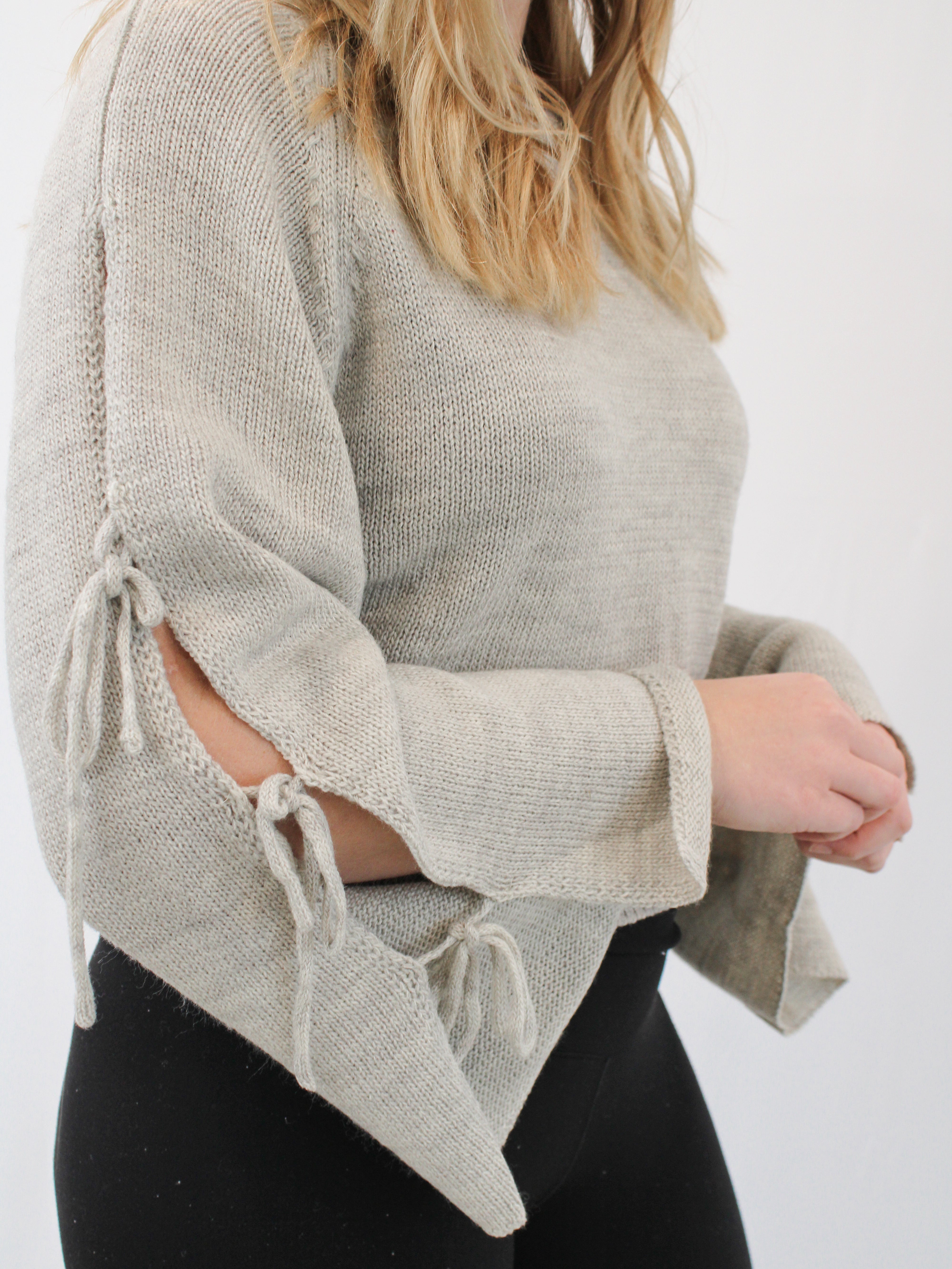 HEATHER RIBBON TIE SLEEVE SWEATER BY IVY & CO