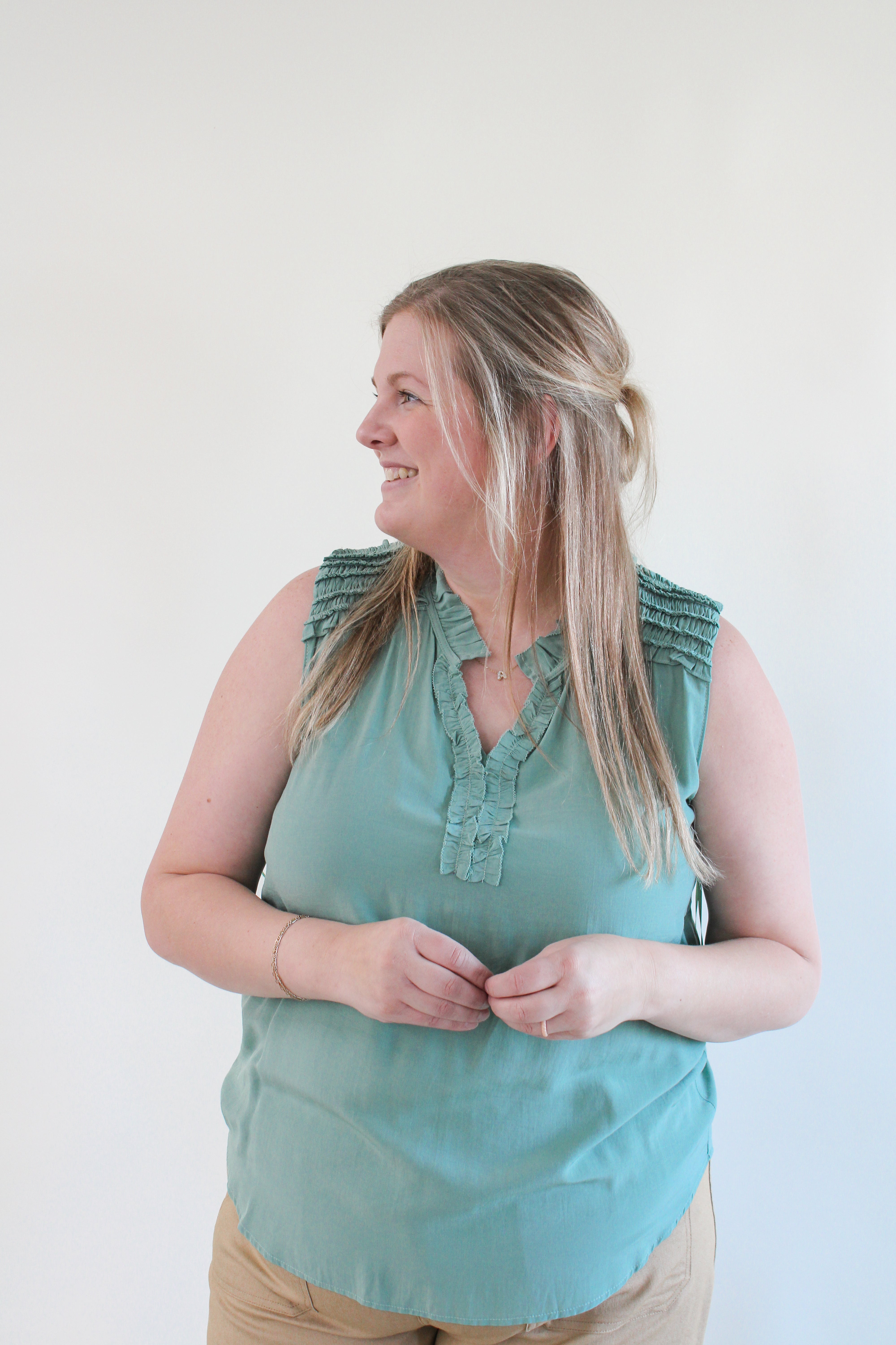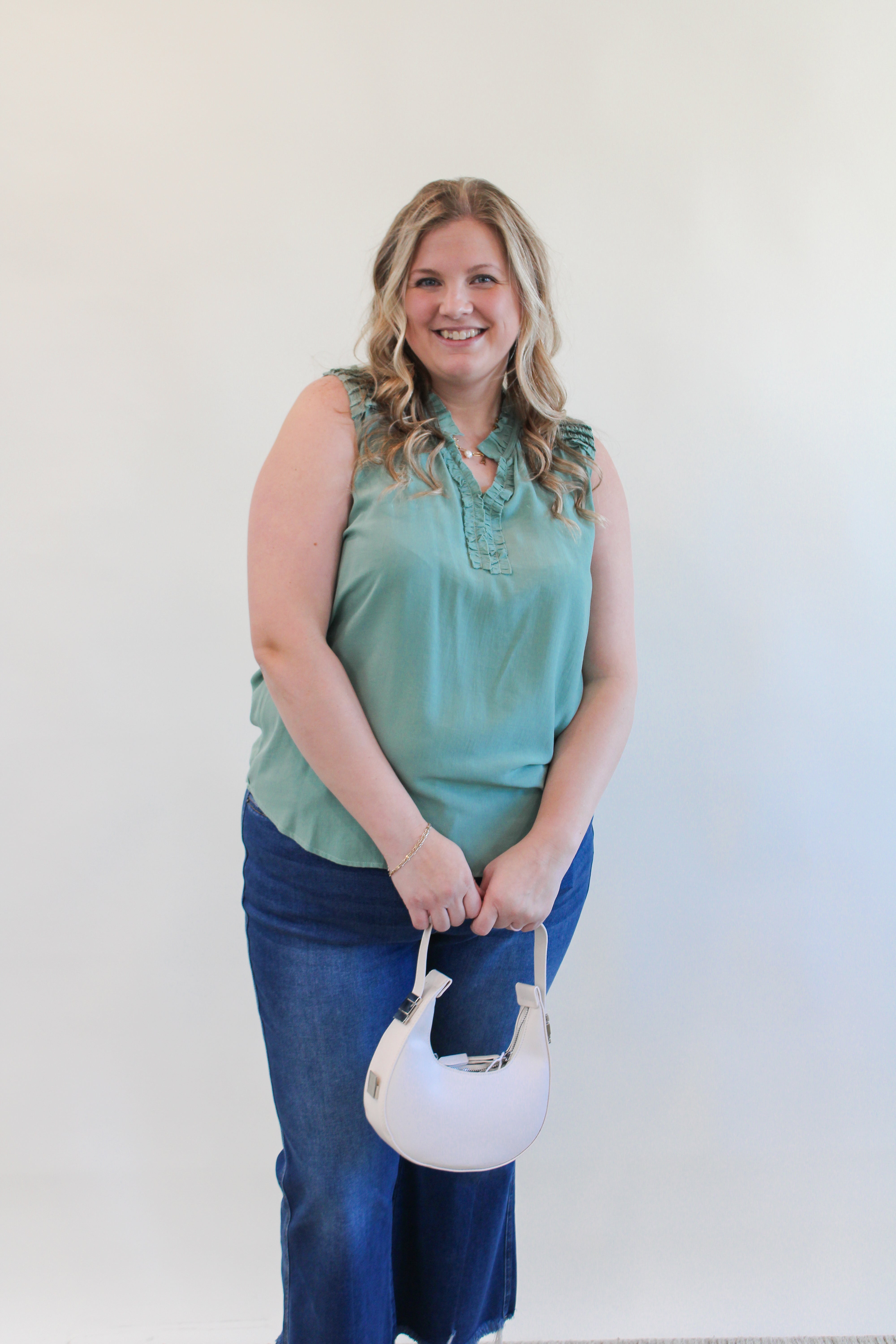 CECE CURVY RUFFLED SLEEVELESS TOP