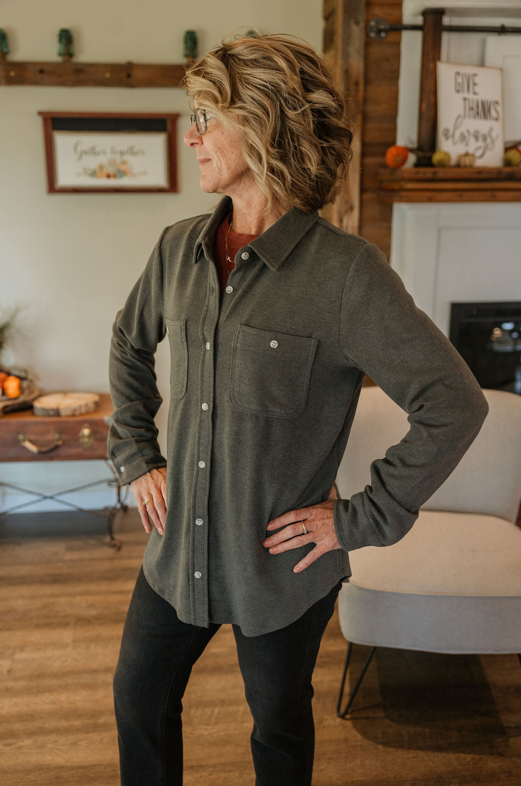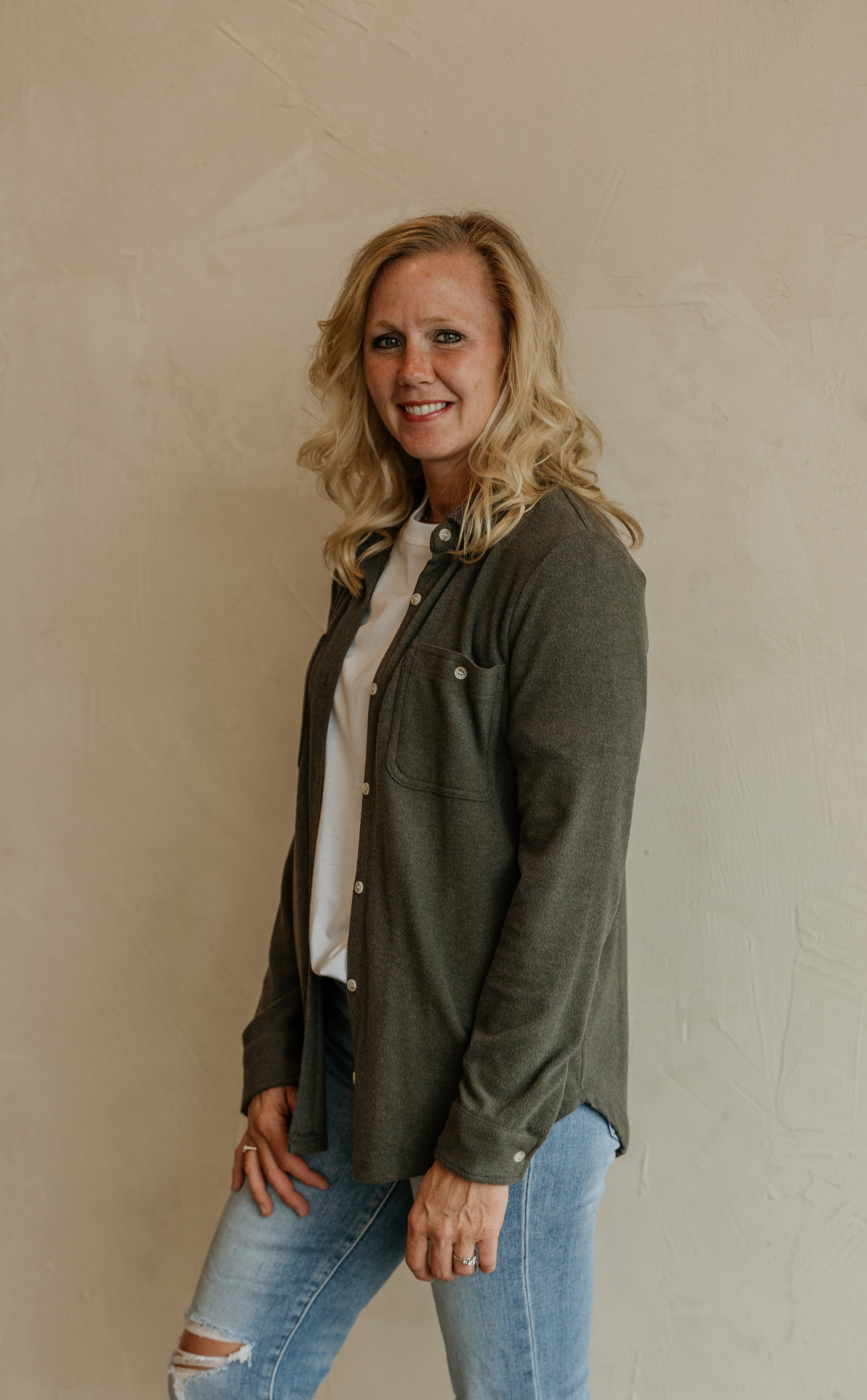 Casual soft button down top