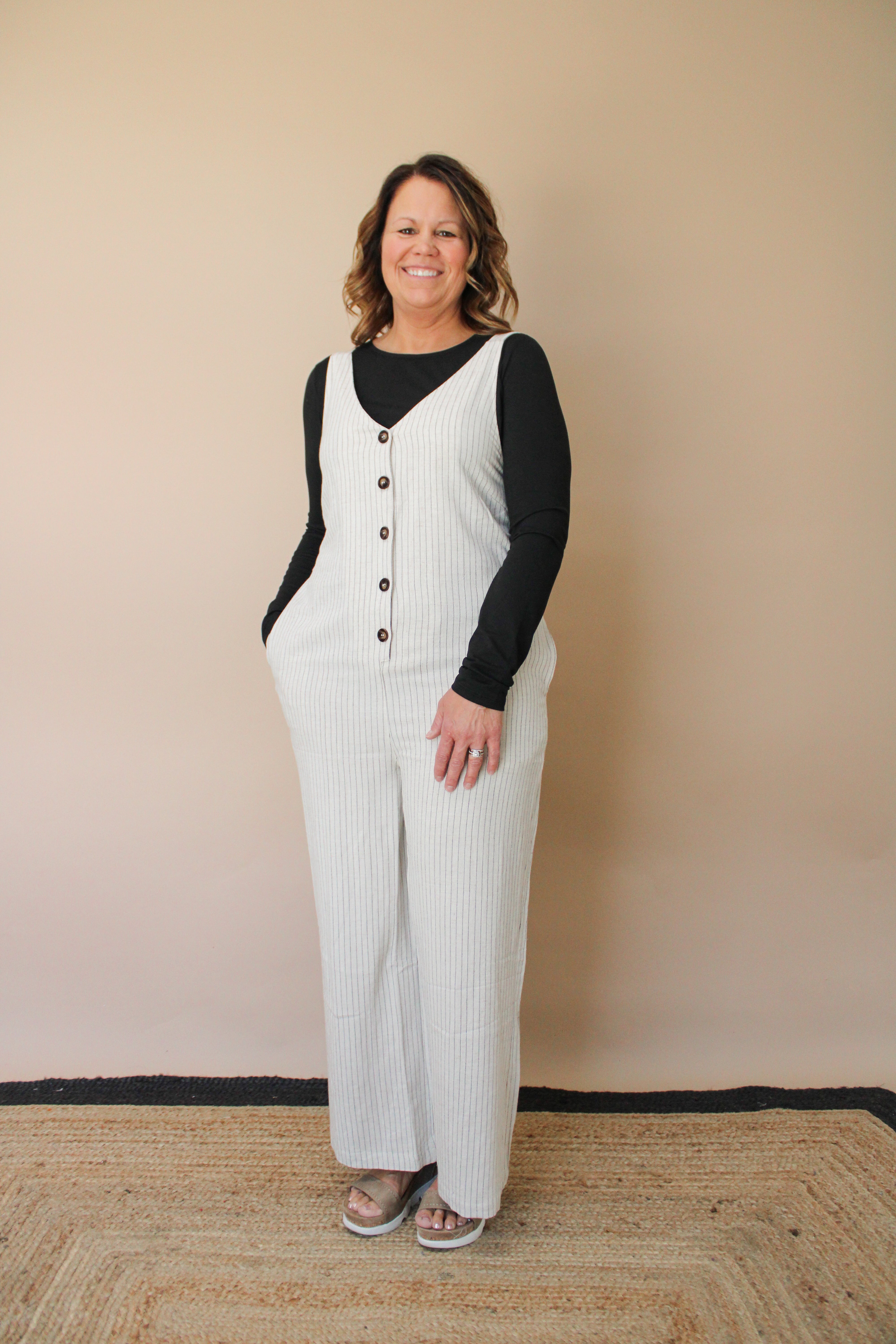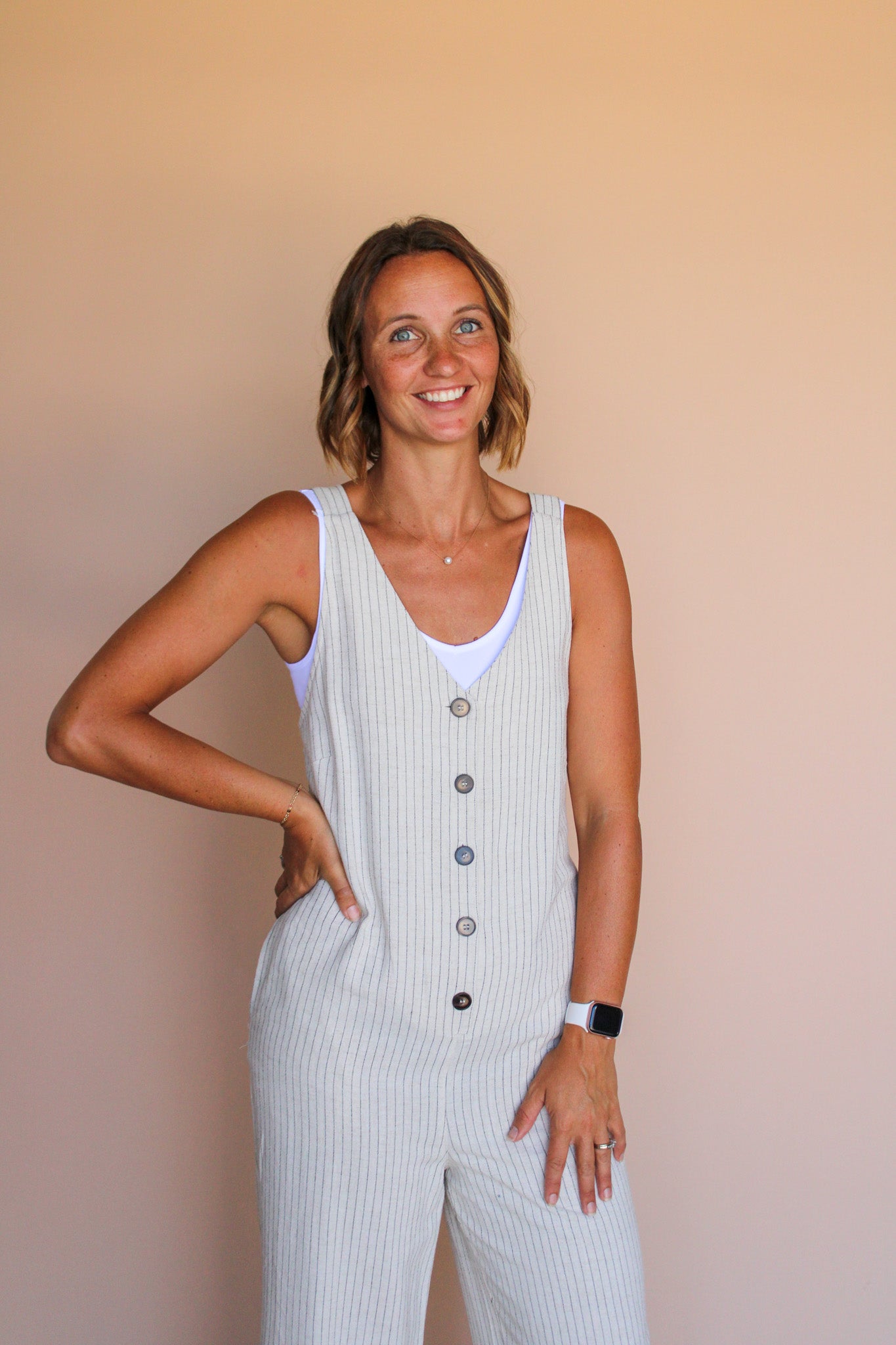 MINDI BUTTON DOWN VNECK JUMPSUIT