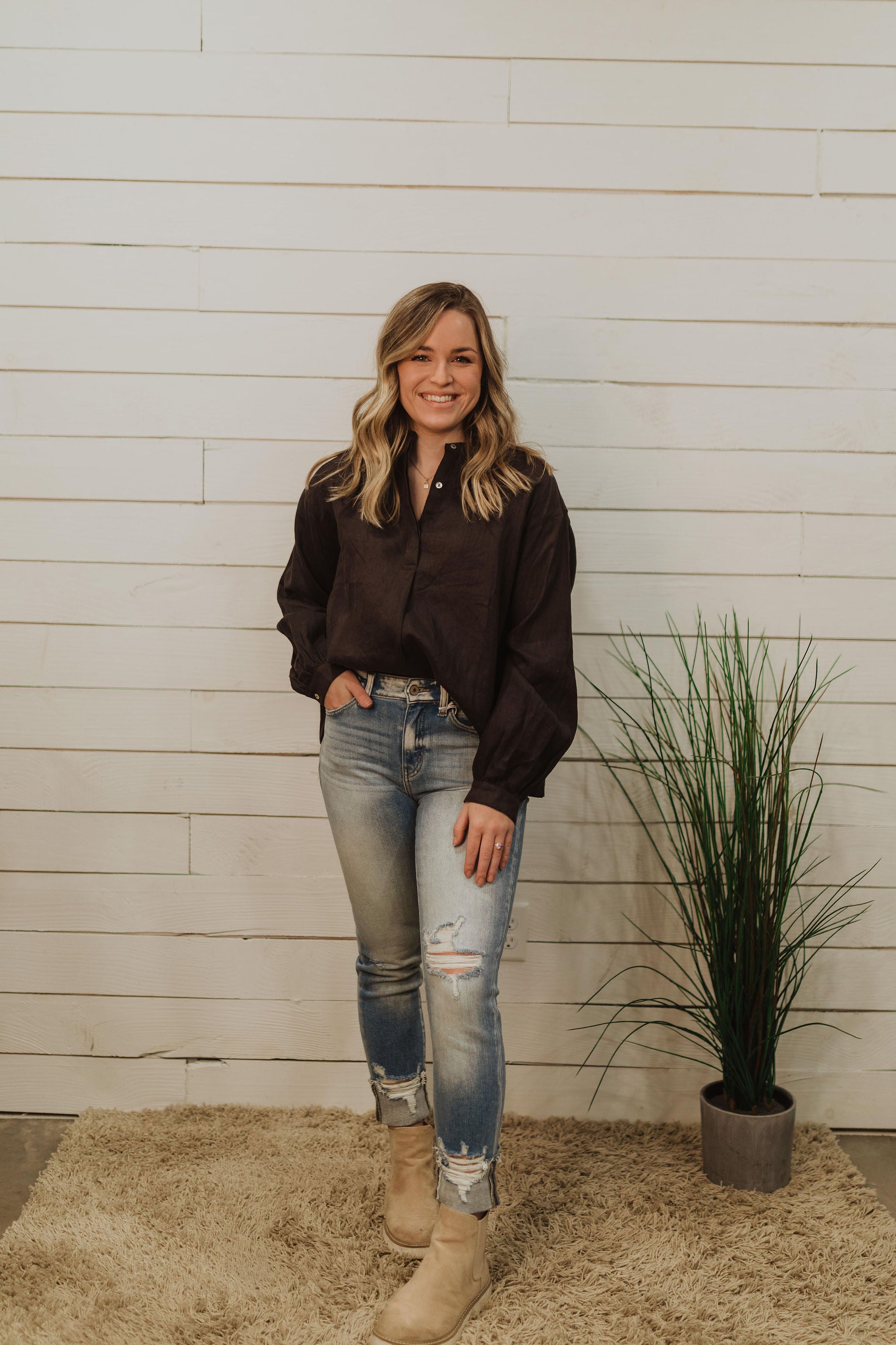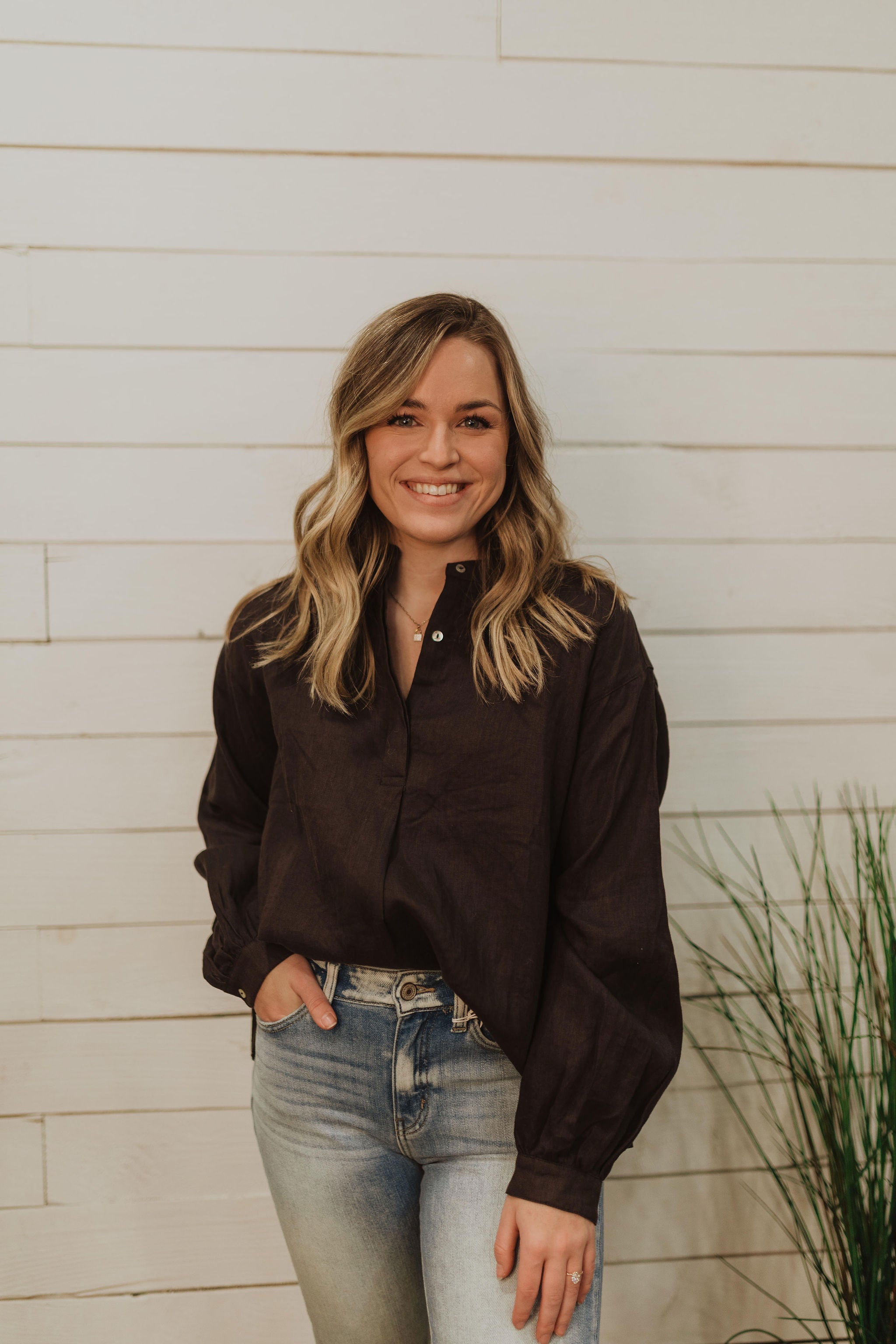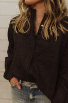COAL BLACK LINEN BOXY BLOUSE SHIRT