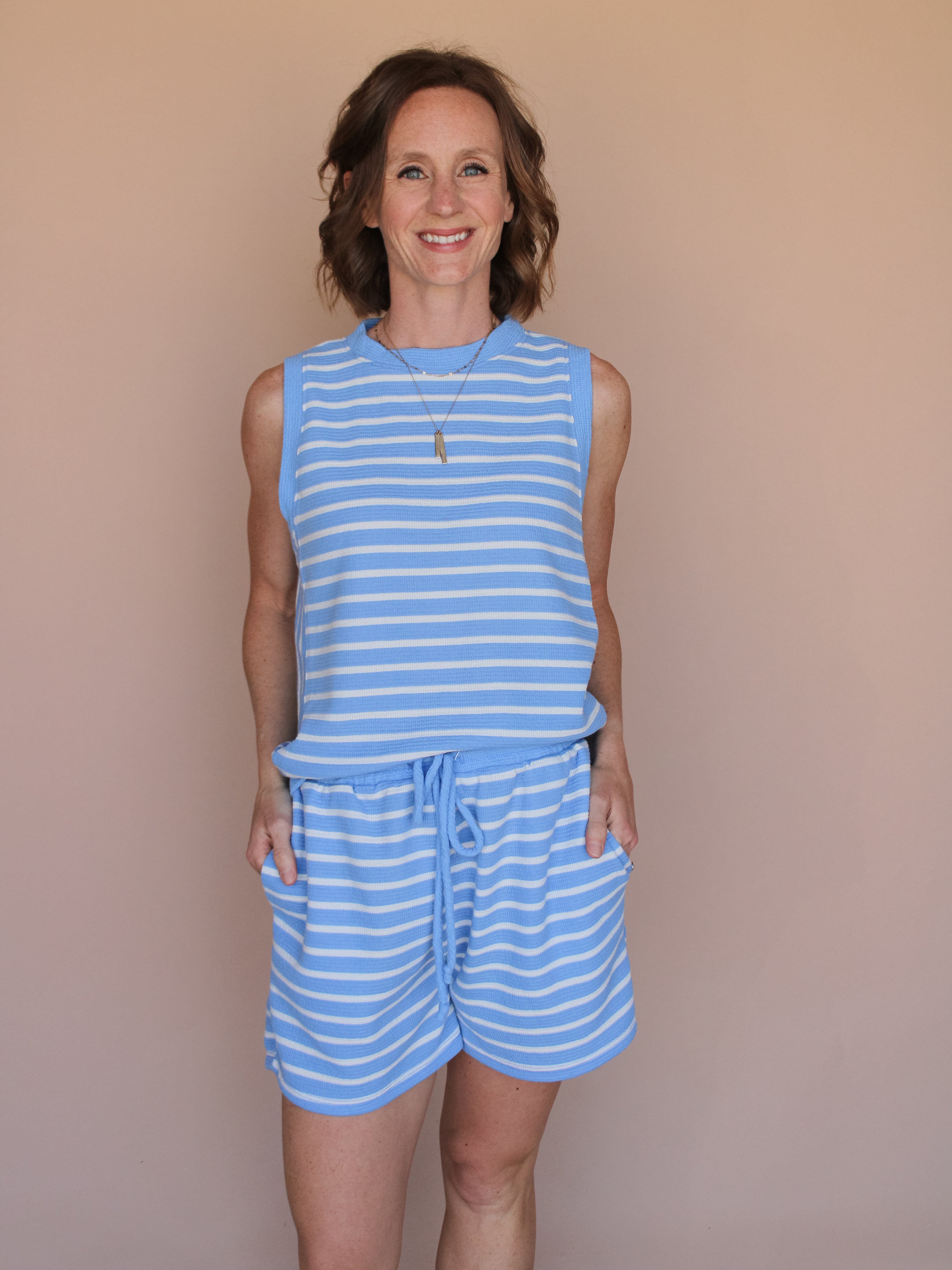 SANDI STRIPED SLEEVELESS CROP TOP SET
