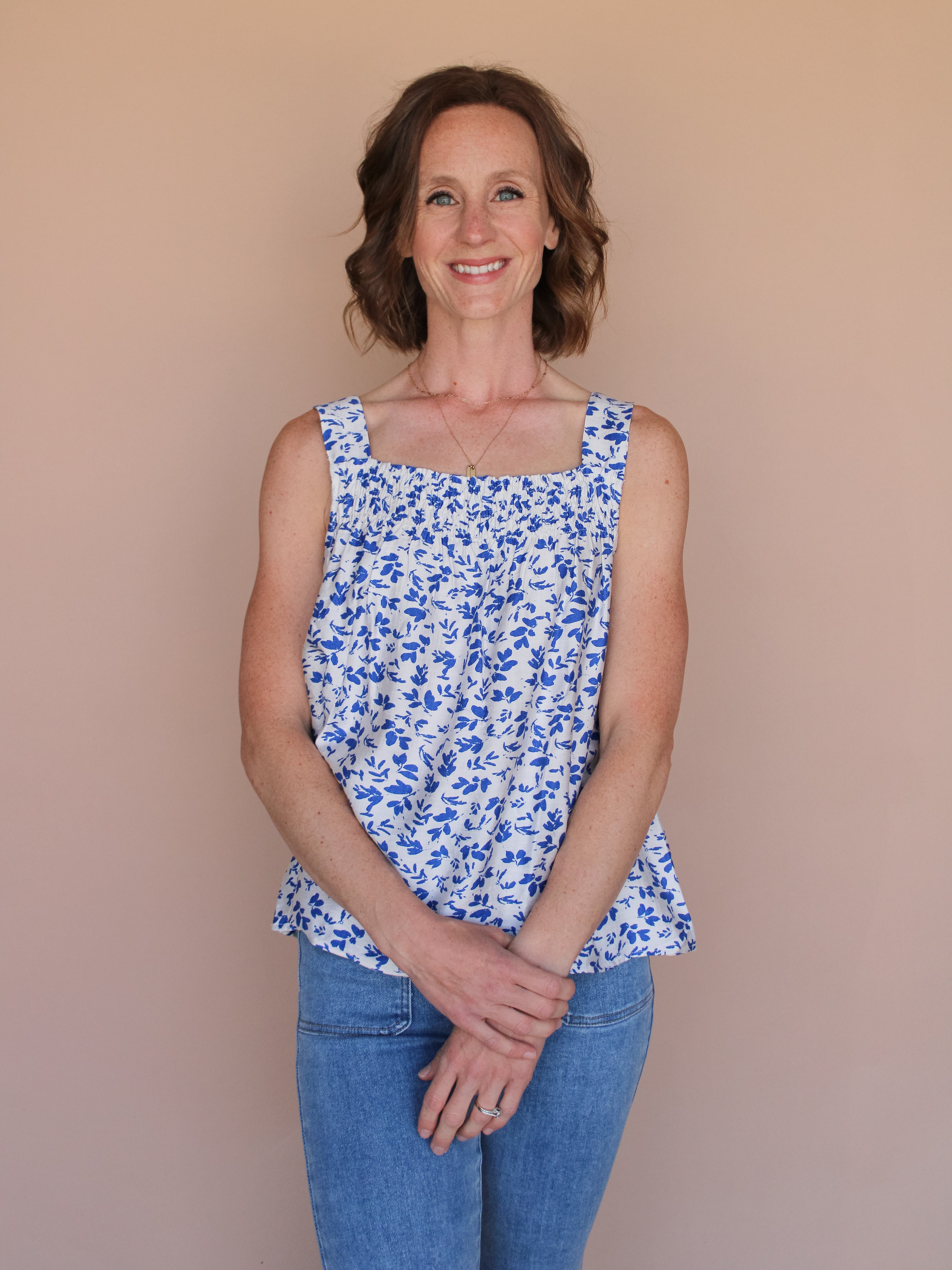 REIBA SMOCKED NECK SLEEVELESS TANK