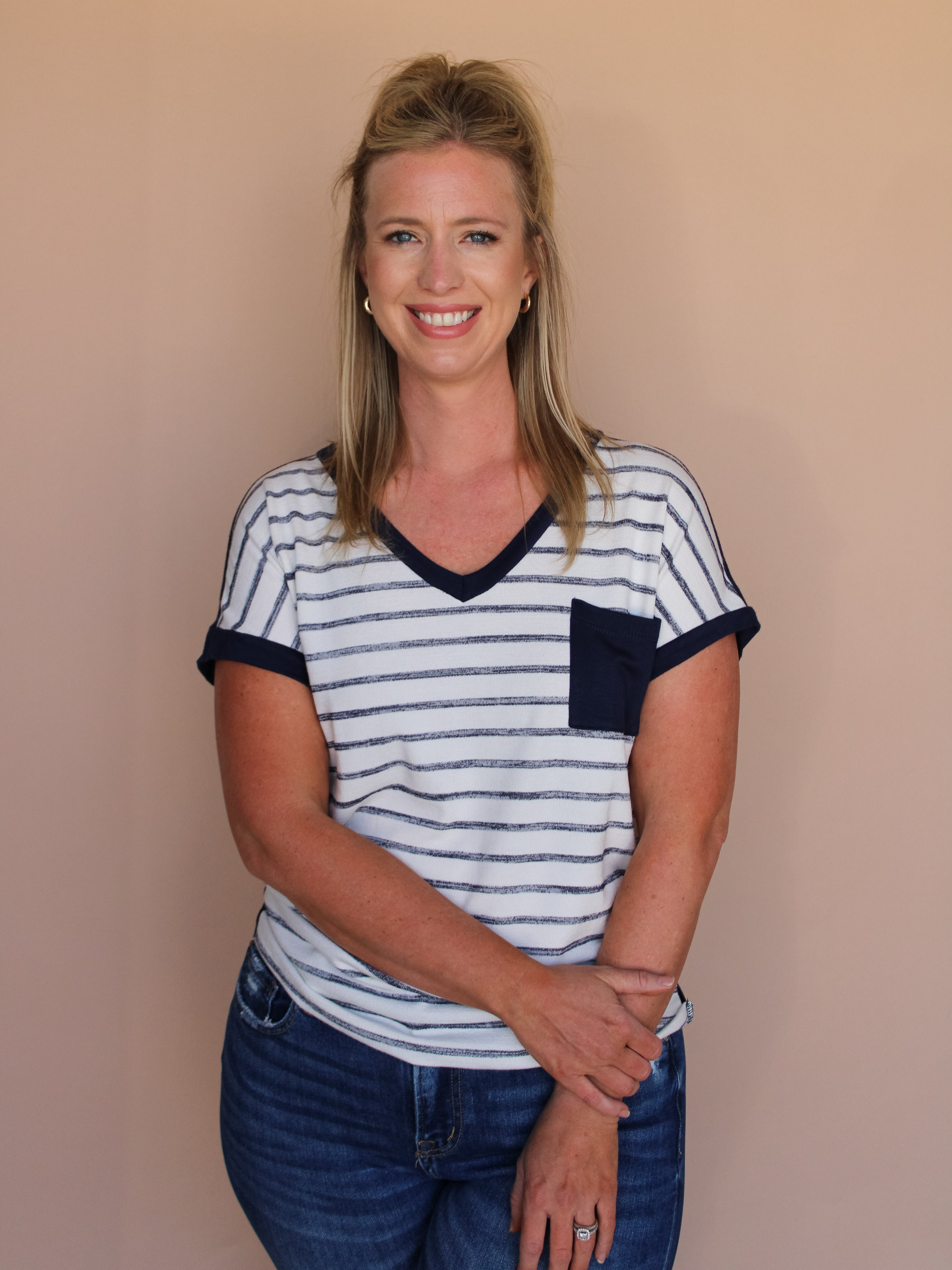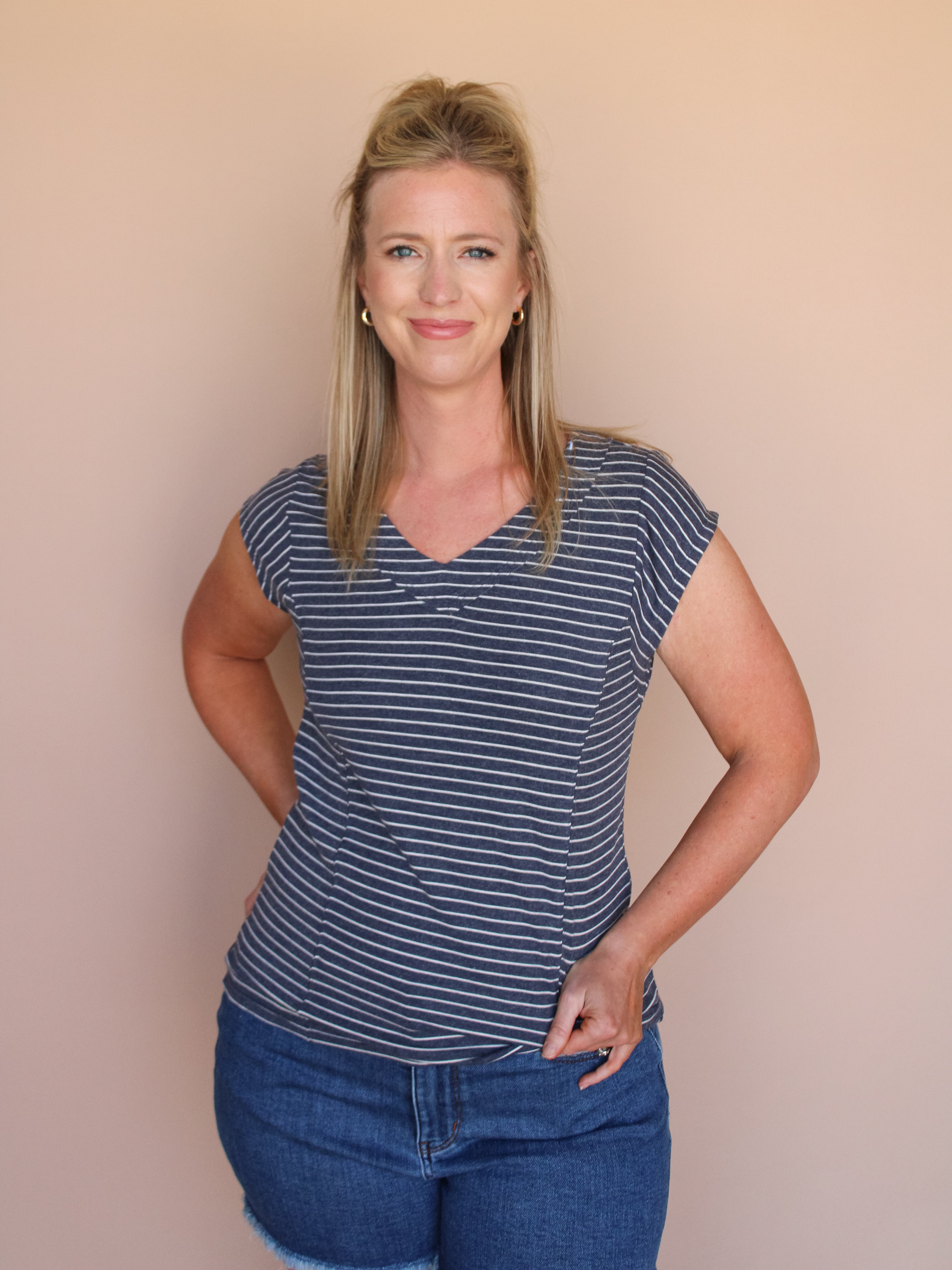 KIERRA VNECK BLOCKED BACK SHORT SLEEVE