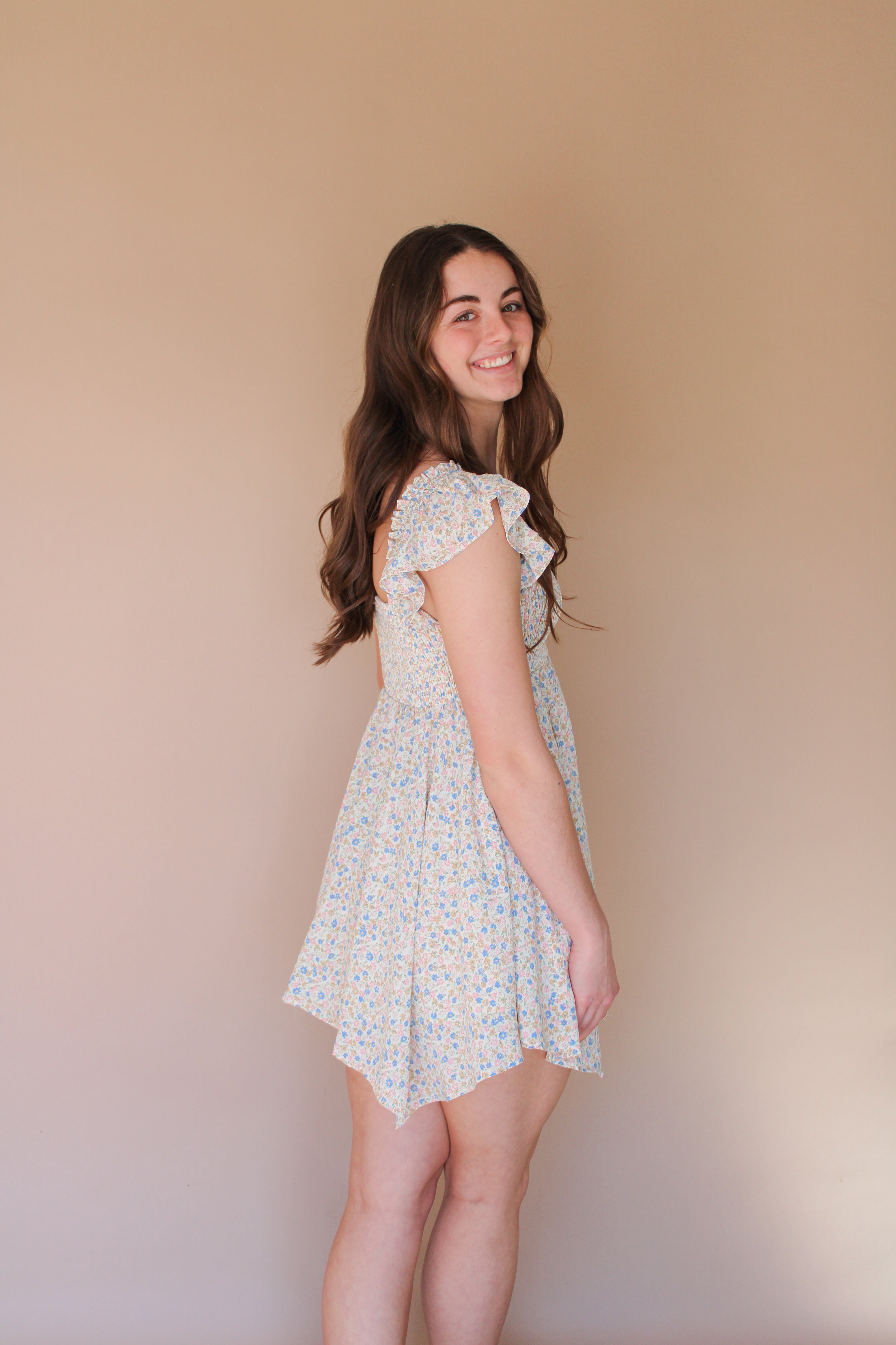 CARLIE FLORAL RUFFLE SHOULDER DRESS