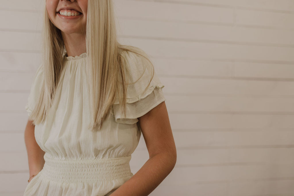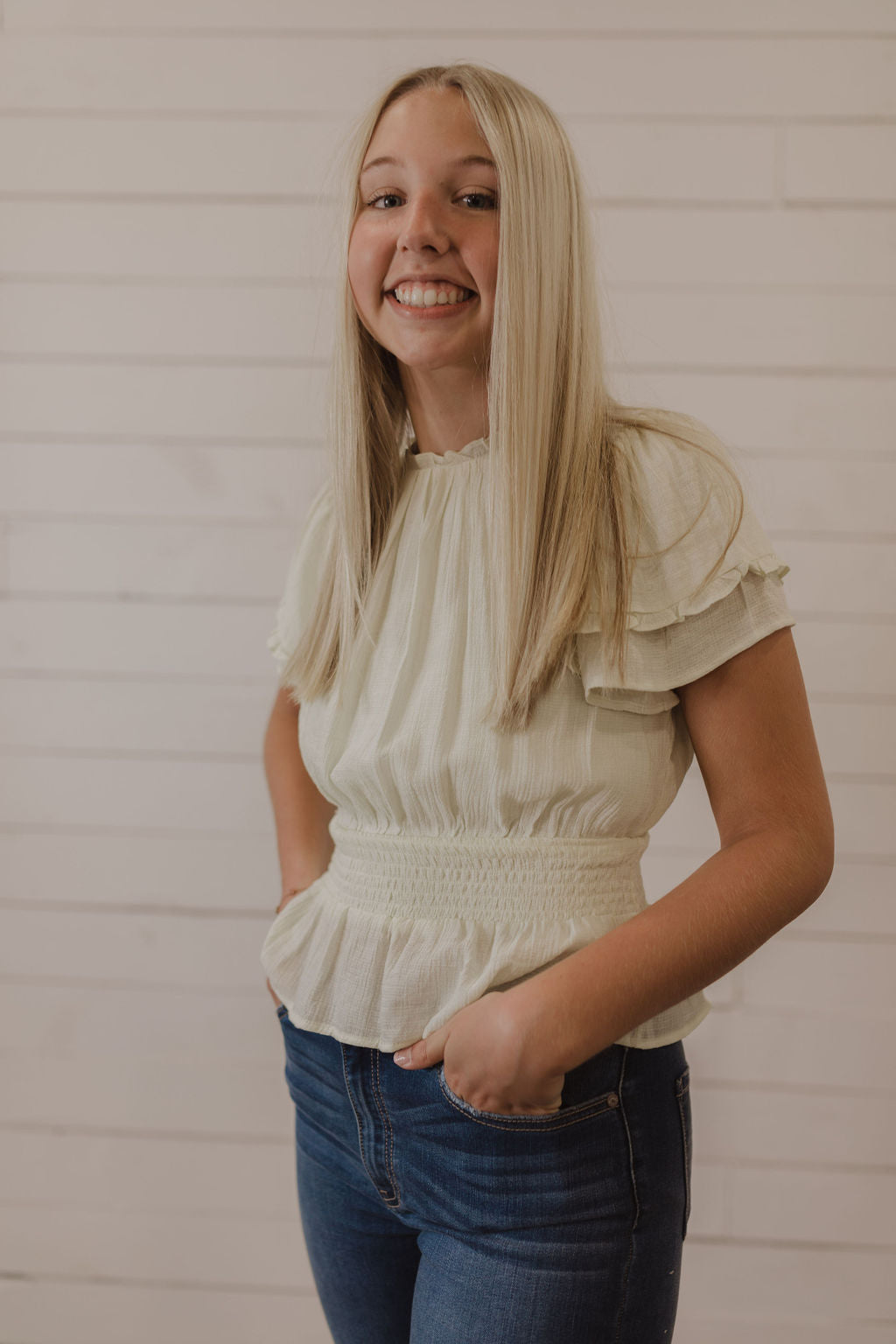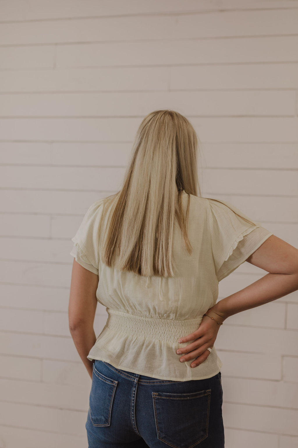 SMOCKED WAIST SOLID TOP BY IVY & CO