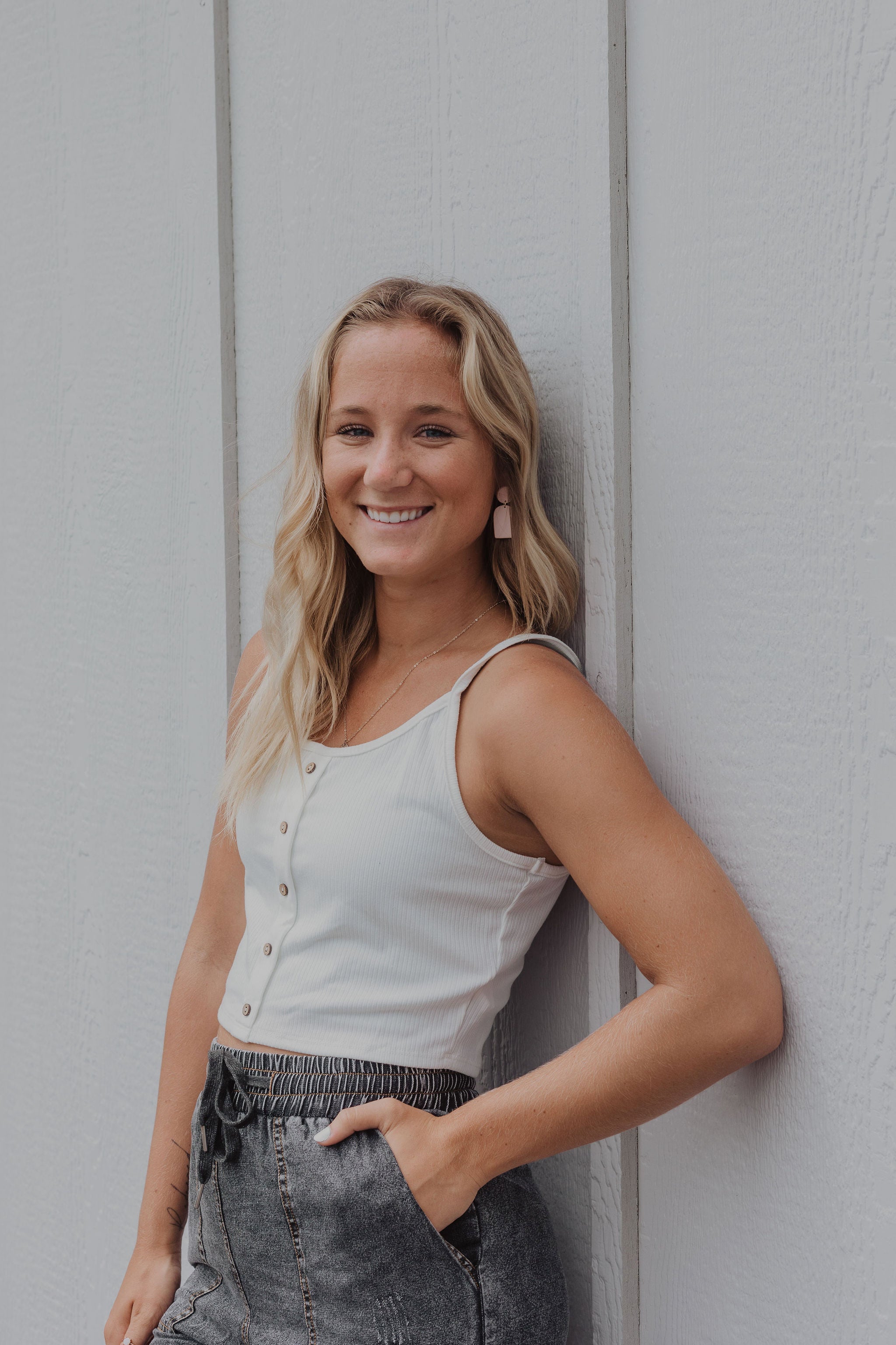 BUTTON TRIM CROP TOP 2 COLOR OPTIONS IVY & CO