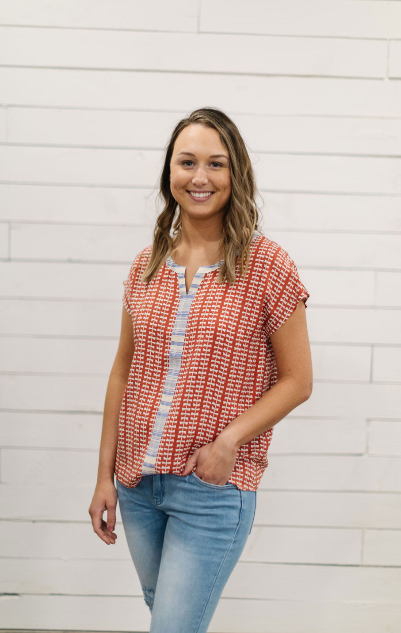 RED & BLUE SHORT SLEEVE PRINTED TOP