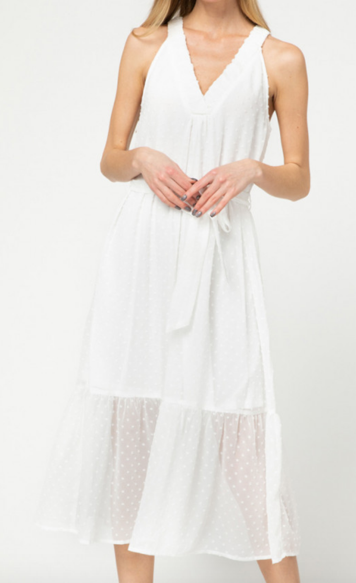 Dotted swiss sleeveless v-neck midi dress