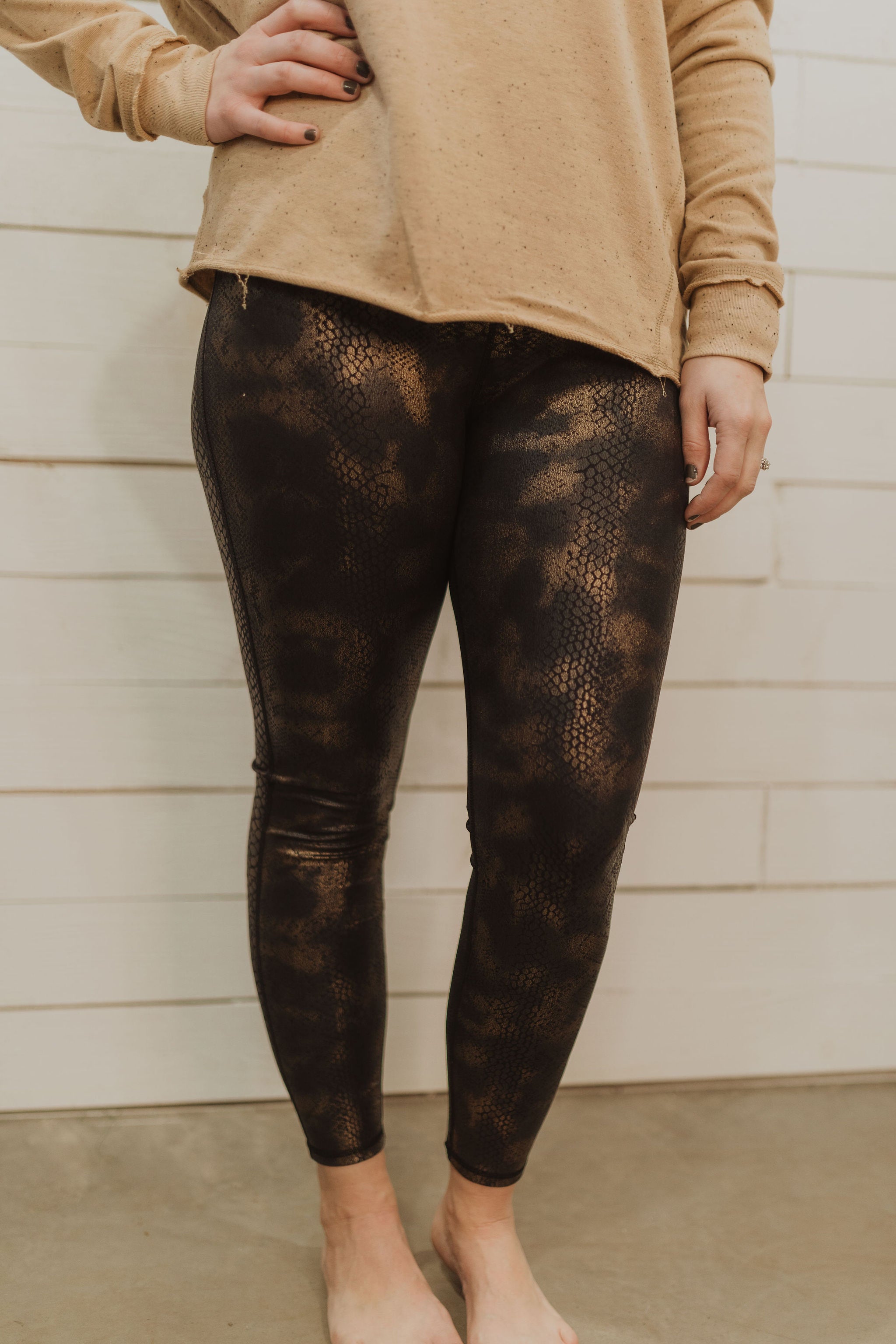 Black Gold Snake Foil Print High waist Leggings