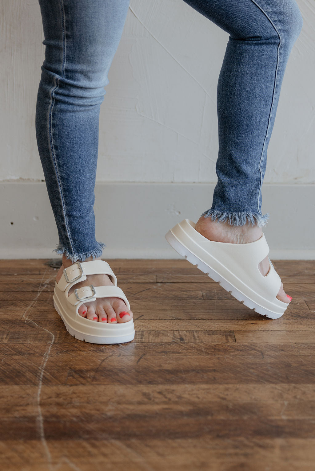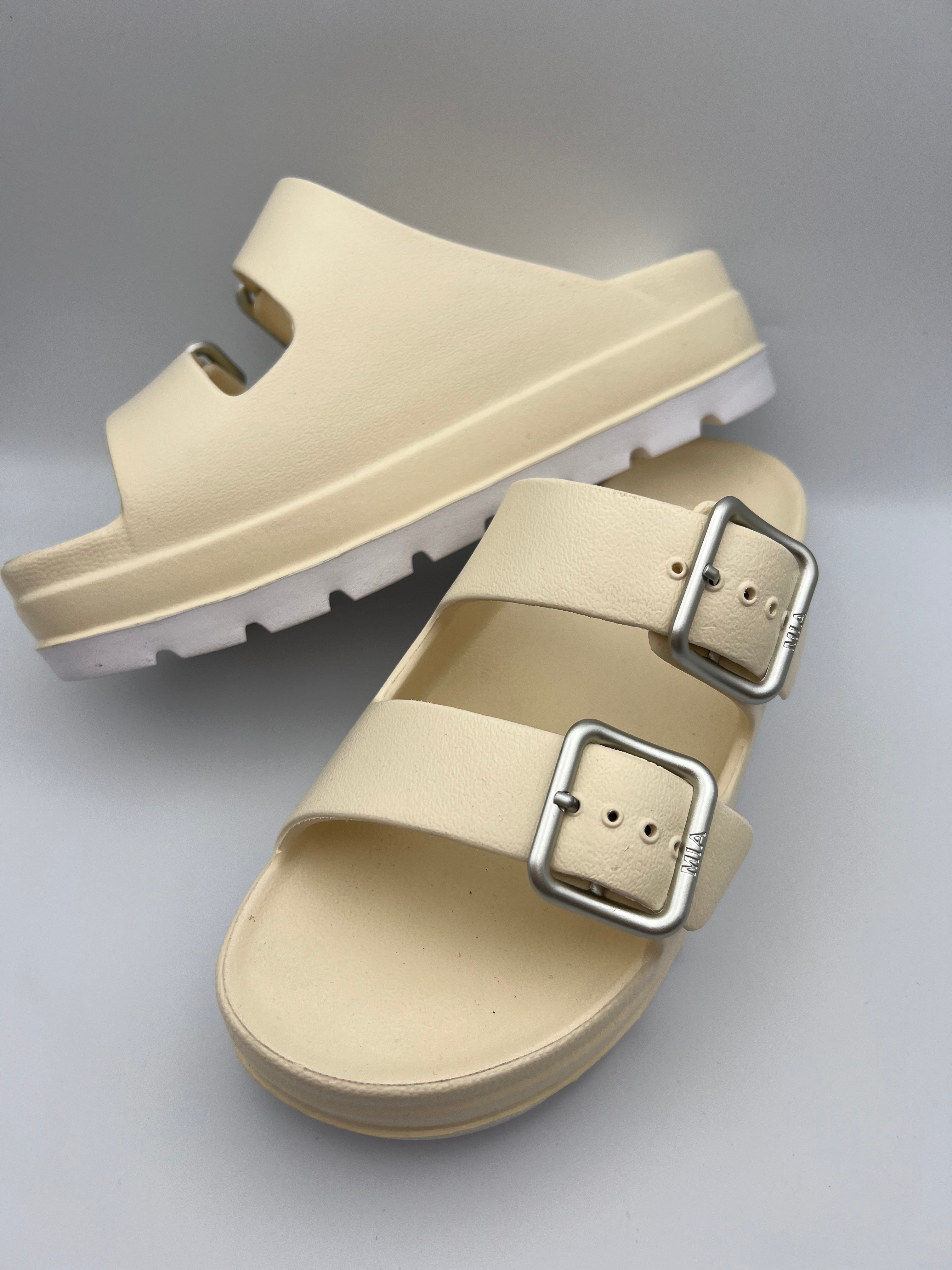 CORRIE BONE COLORED 2 STRAP RUBBER SANDAL WITH PLATFORM